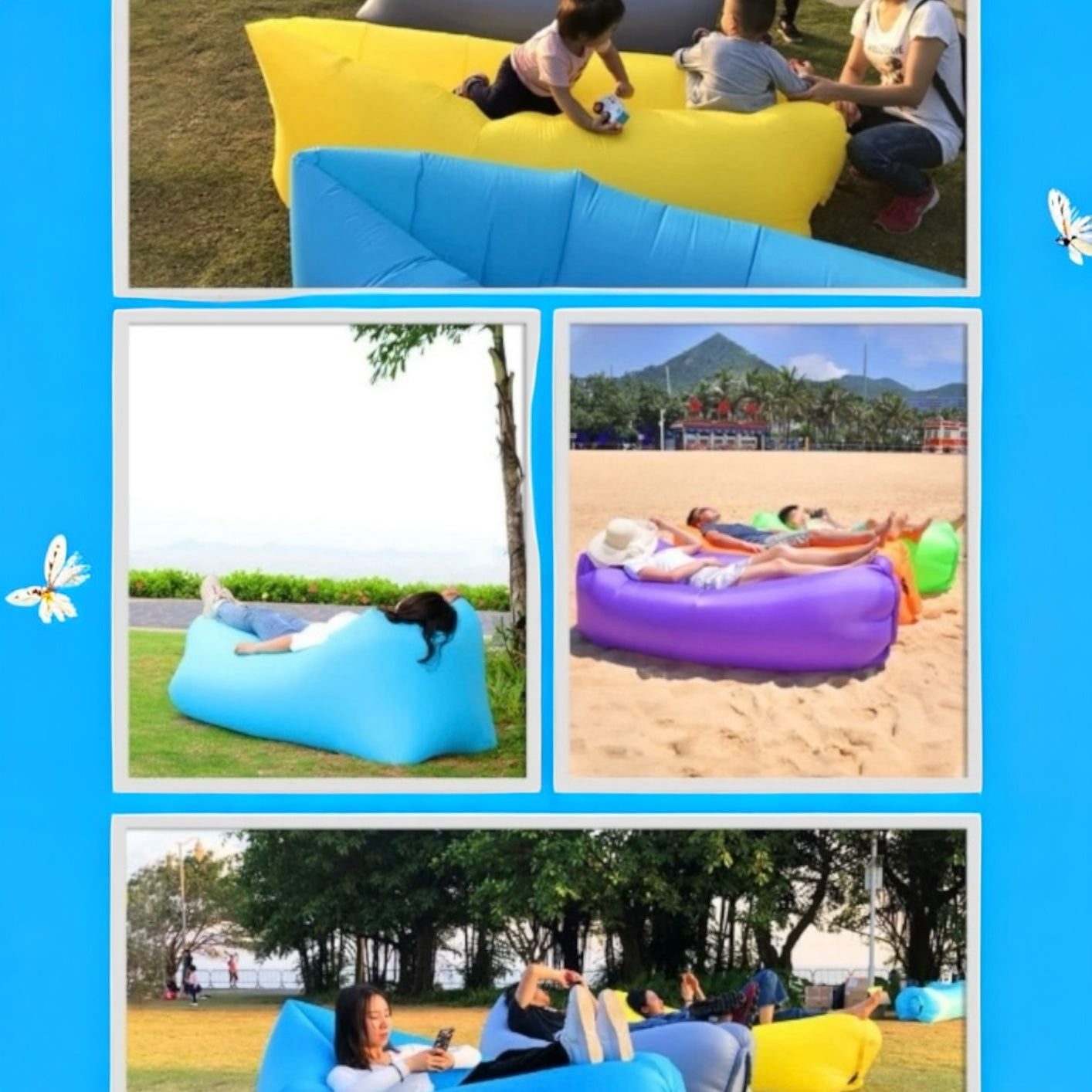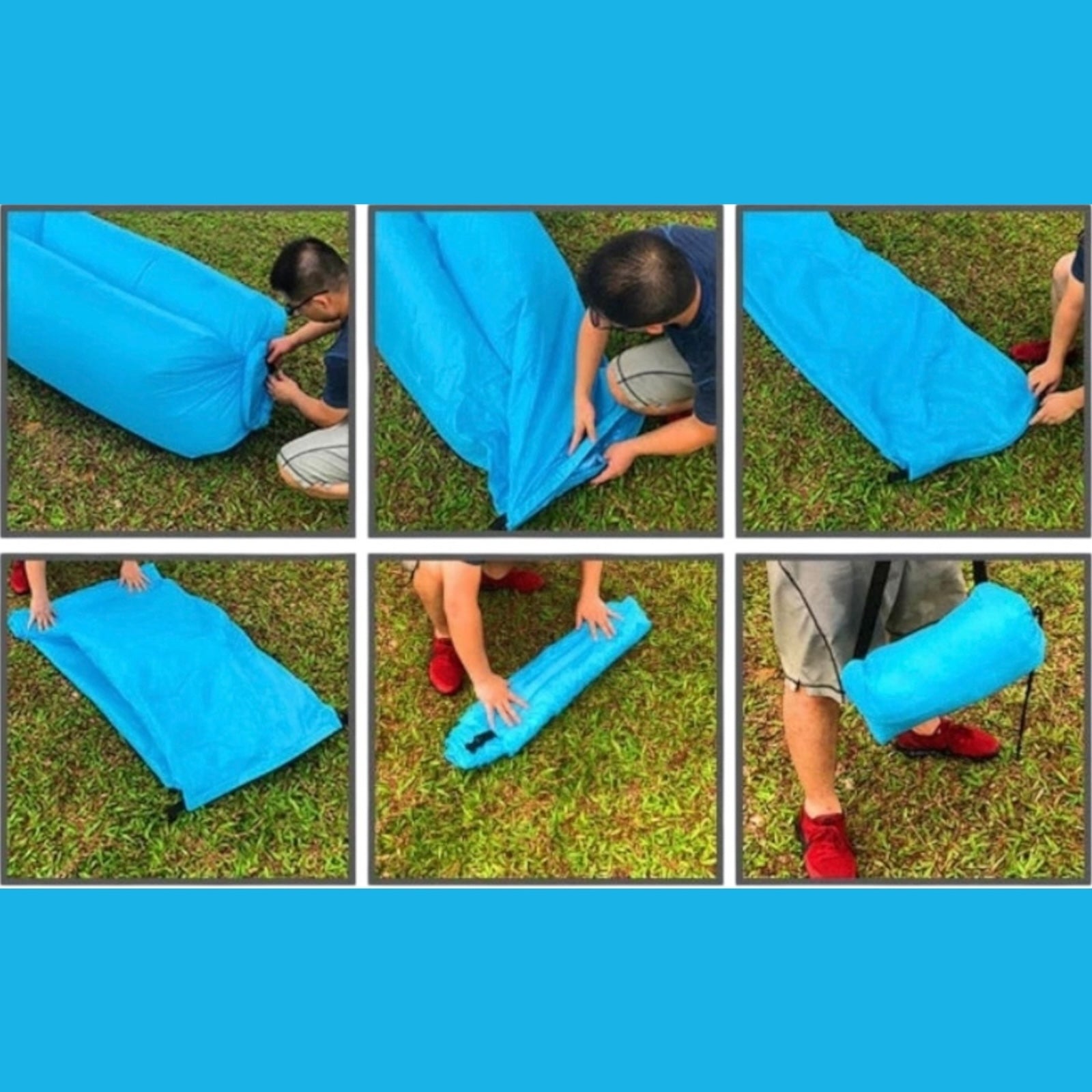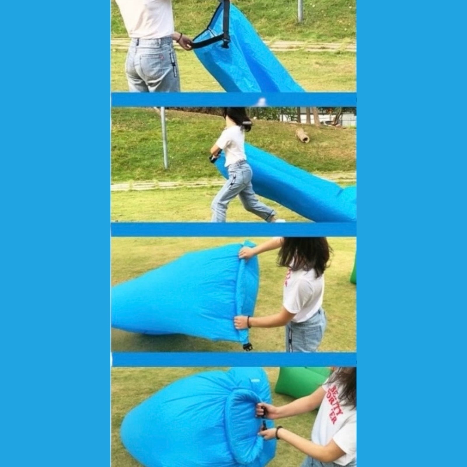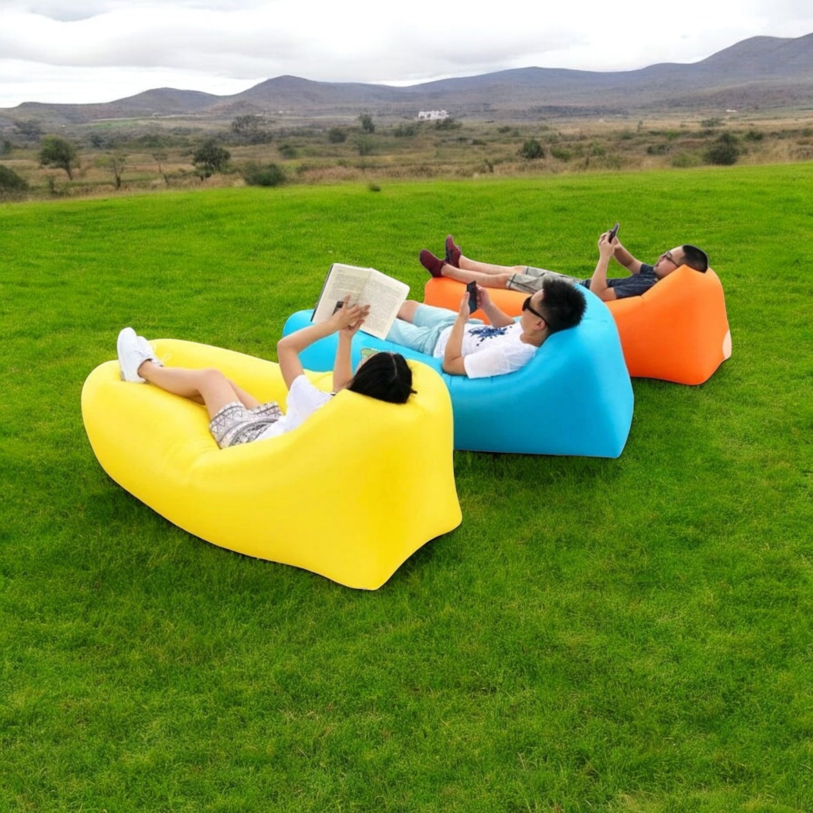 Relaxează-te oriunde cu acest șezlong gonflabil portabil, perfect pentru parc, plajă, camping sau grădină!