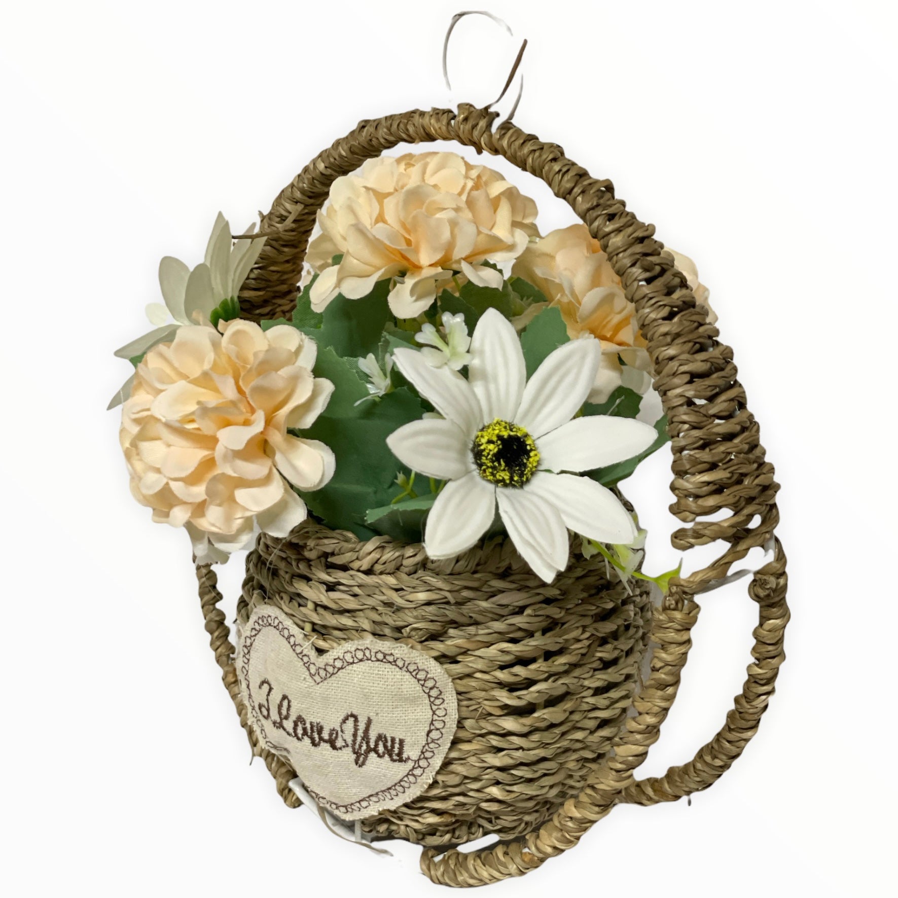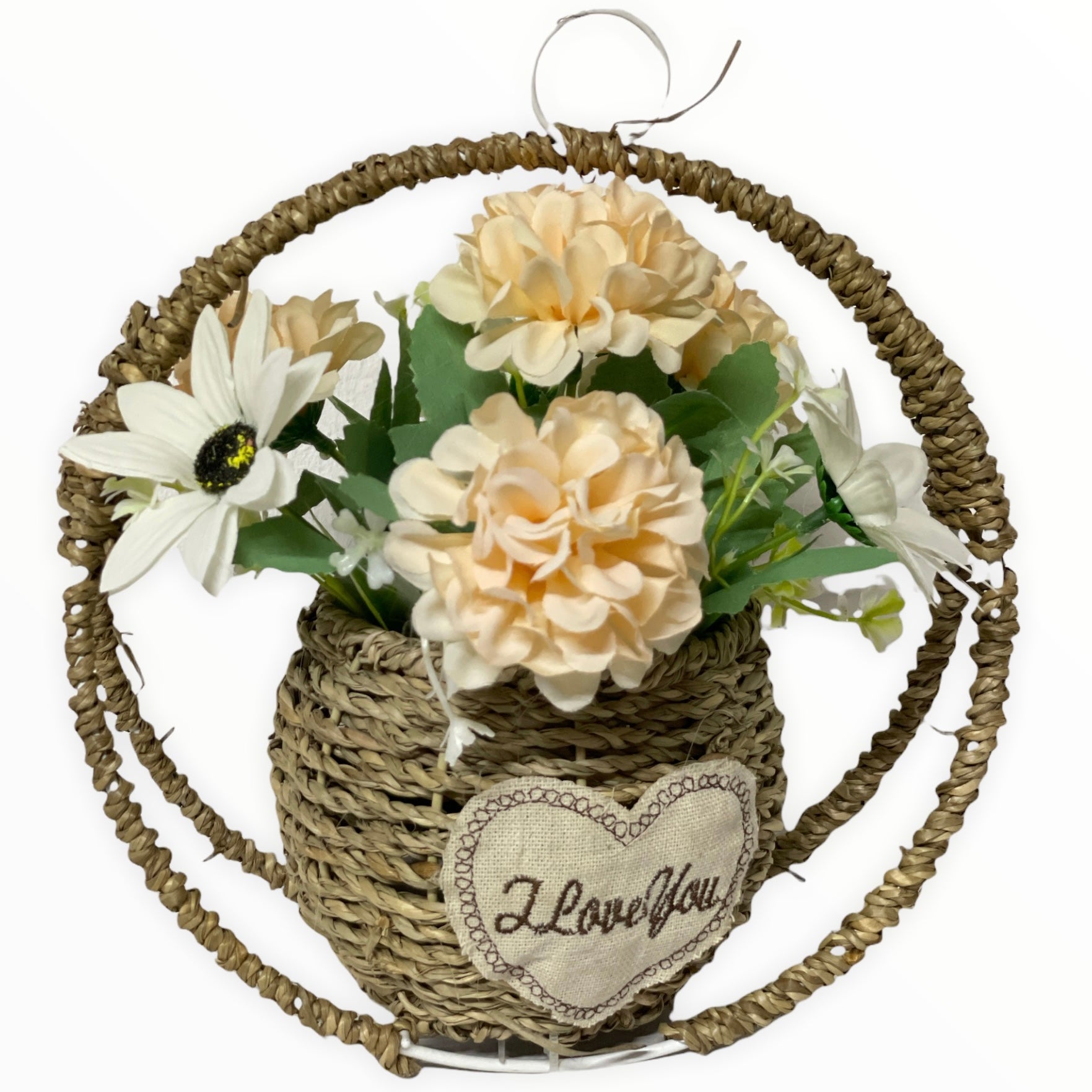 Este un produs elegant și rafinat care se îmbină perfect cu ambientul. Florile sunt artificiale din material textil și plastic.