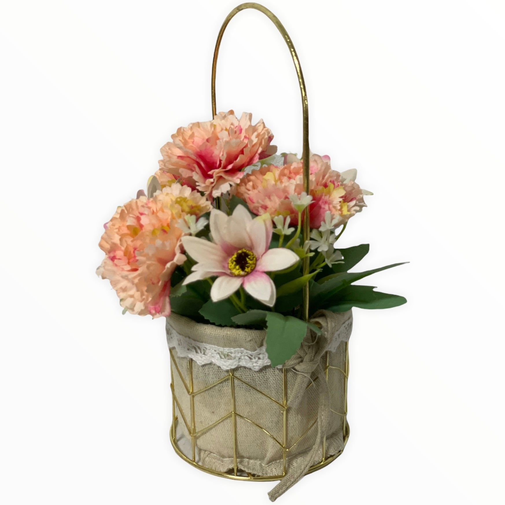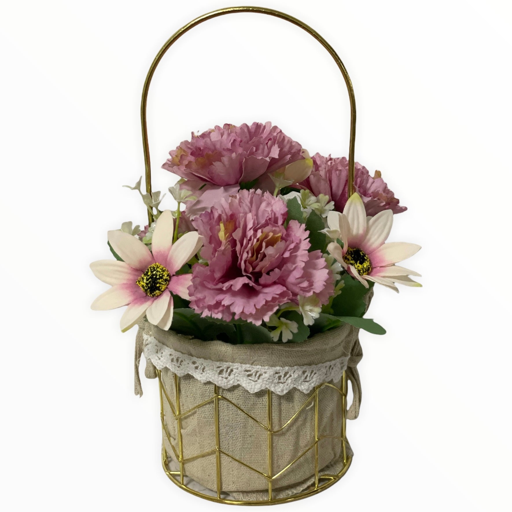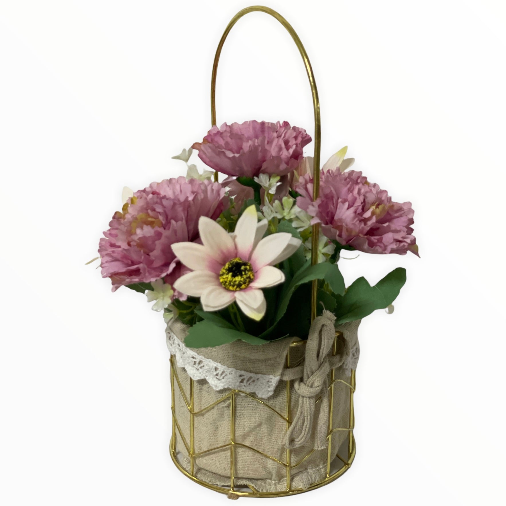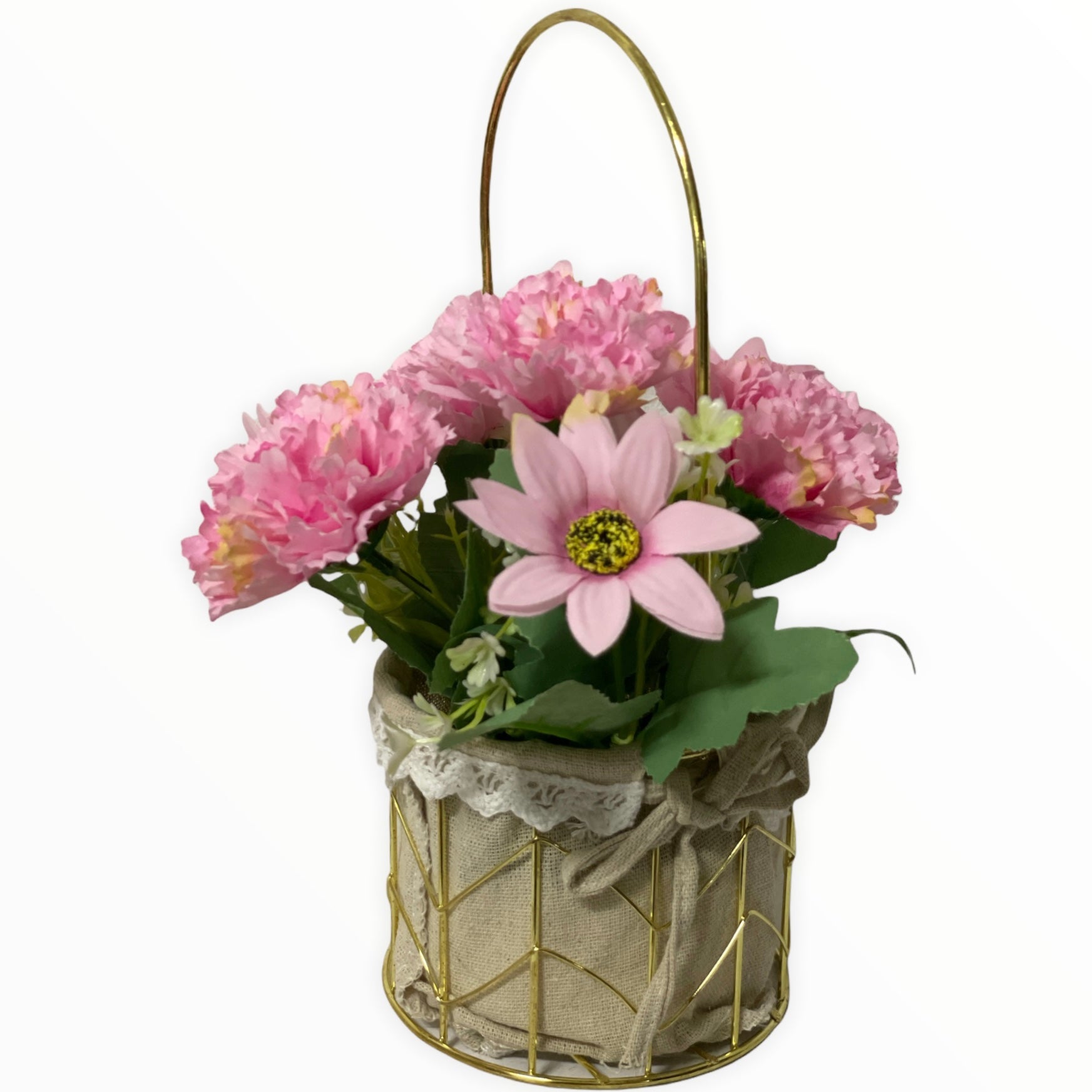 Este un produs elegant și rafinat care se îmbină perfect cu ambientul. Florile sunt artificiale din material textil și plastic.