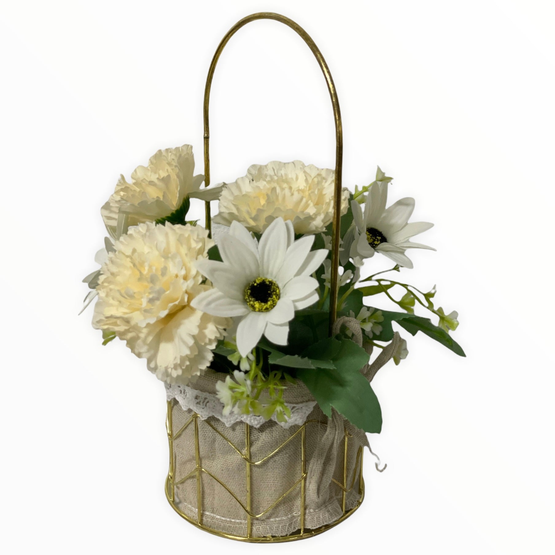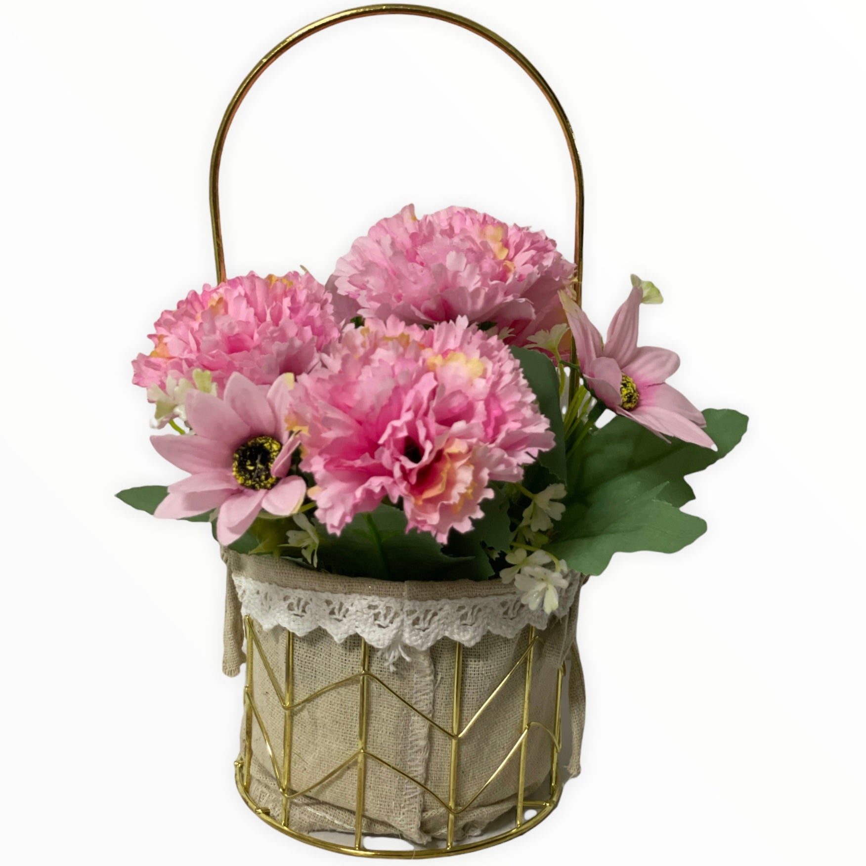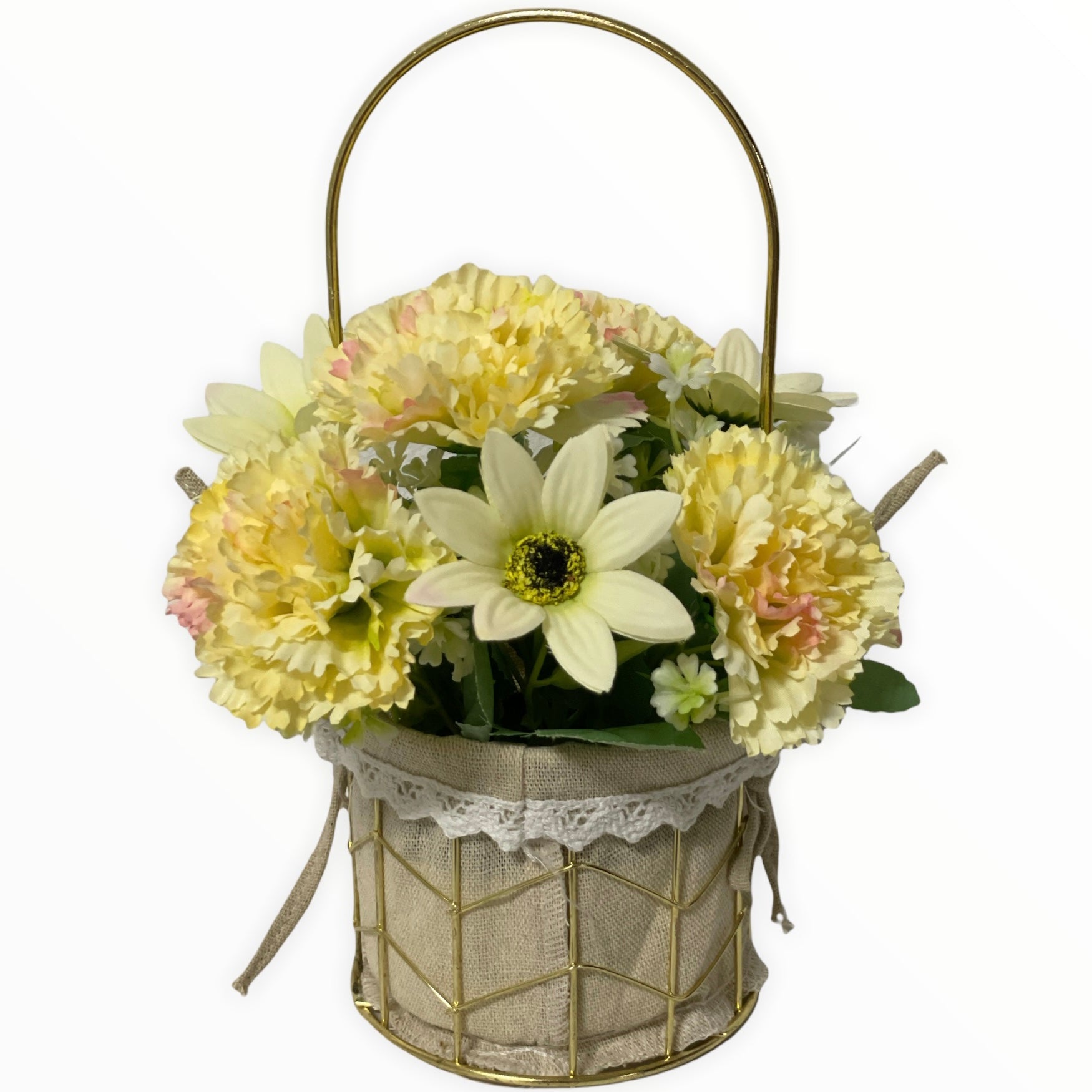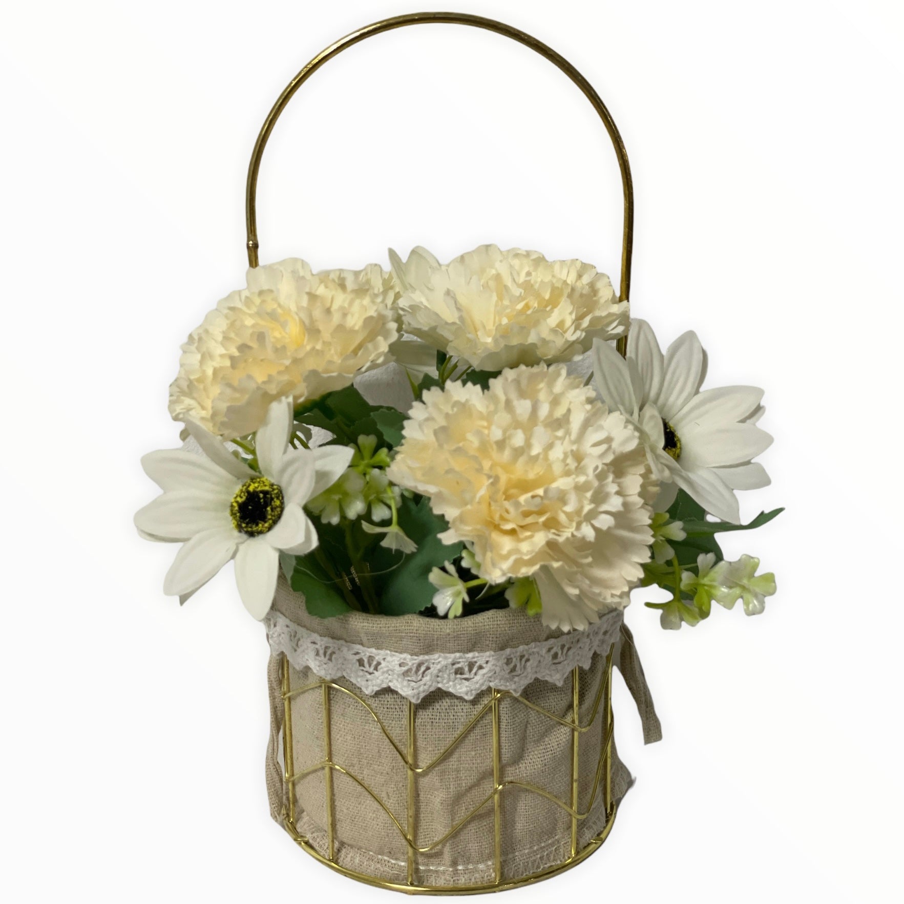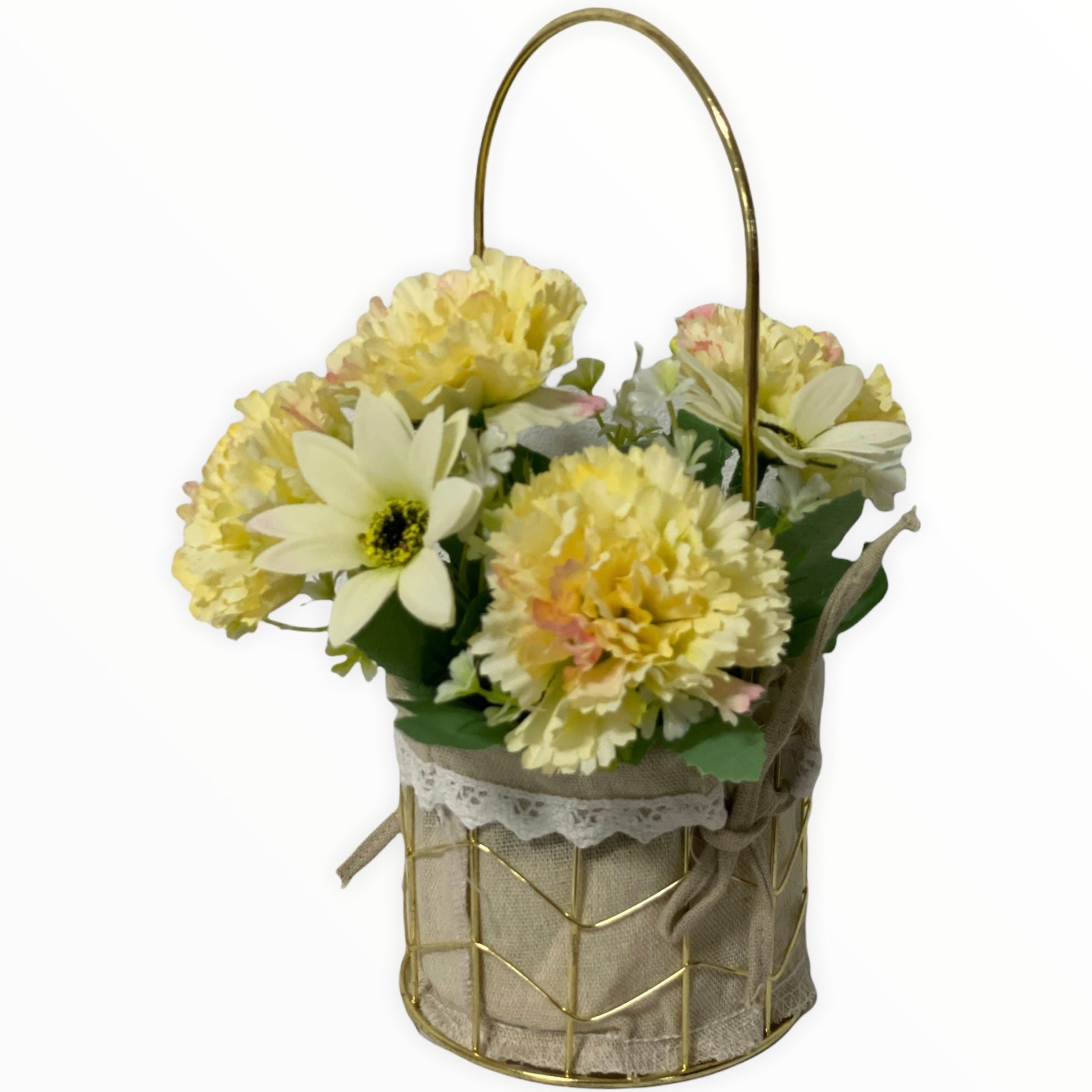 Este un produs elegant și rafinat care se îmbină perfect cu ambientul. Florile sunt artificiale din material textil și plastic.