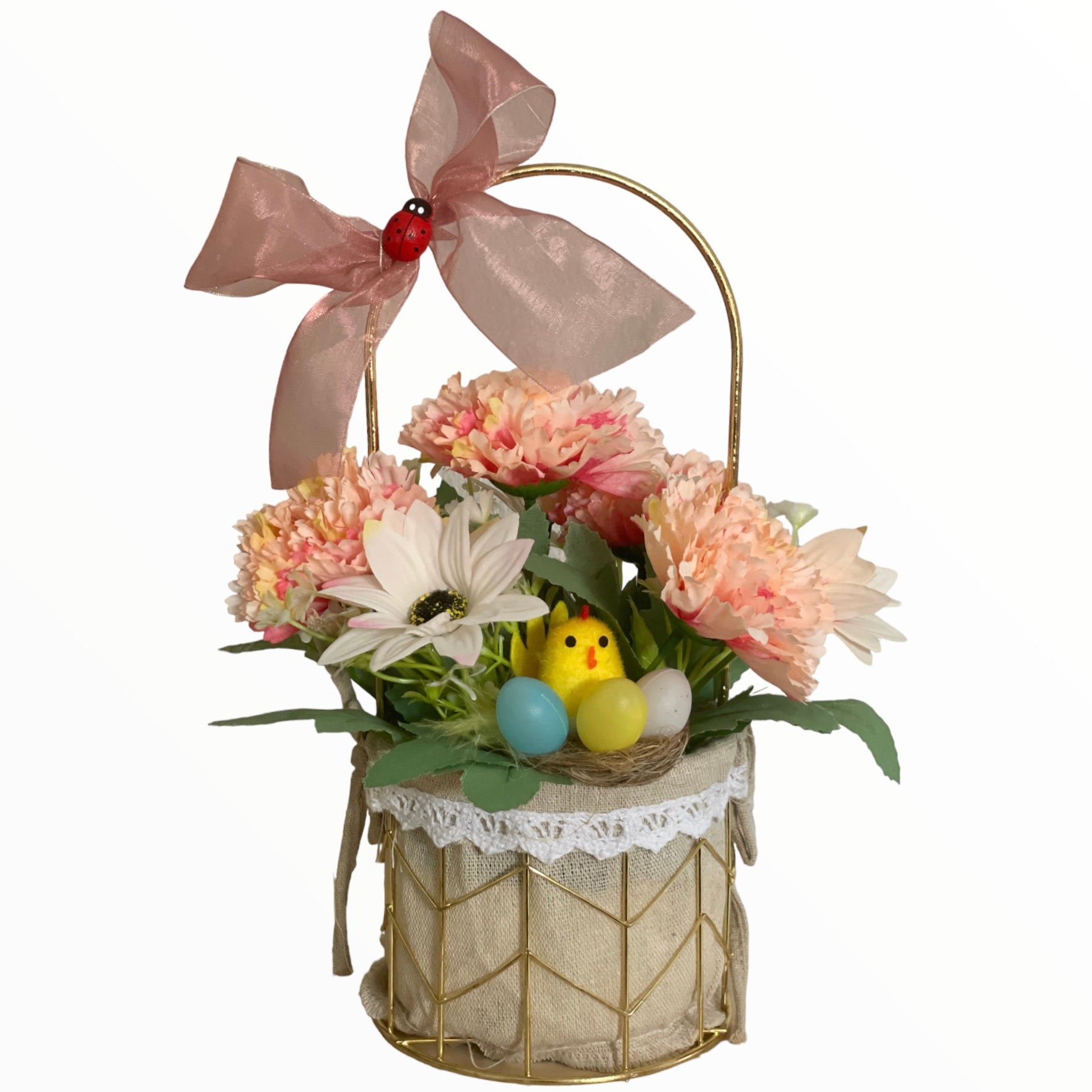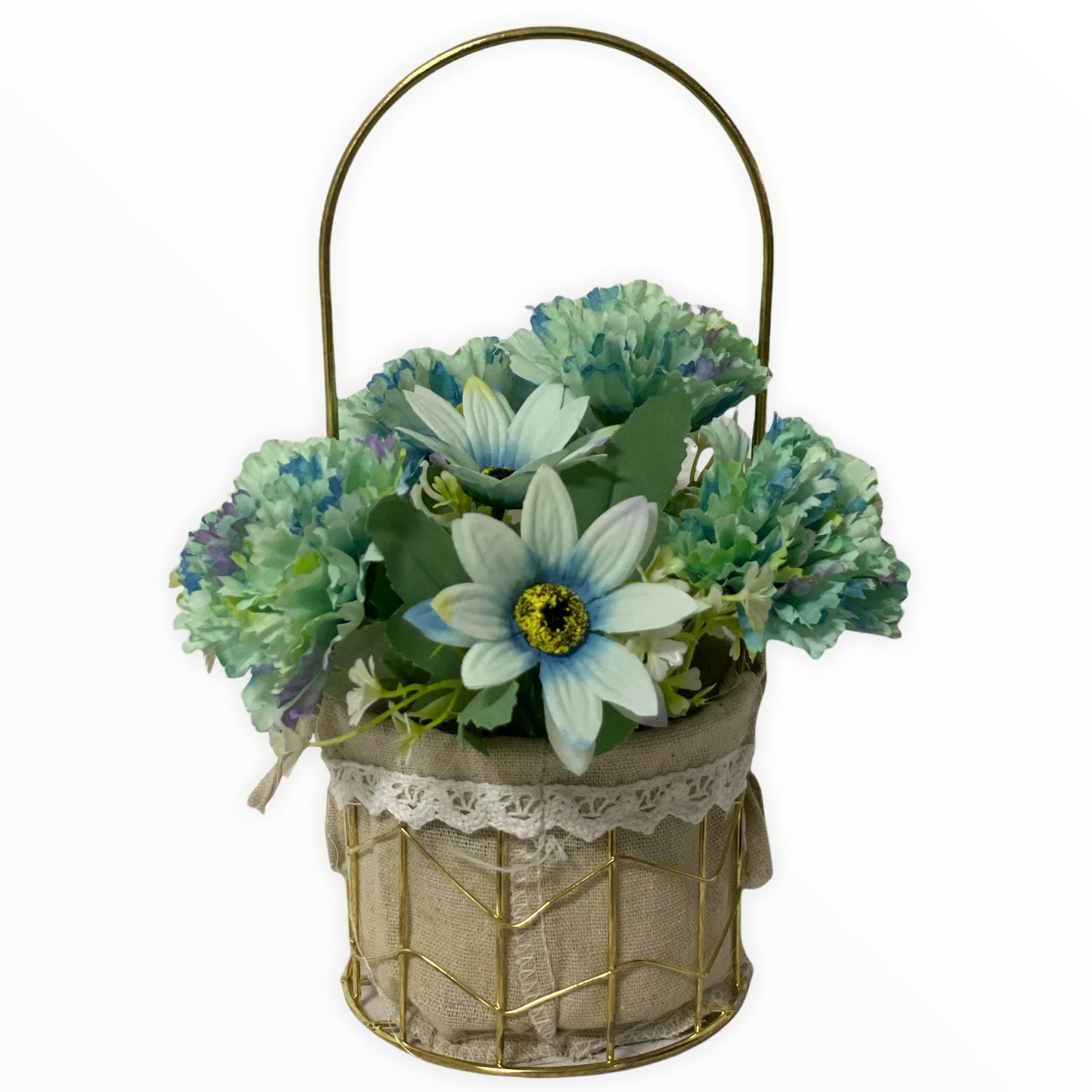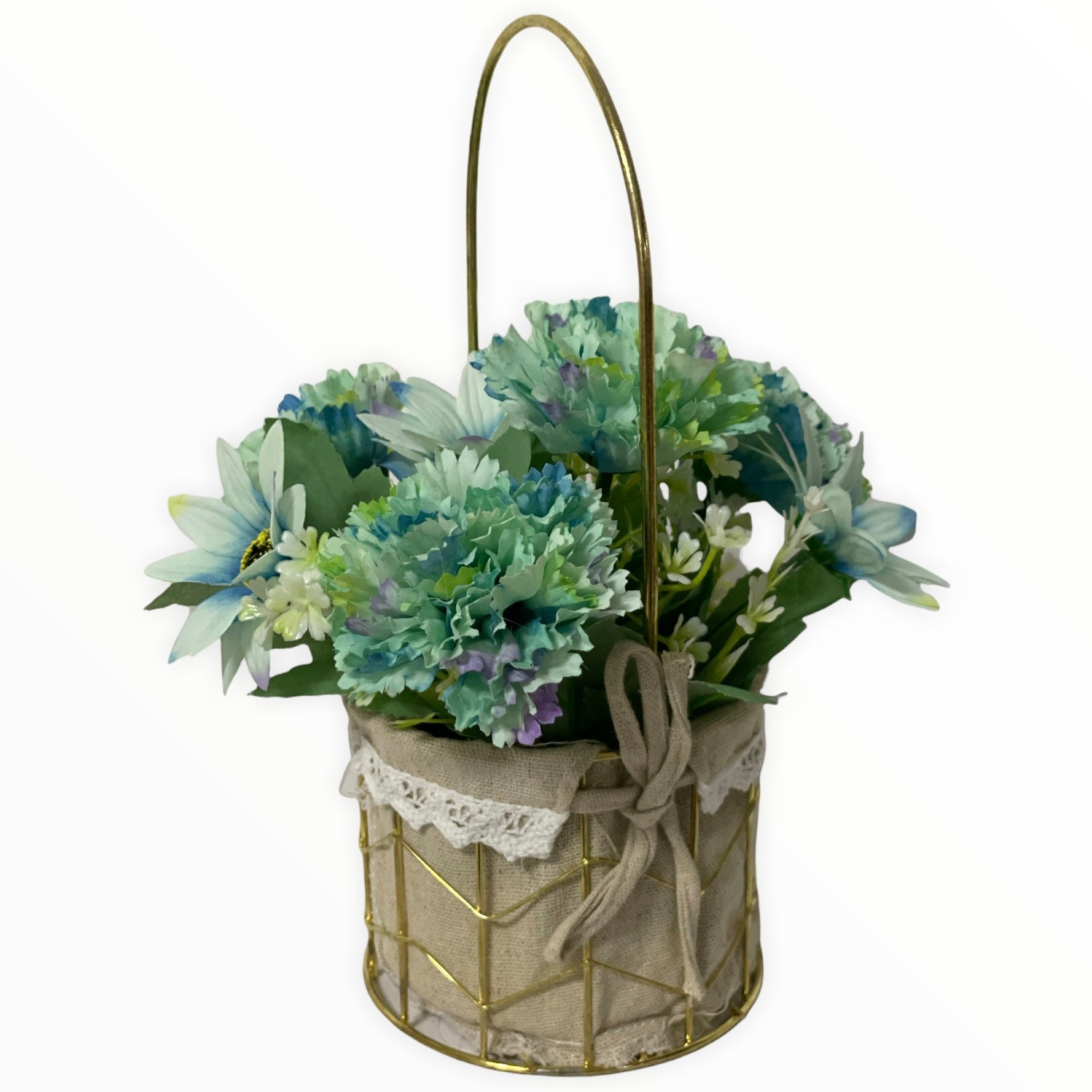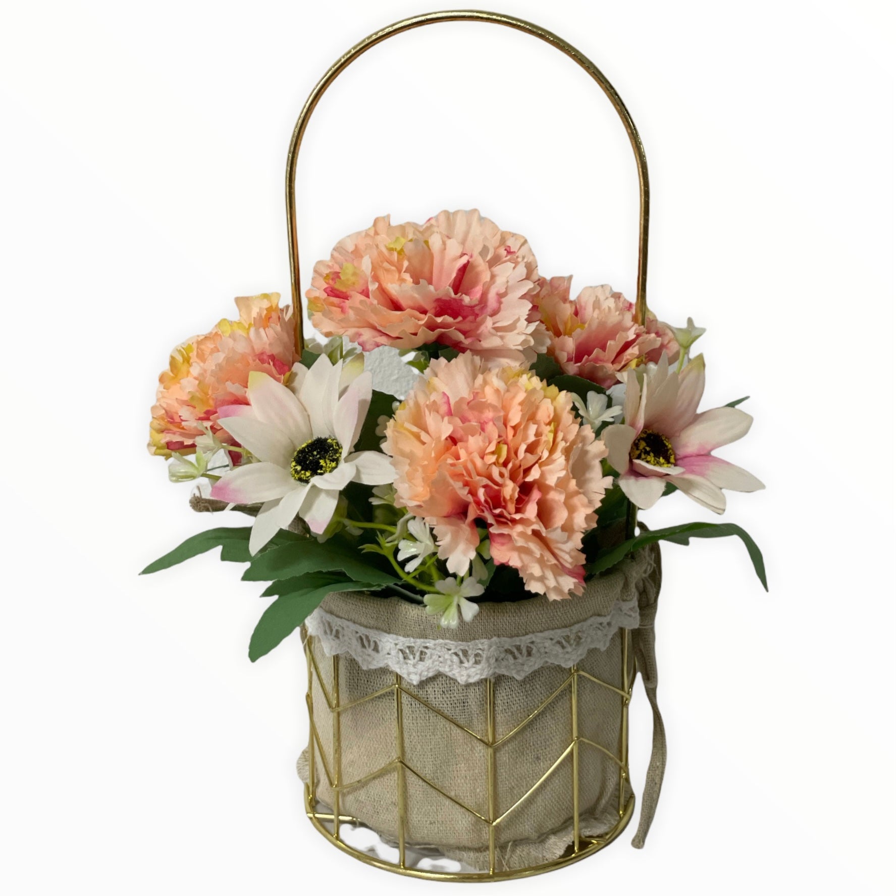 Este un produs elegant și rafinat care se îmbină perfect cu ambientul. Florile sunt artificiale din material textil și plastic.
