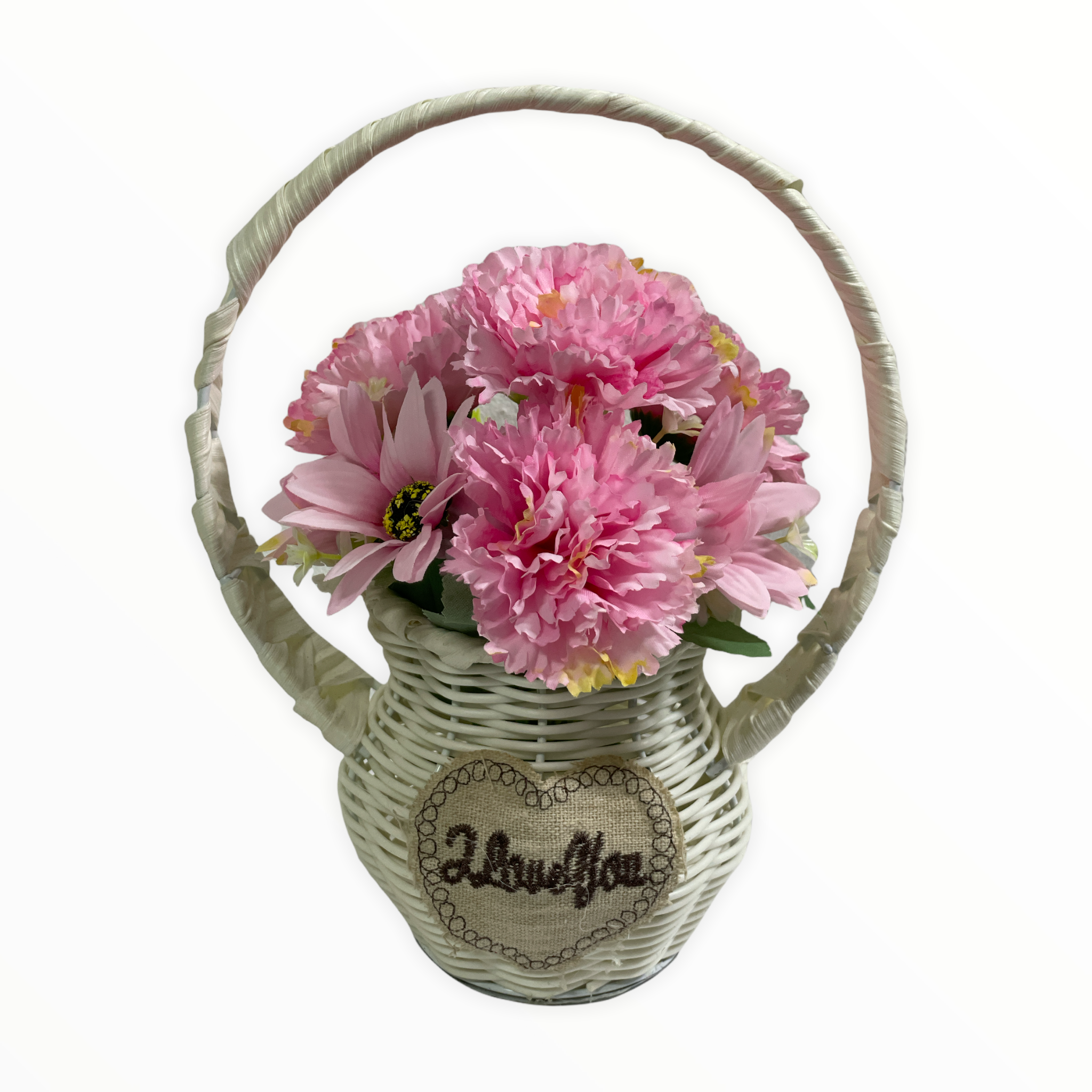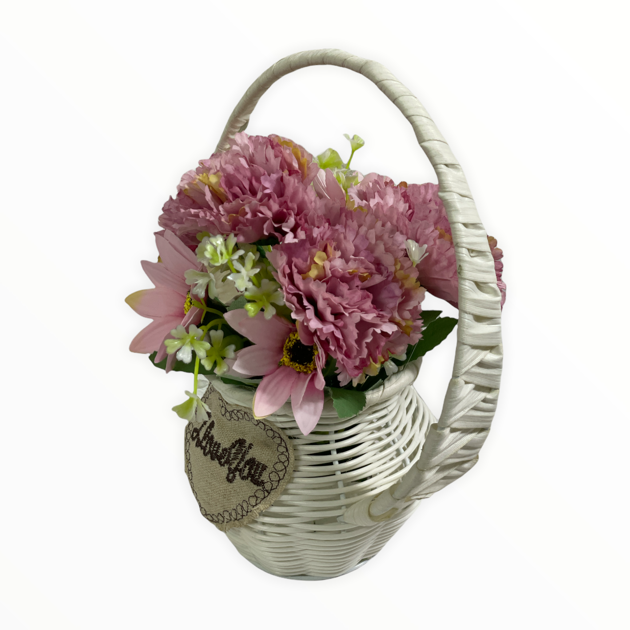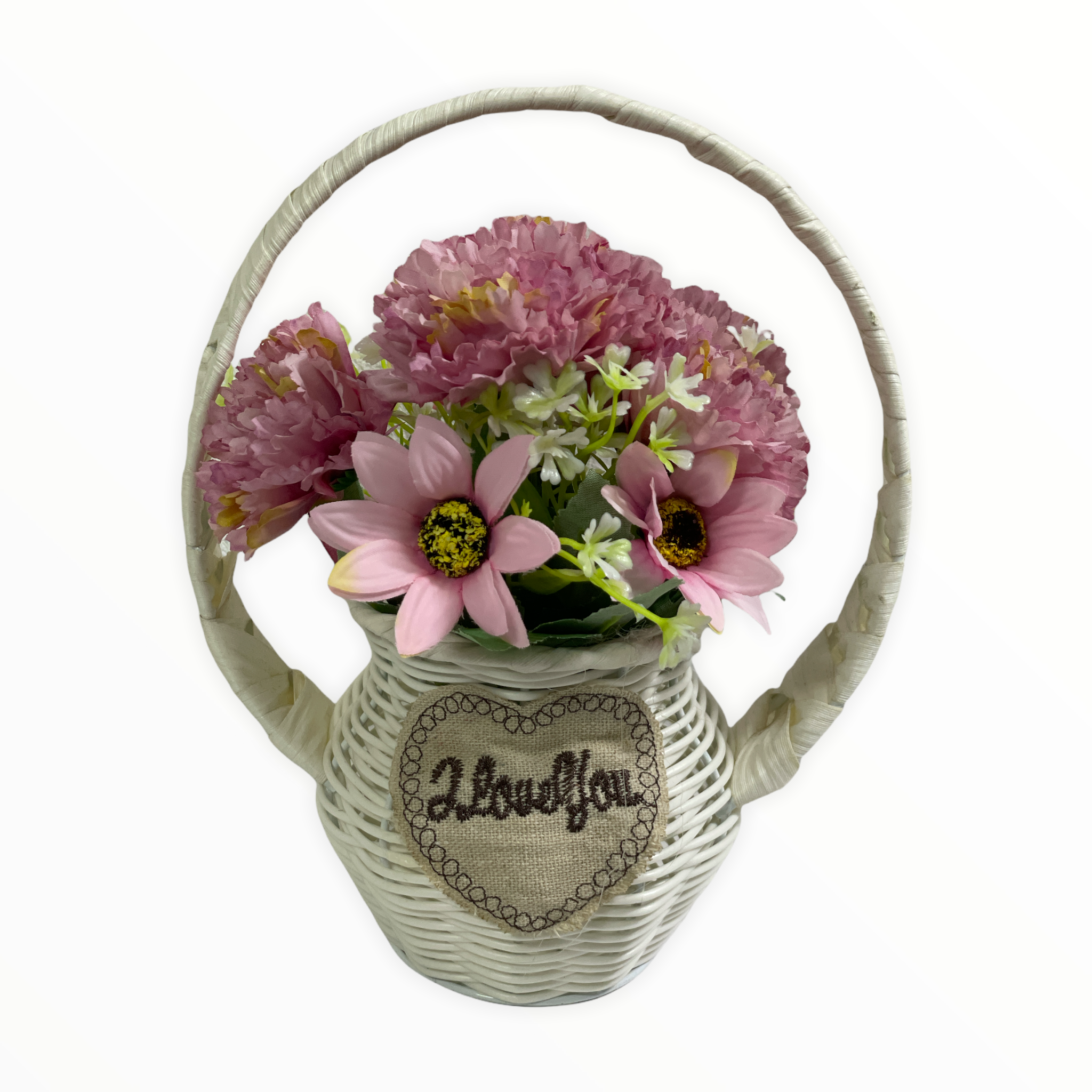 Este un produs elegant și rafinat care se îmbină perfect cu ambientul. Florile sunt artificiale din material textil și plastic.