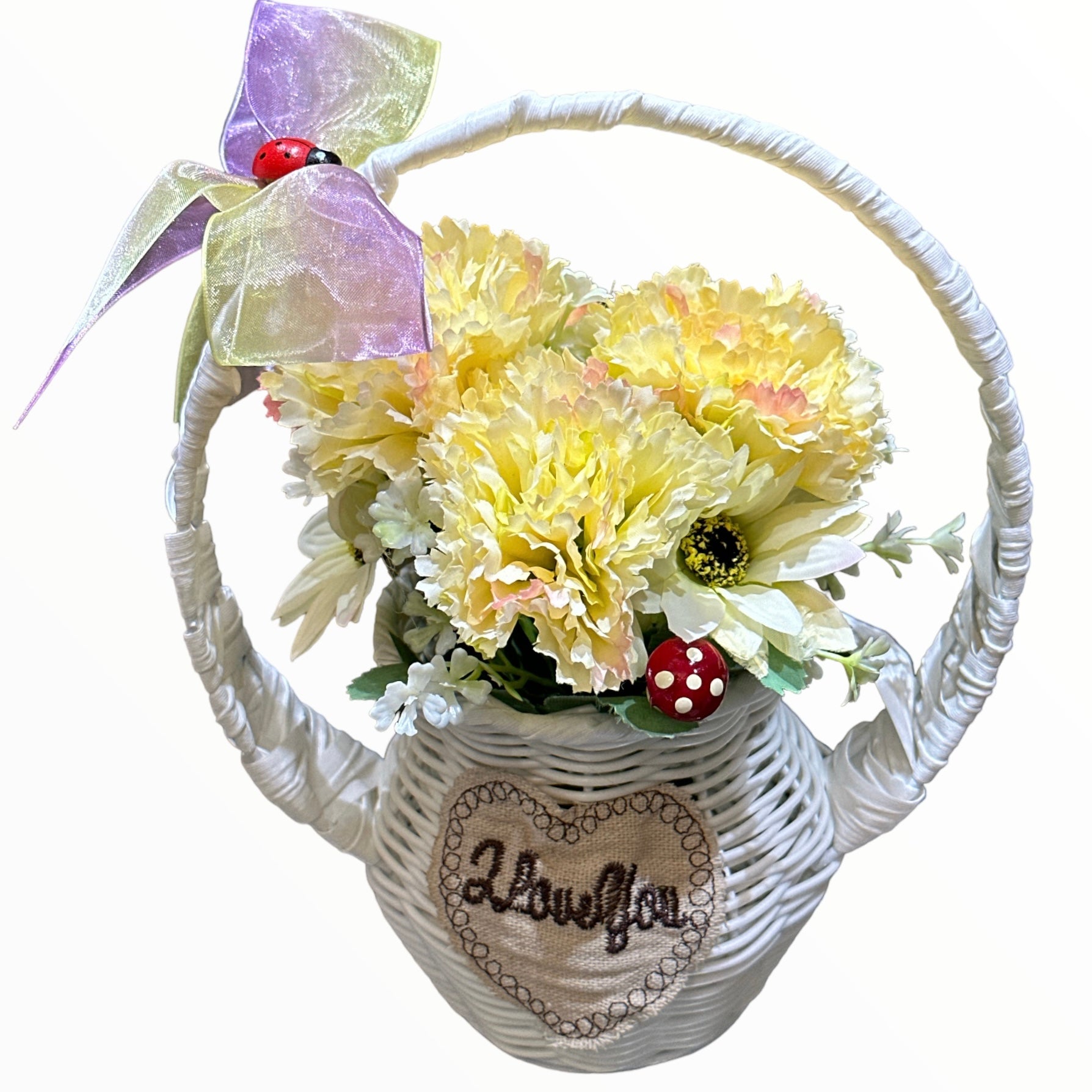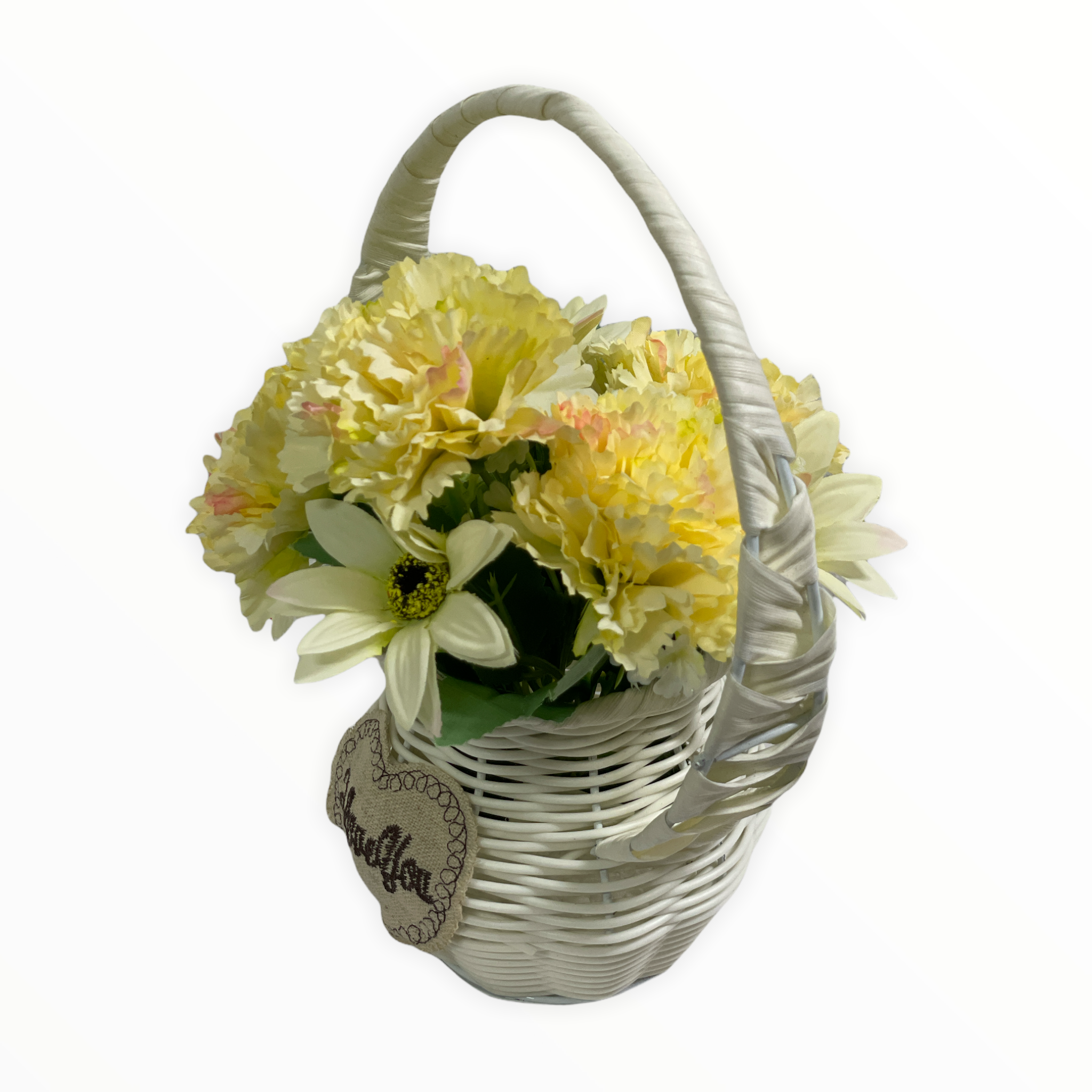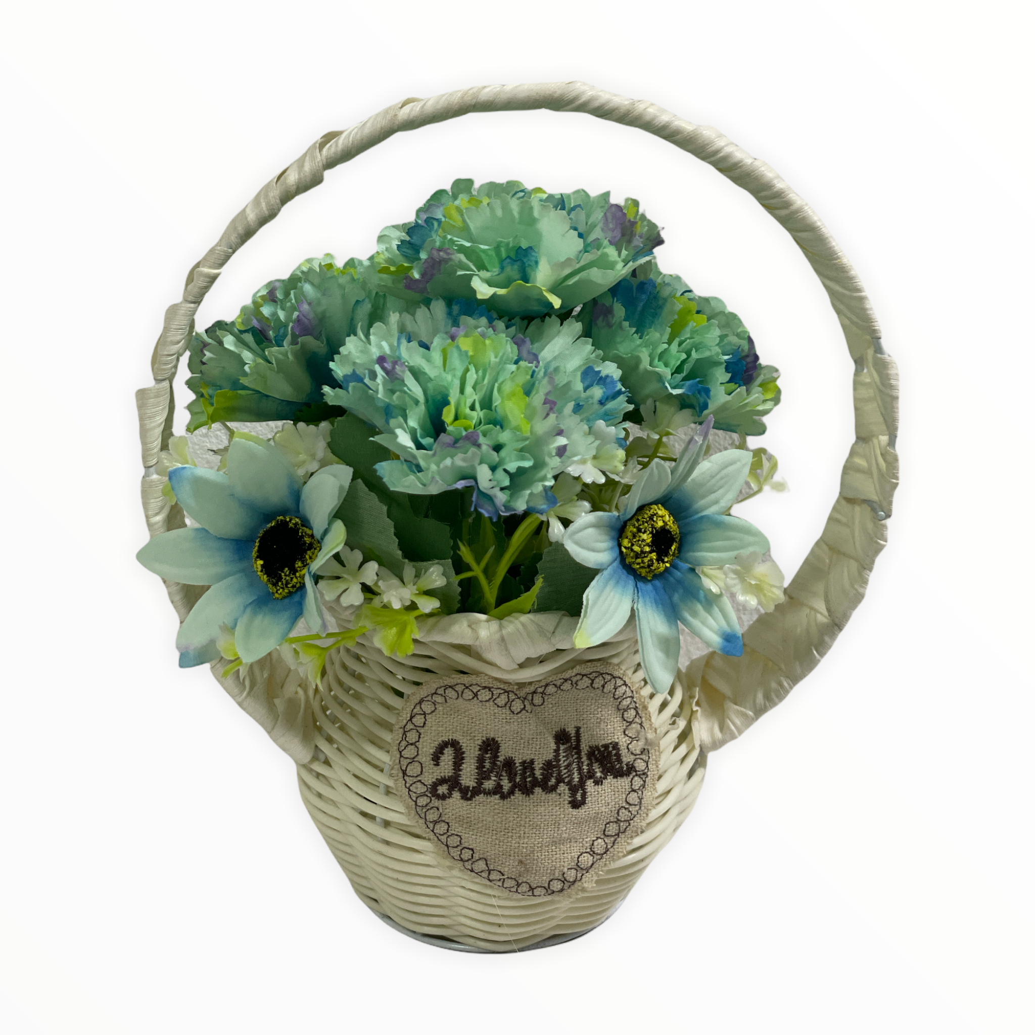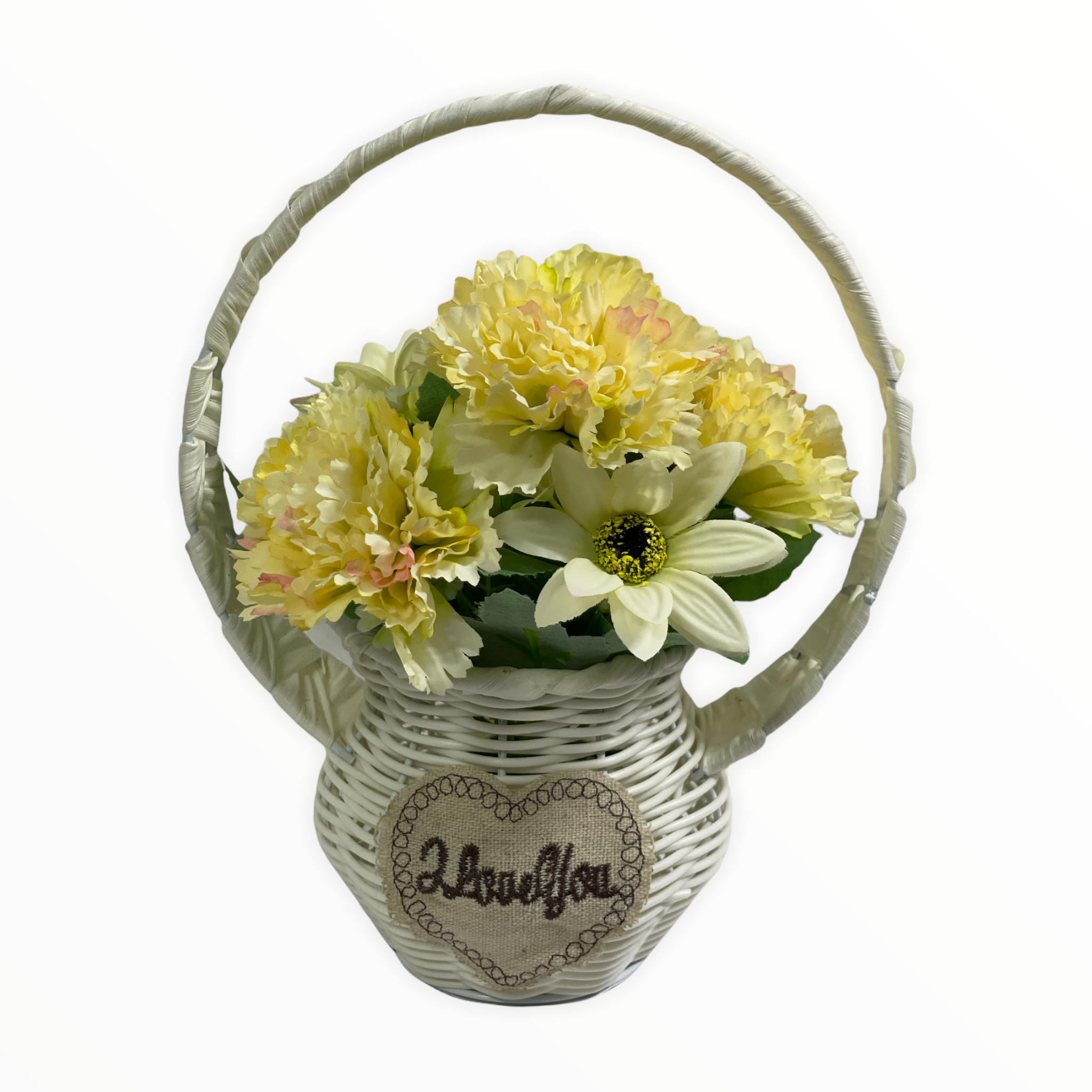 Este un produs elegant și rafinat care se îmbină perfect cu ambientul. Florile sunt artificiale din material textil și plastic.