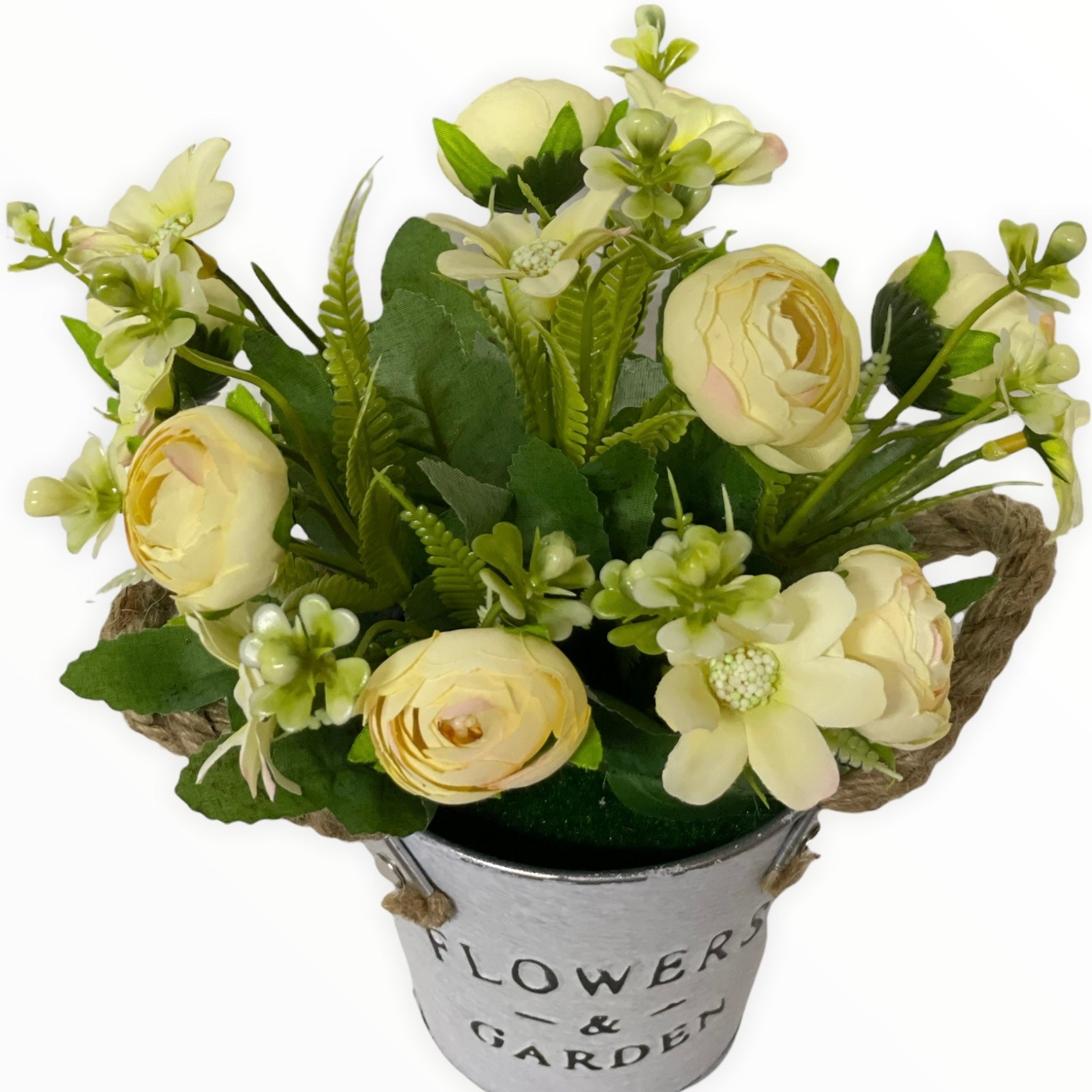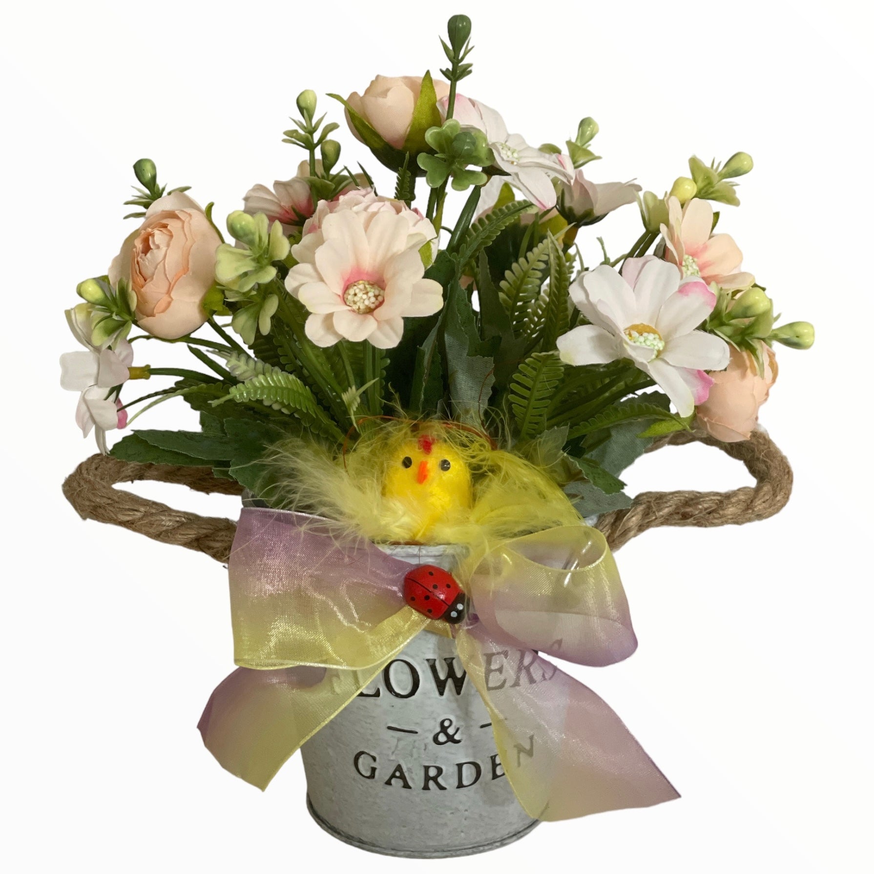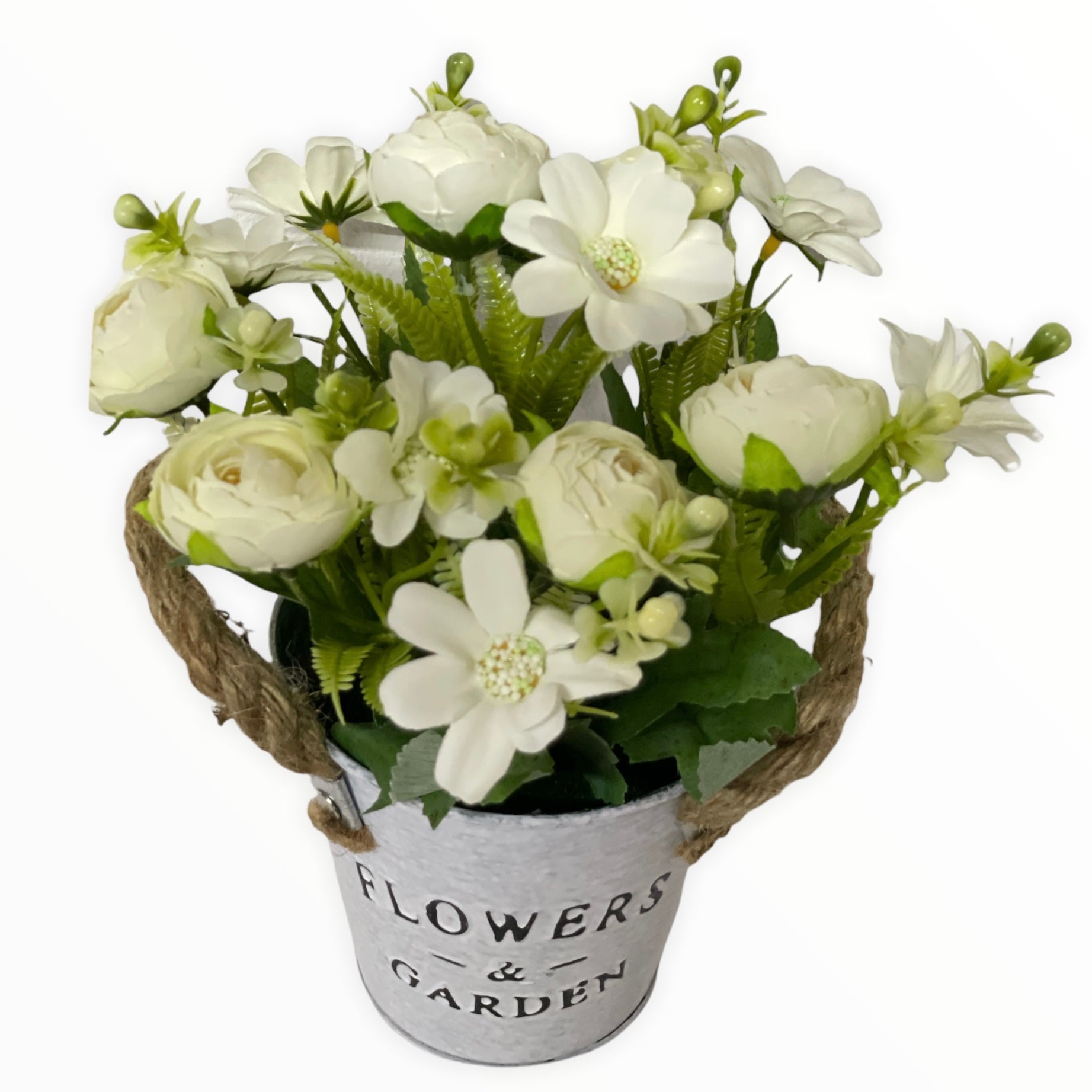 Este un produs elegant și rafinat care se îmbină perfect cu ambientul. Florile sunt artificiale din material textil și plastic.