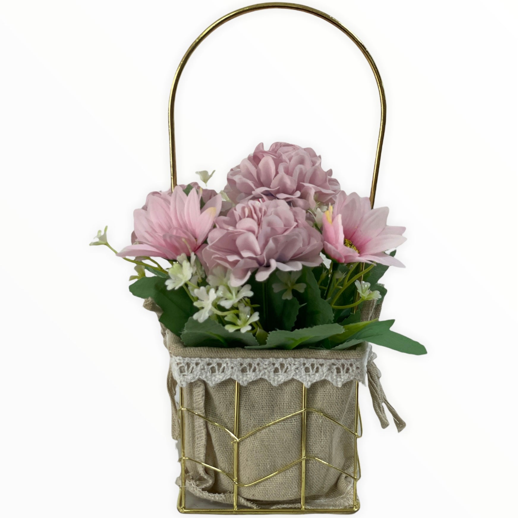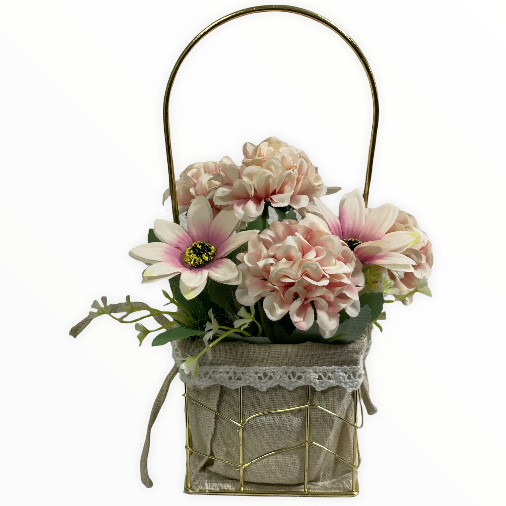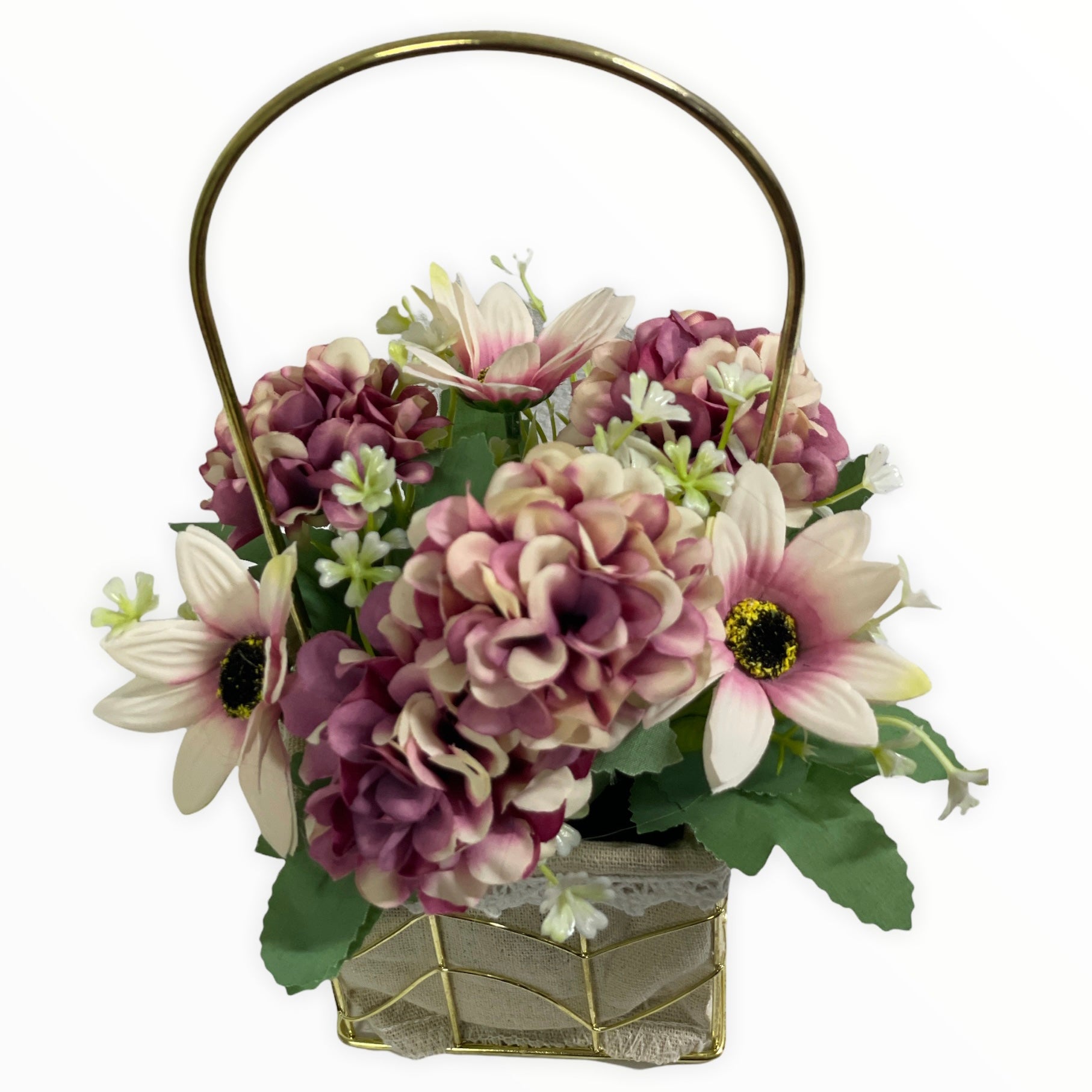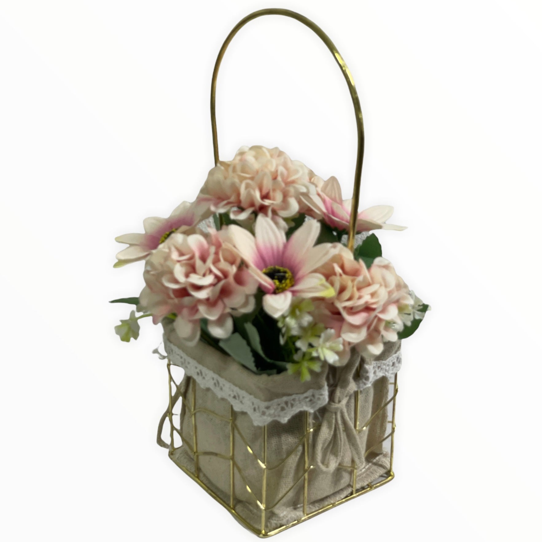 Este un produs elegant și rafinat care se îmbină perfect cu ambientul. Florile sunt artificiale din material textil și plastic.