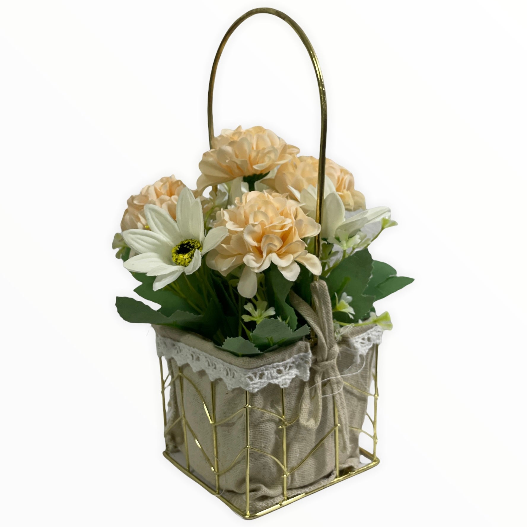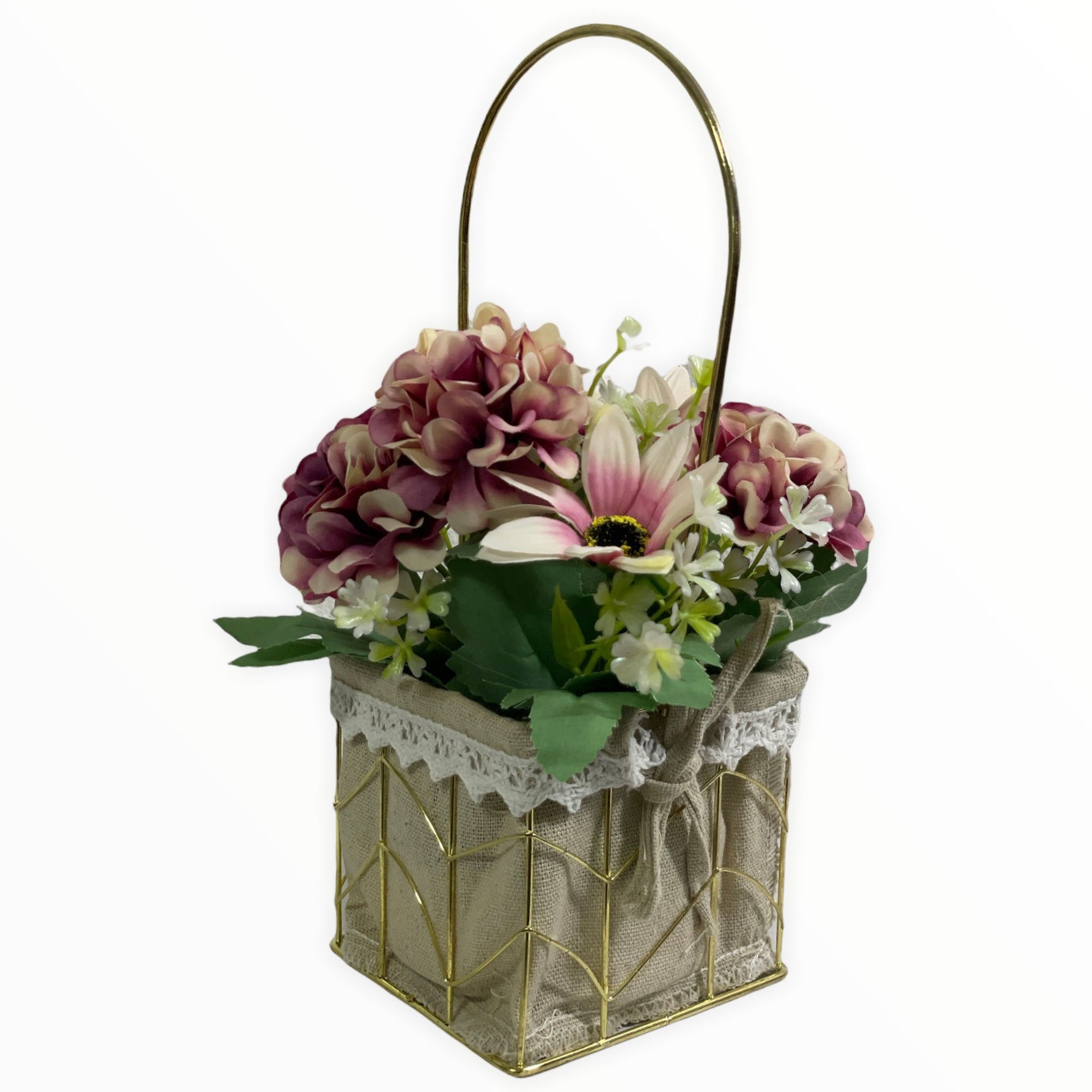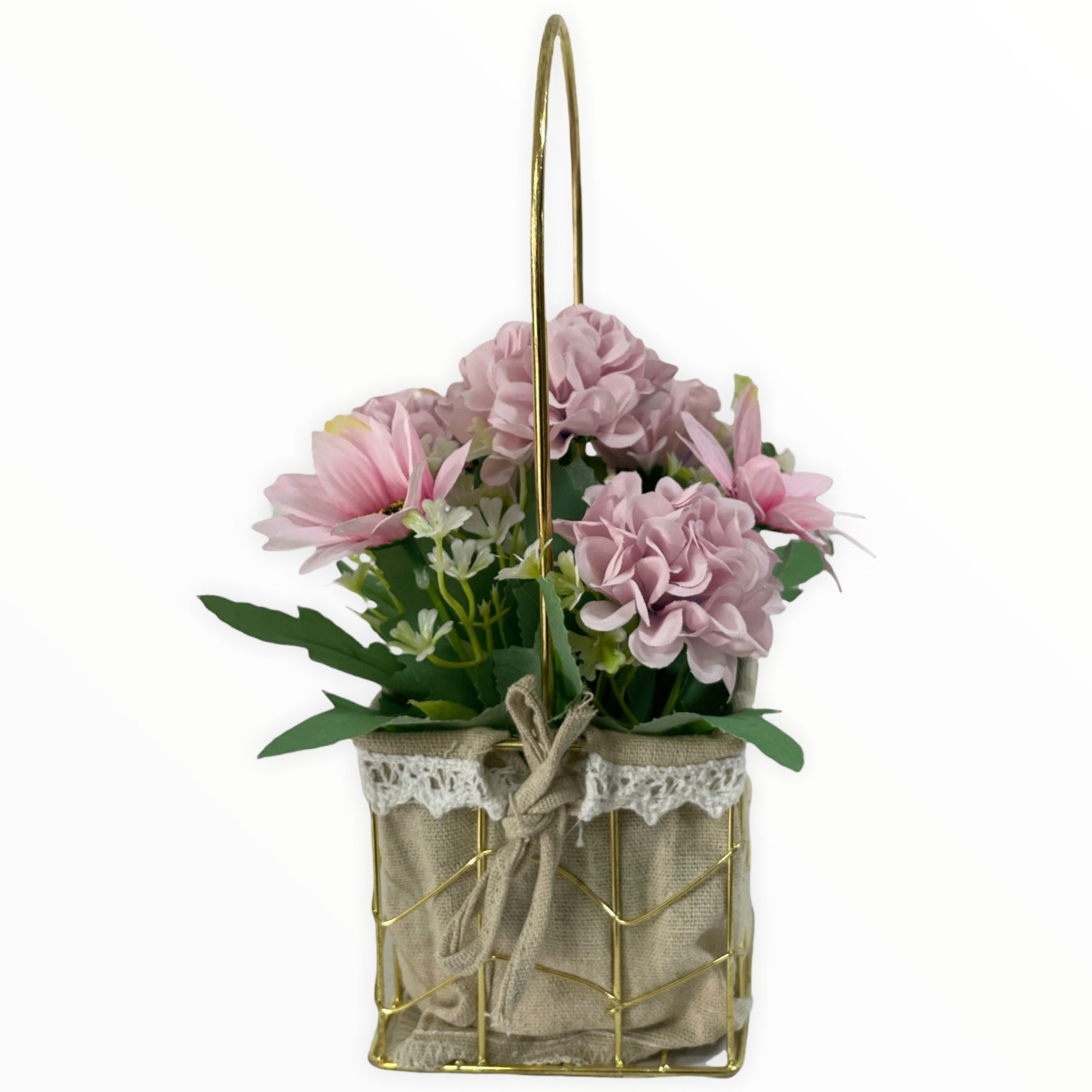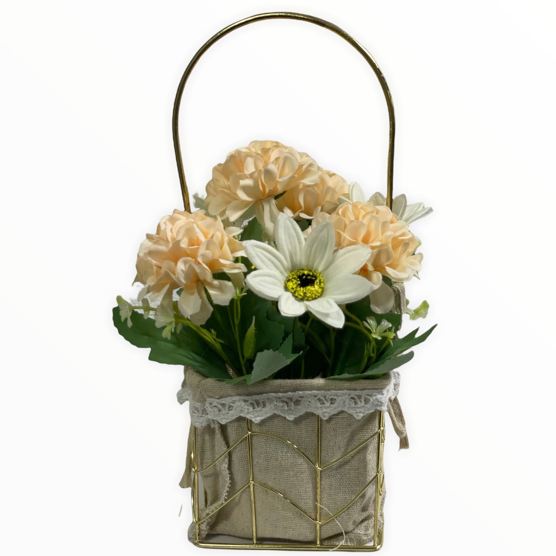 Este un produs elegant și rafinat care se îmbină perfect cu ambientul. Florile sunt artificiale din material textil și plastic.