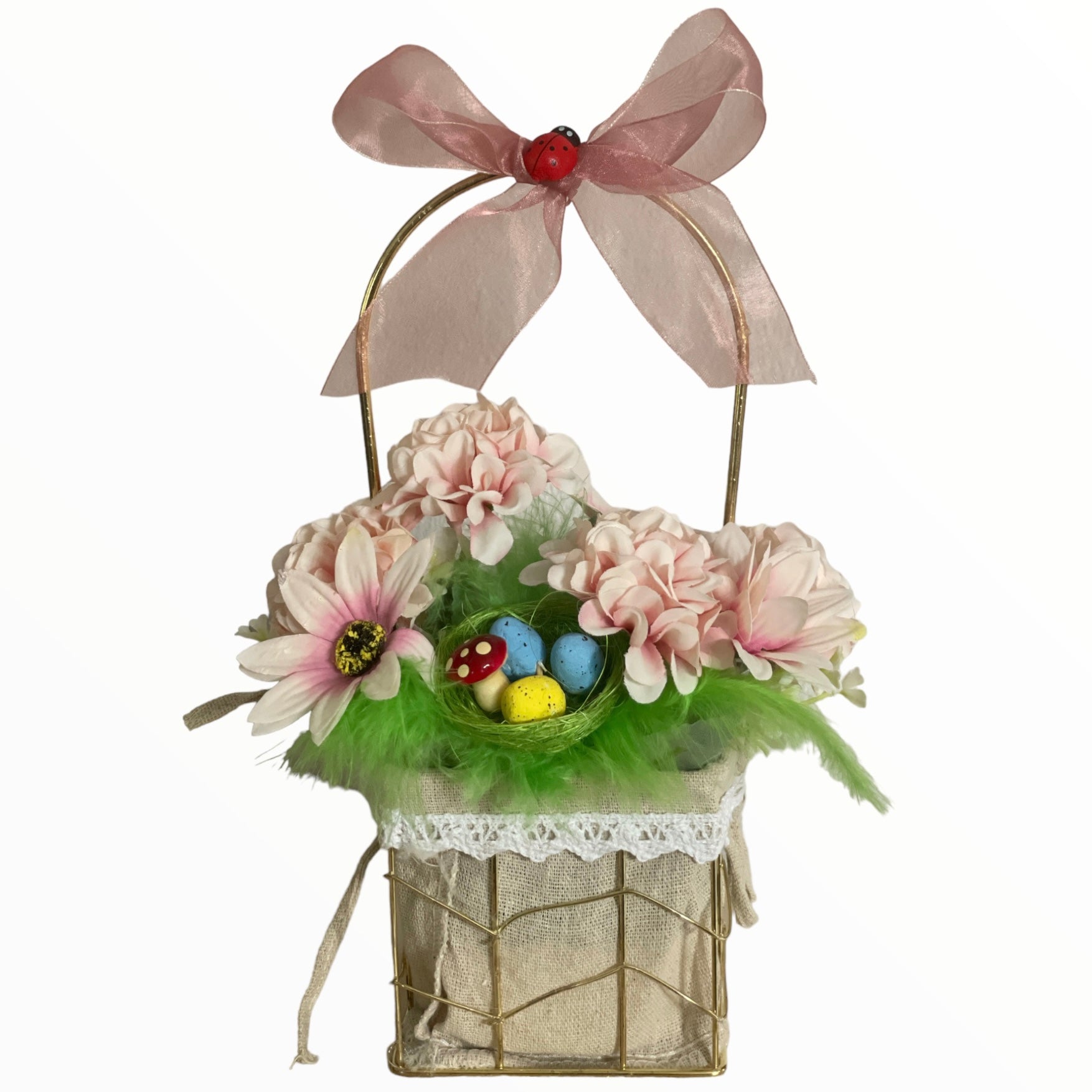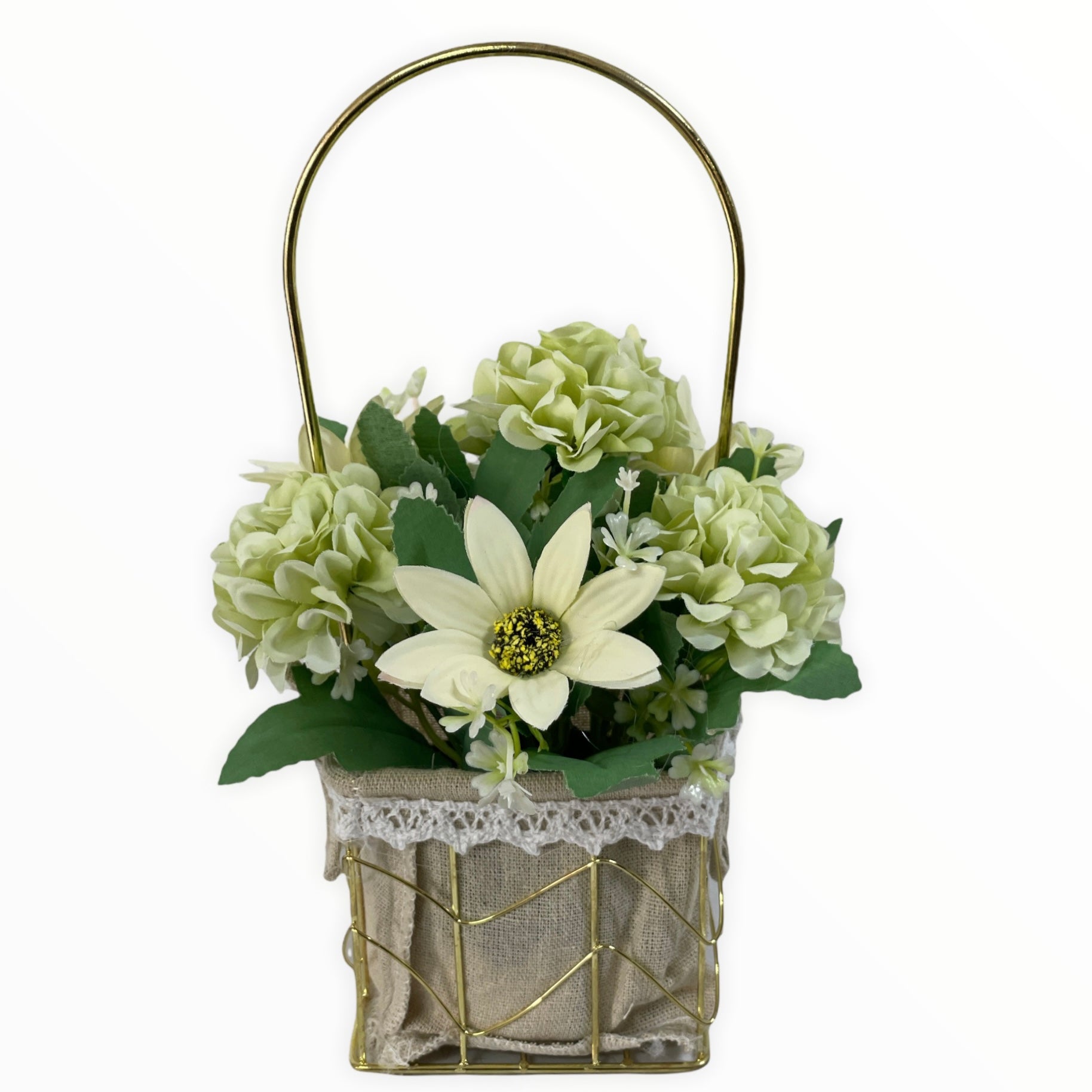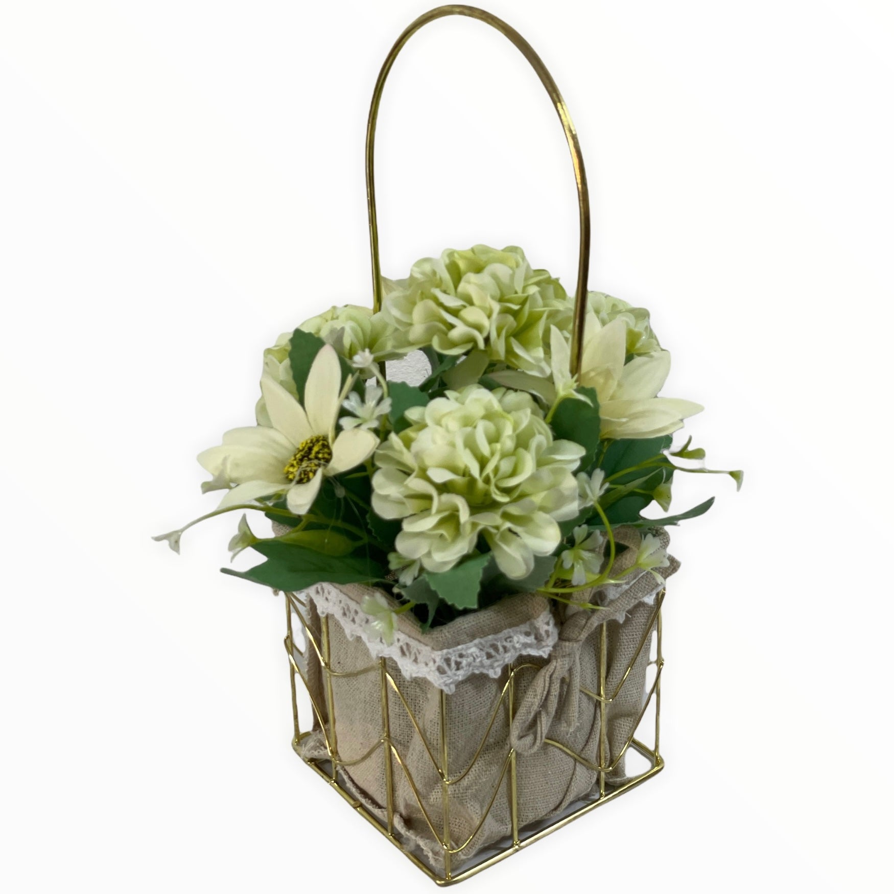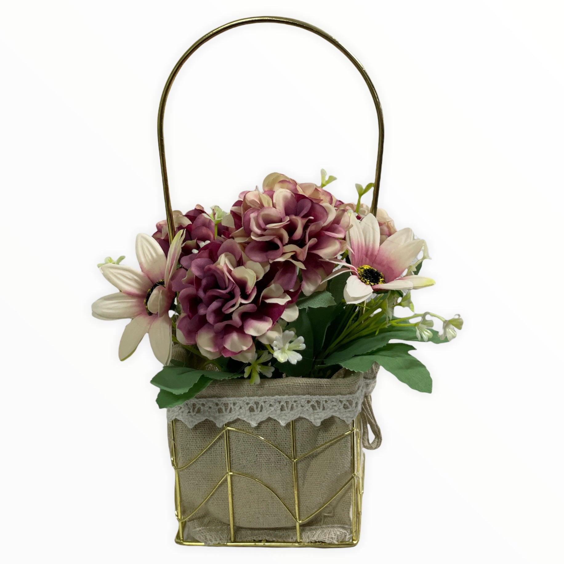 Este un produs elegant și rafinat care se îmbină perfect cu ambientul. Florile sunt artificiale din material textil și plastic.