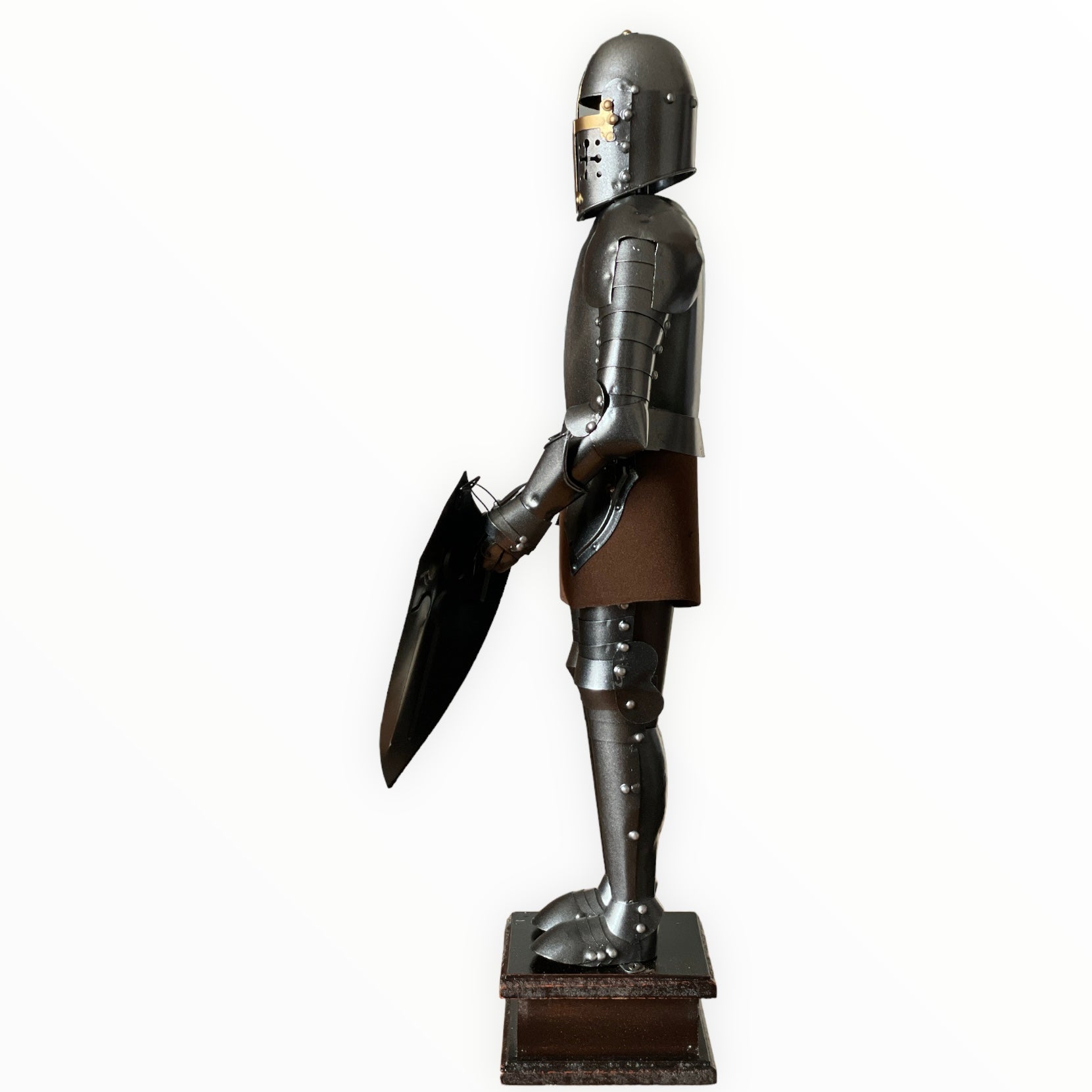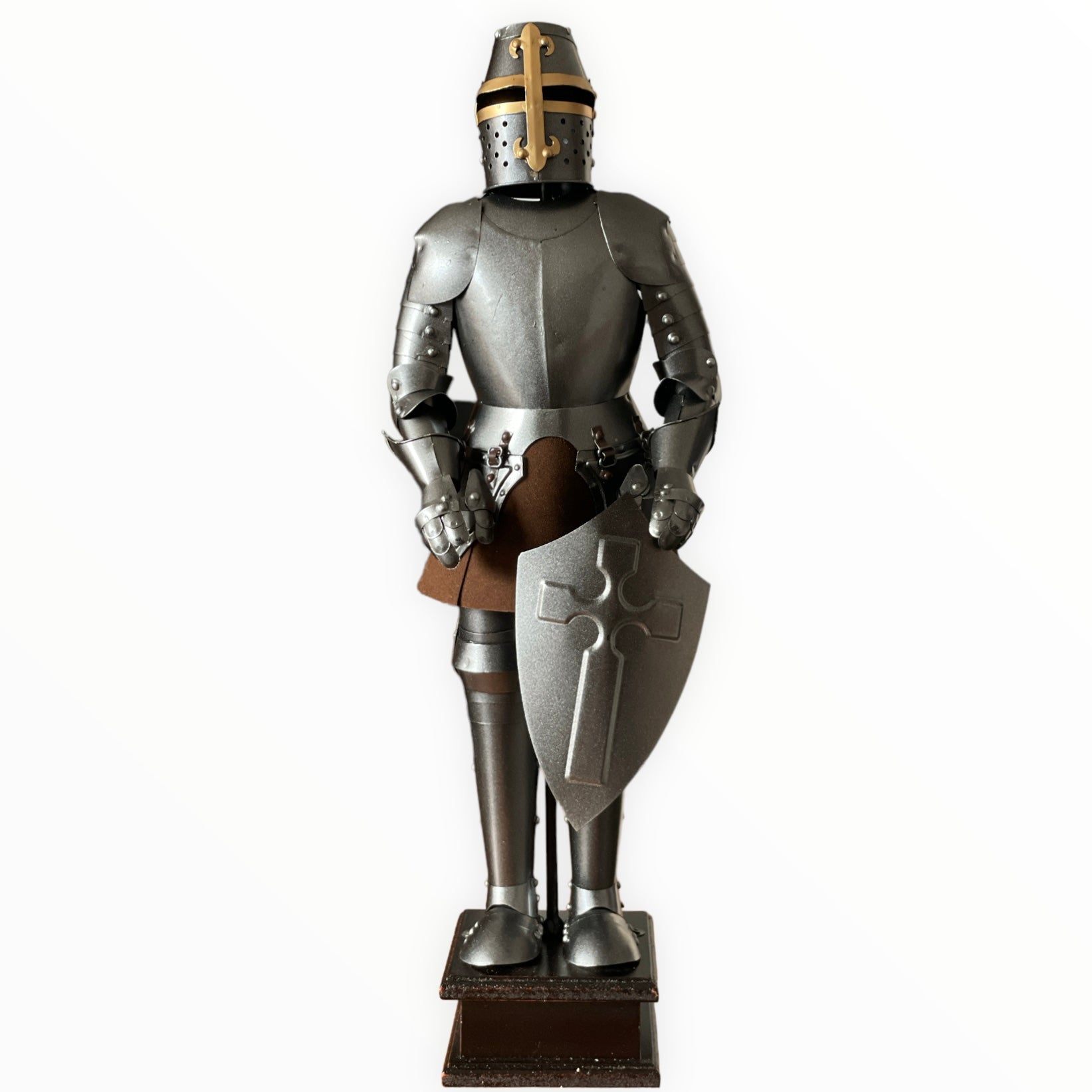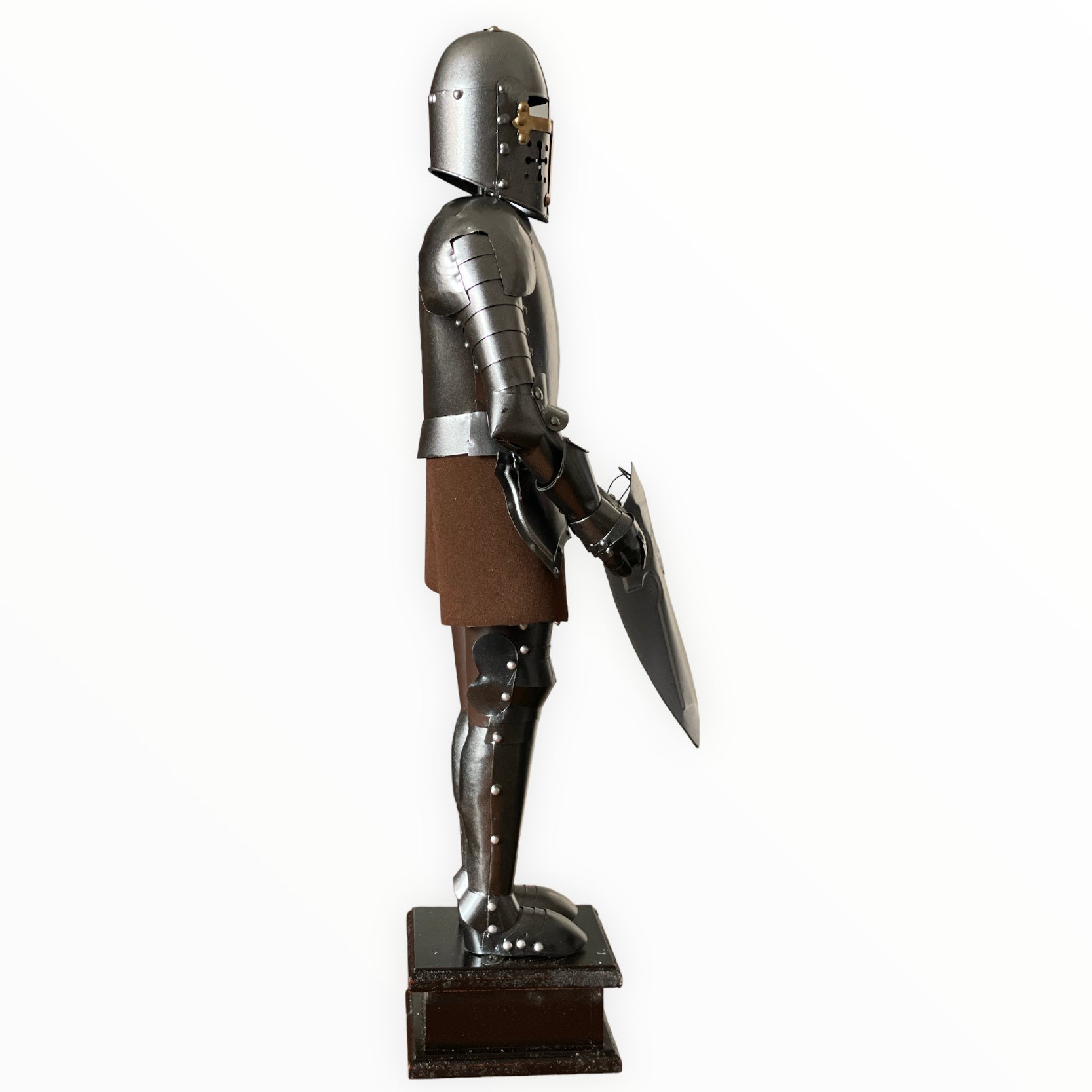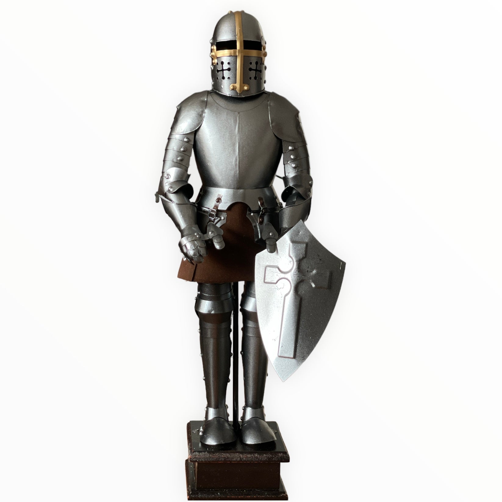 Armura metalică de cavaler medieval cu scut și sabie este o piesă deosebită , fin lucrată Este un obiect decorativ potrivit pentru un cadou la onomastica unui prieten drag dar poate fi folosită și ca obiect de decor pentru birouri sau restaurante.