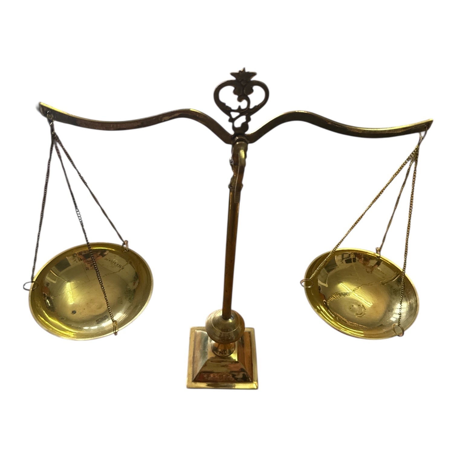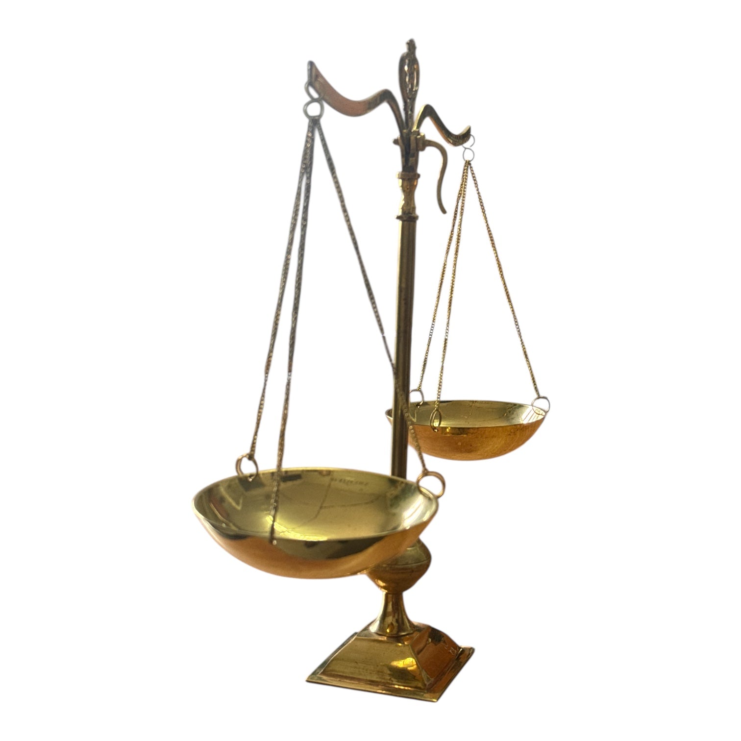 Balanță decorativă realizată din alamă, cu un design clasic și proporții elegante, ce oferă un aspect impunător și rafinat. Finisajul auriu lucios, împreună cu detaliile atent lucrate, transformă această piesă într-un element decorativ de impact, potrivit pentru birou, bibliotecă sau spații cu tematică clasică.