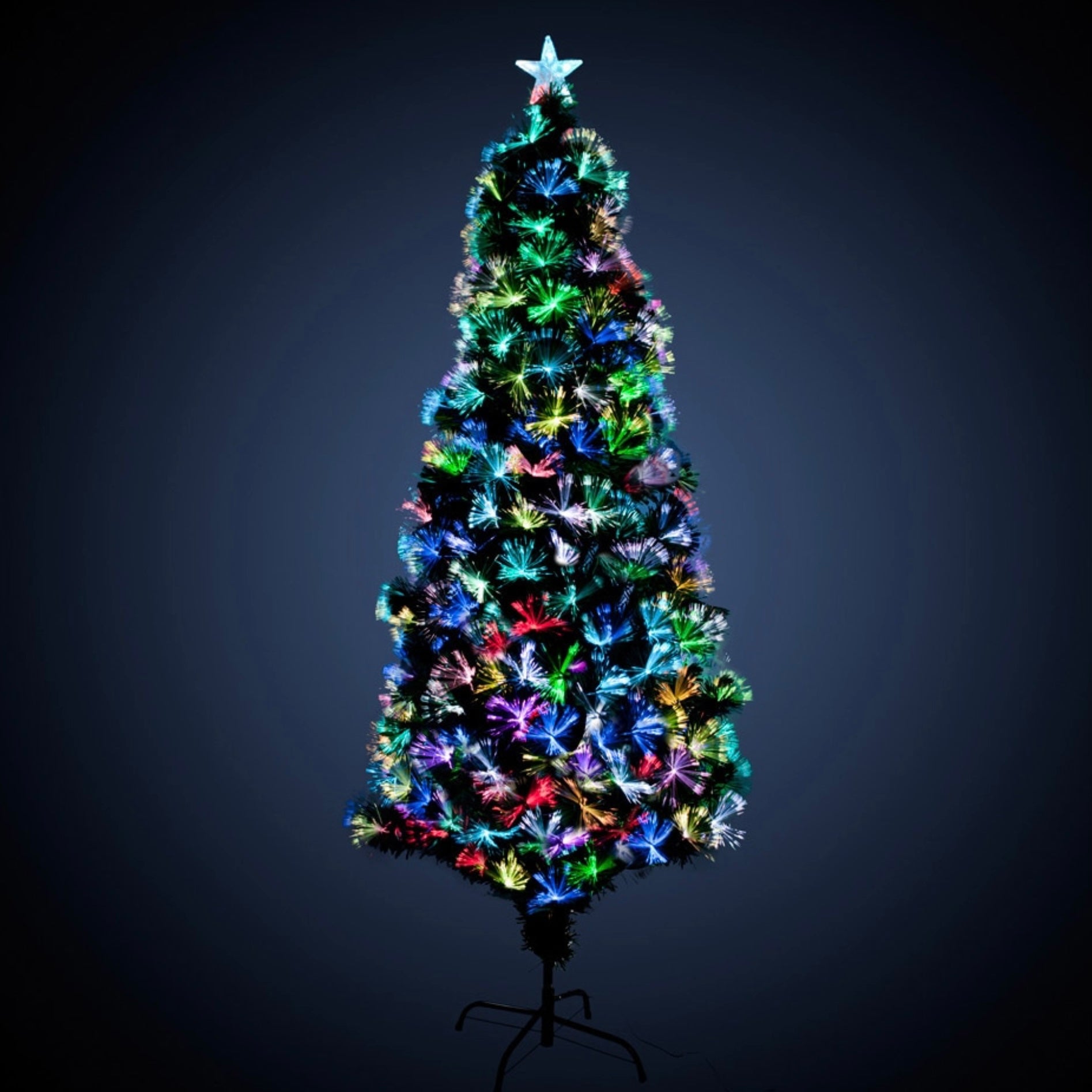 Crengile bradului sunt prevăzute la vârfuri cu fibră optică ce luminează multicolor.