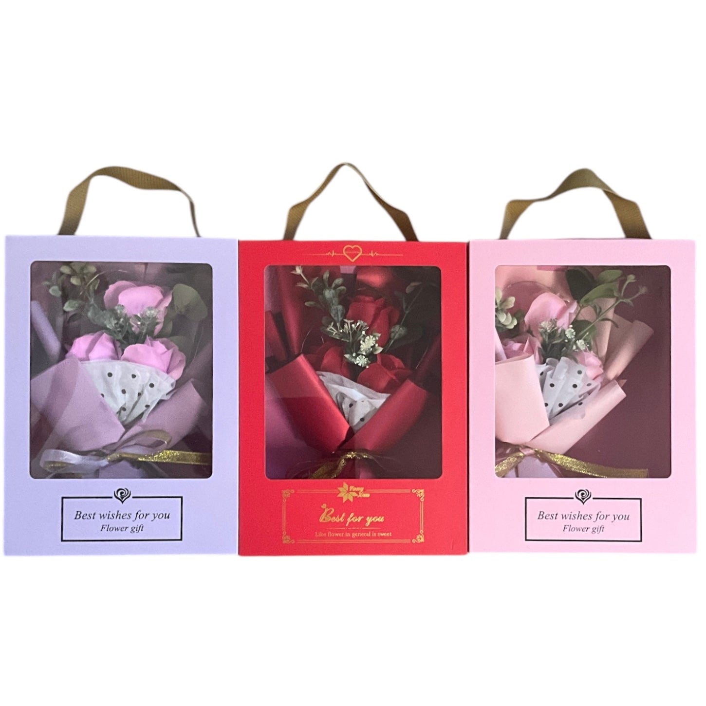 Trandafirii sunt confecționați din săpun și sunt ambalați individual în cutie (prețul afișat este pentru o cutie)