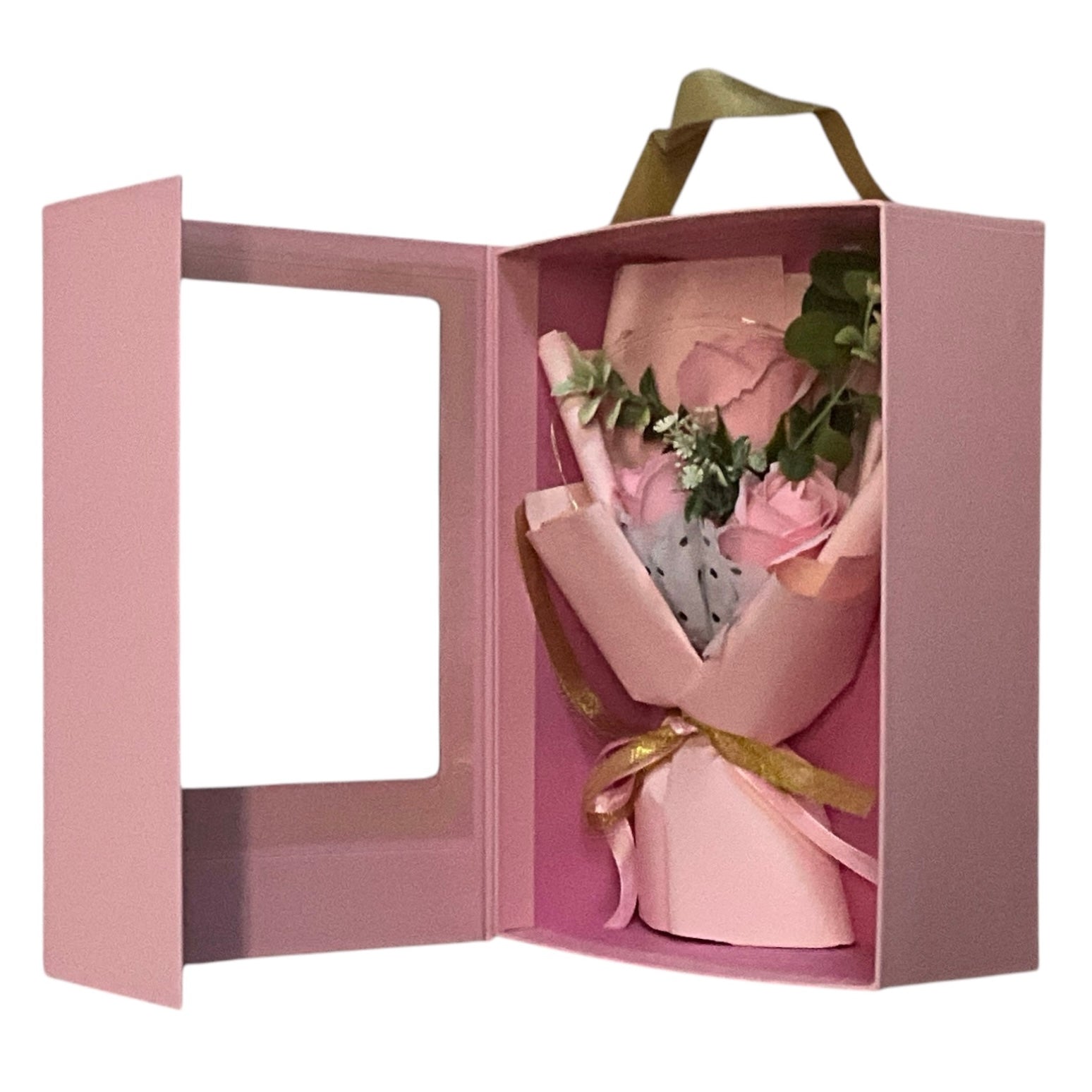 • Design Elegant: Buchetul este ambalat într-o cutie cadou sofisticată, cu fereastră transparentă pentru a pune în evidență aranjamentul floral.