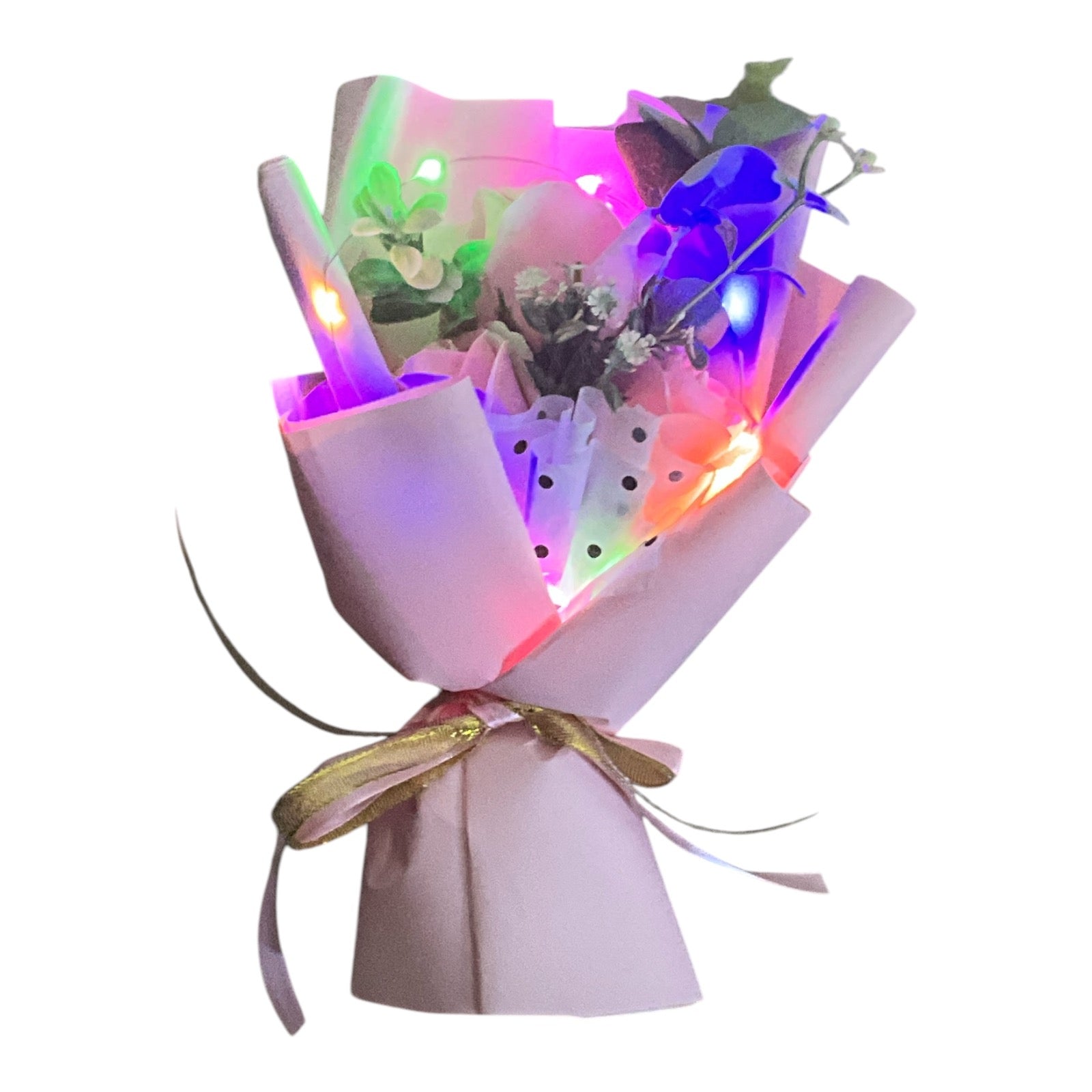 • Lumini LED Integrate: Florile sunt accentuate de lumini LED multicolore, creând un efect spectaculos și plin de farmec.