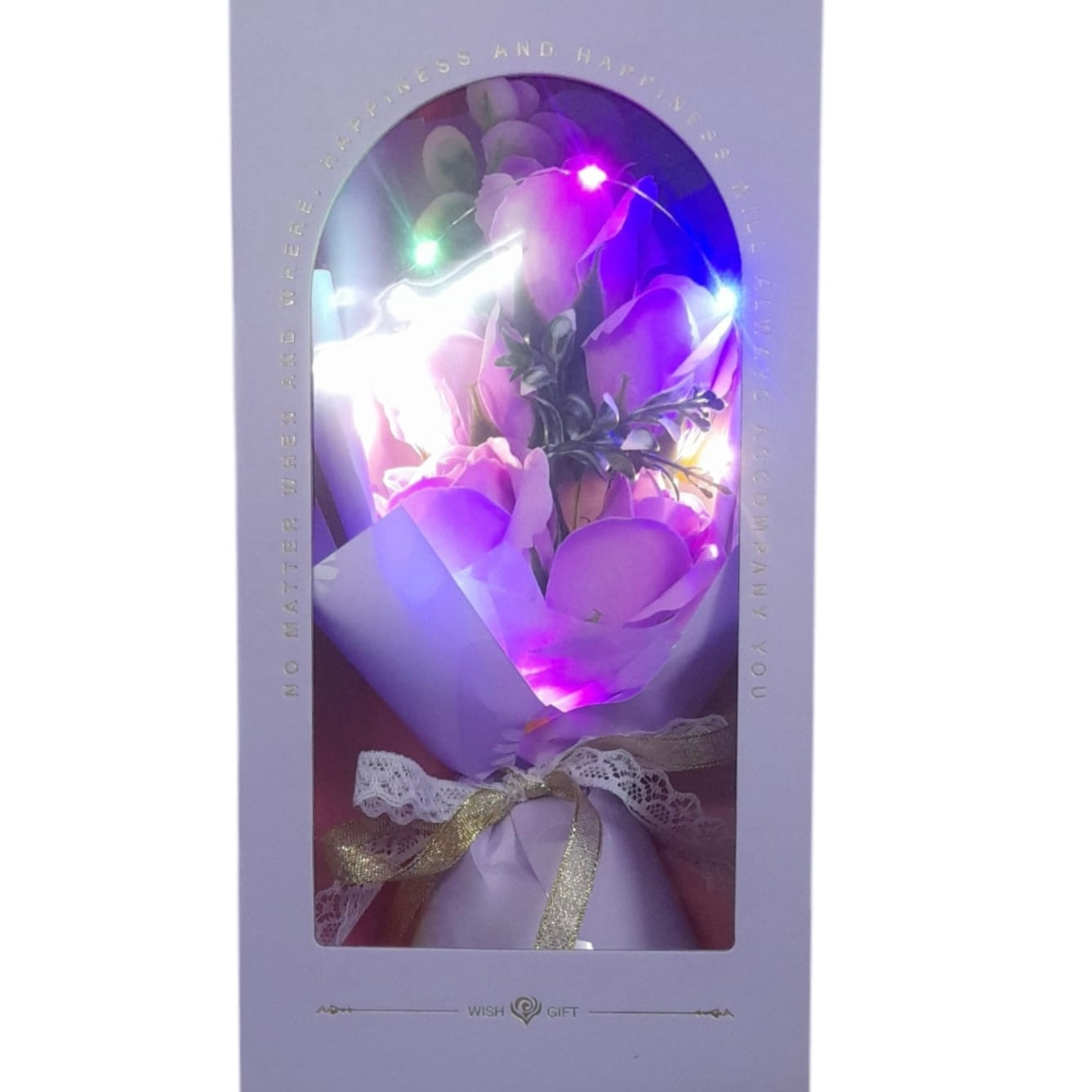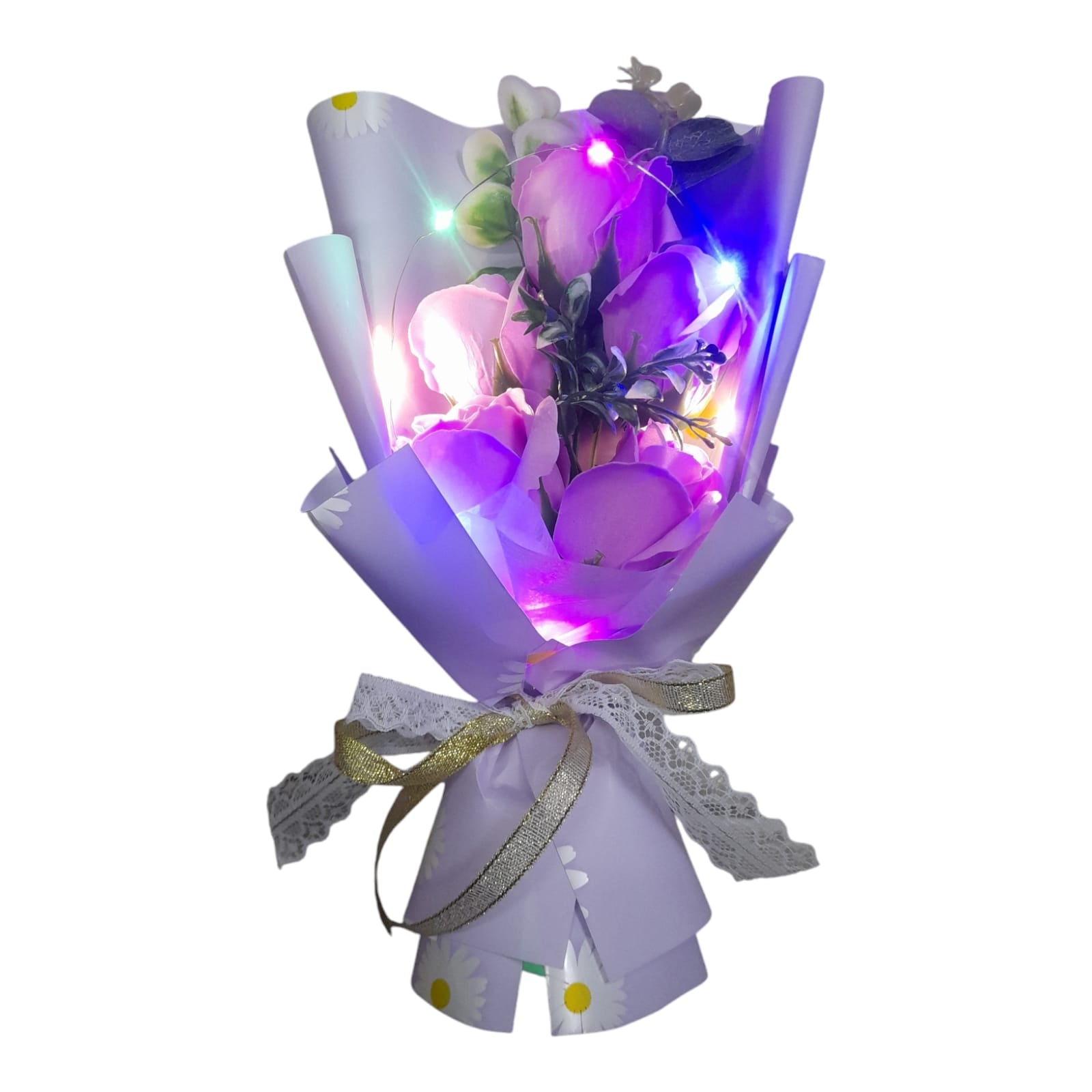• Lumini LED Integrate: Florile sunt accentuate de lumini LED multicolore, creând un efect spectaculos și plin de farmec.