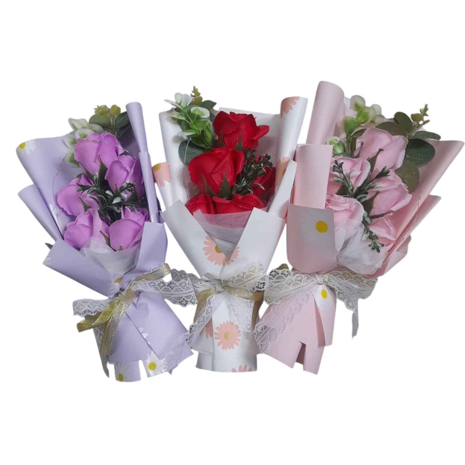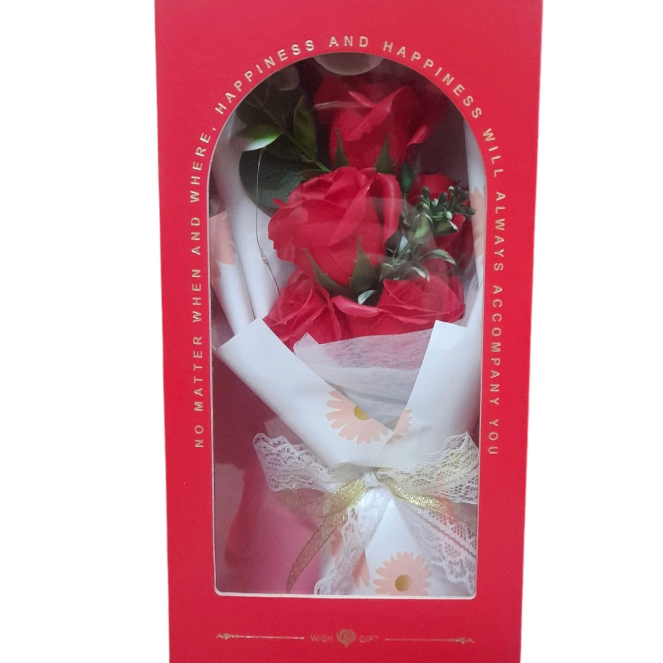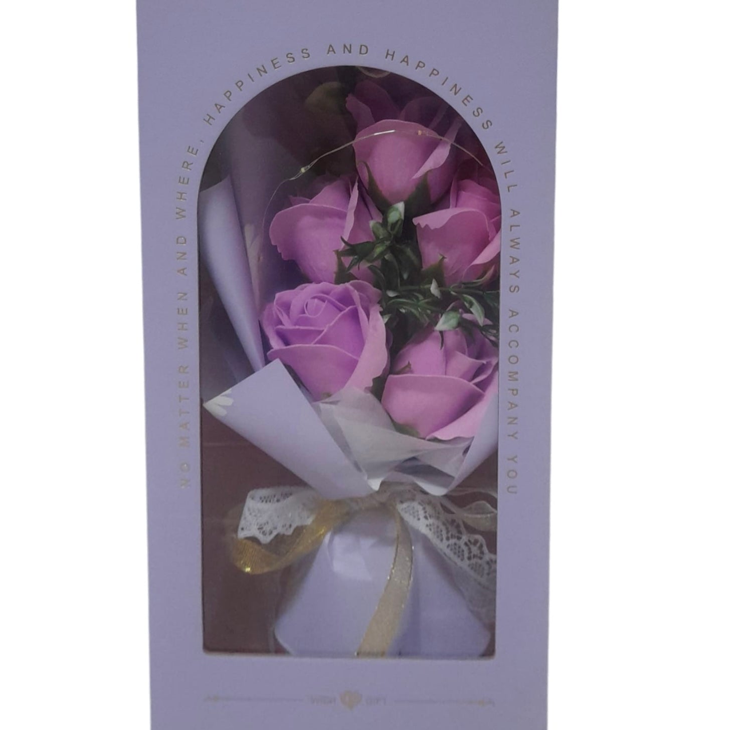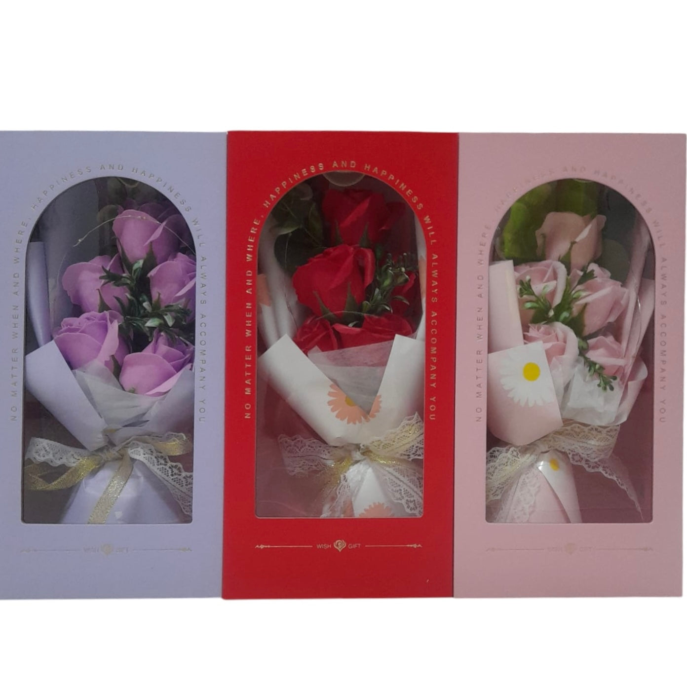 Trandafirii sunt confecționați din săpun și sunt ambalați individual în cutie (prețul afișat este pentru o cutie)