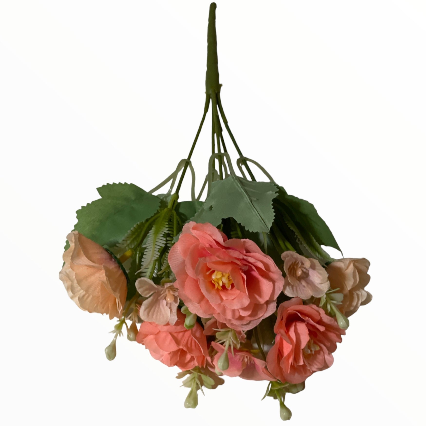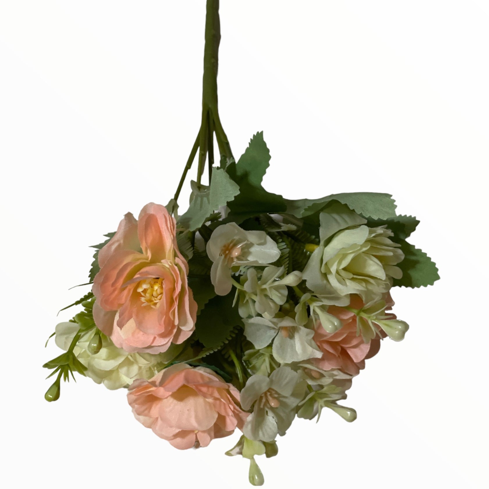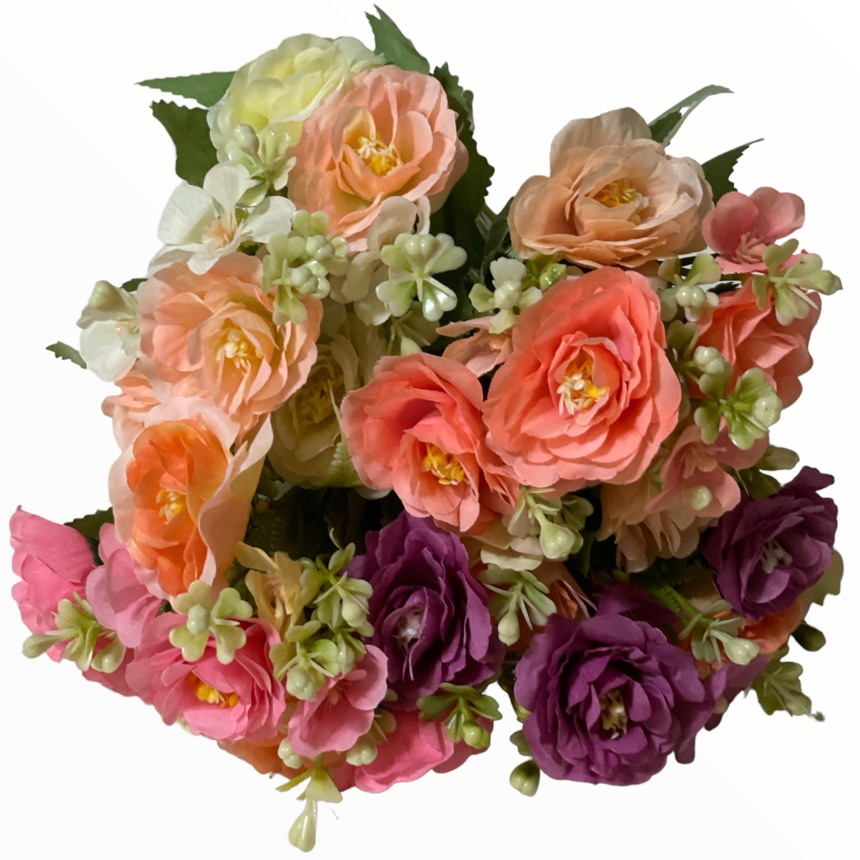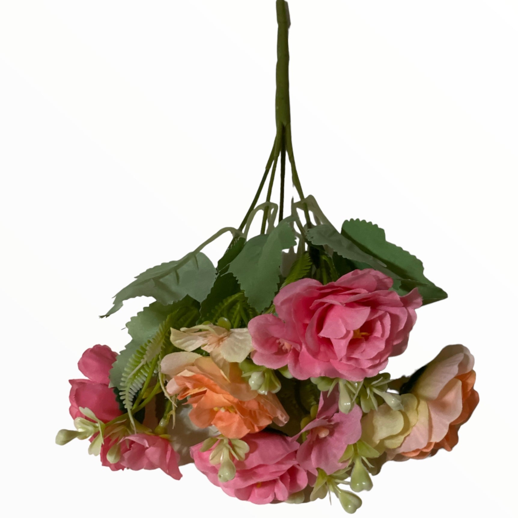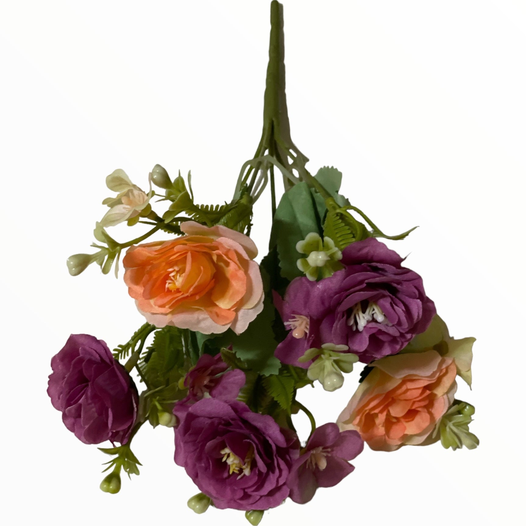 Buchetul decorativ cu flori artificiale în nuanțe delicate de culori diverse , completate de frunze verzi și elemente decorative. Realizate cu atenție la detalii, florile oferă un aspect natural și elegant, fiind ideale pentru decorarea locuințelor, birourilor sau evenimentelor speciale.
