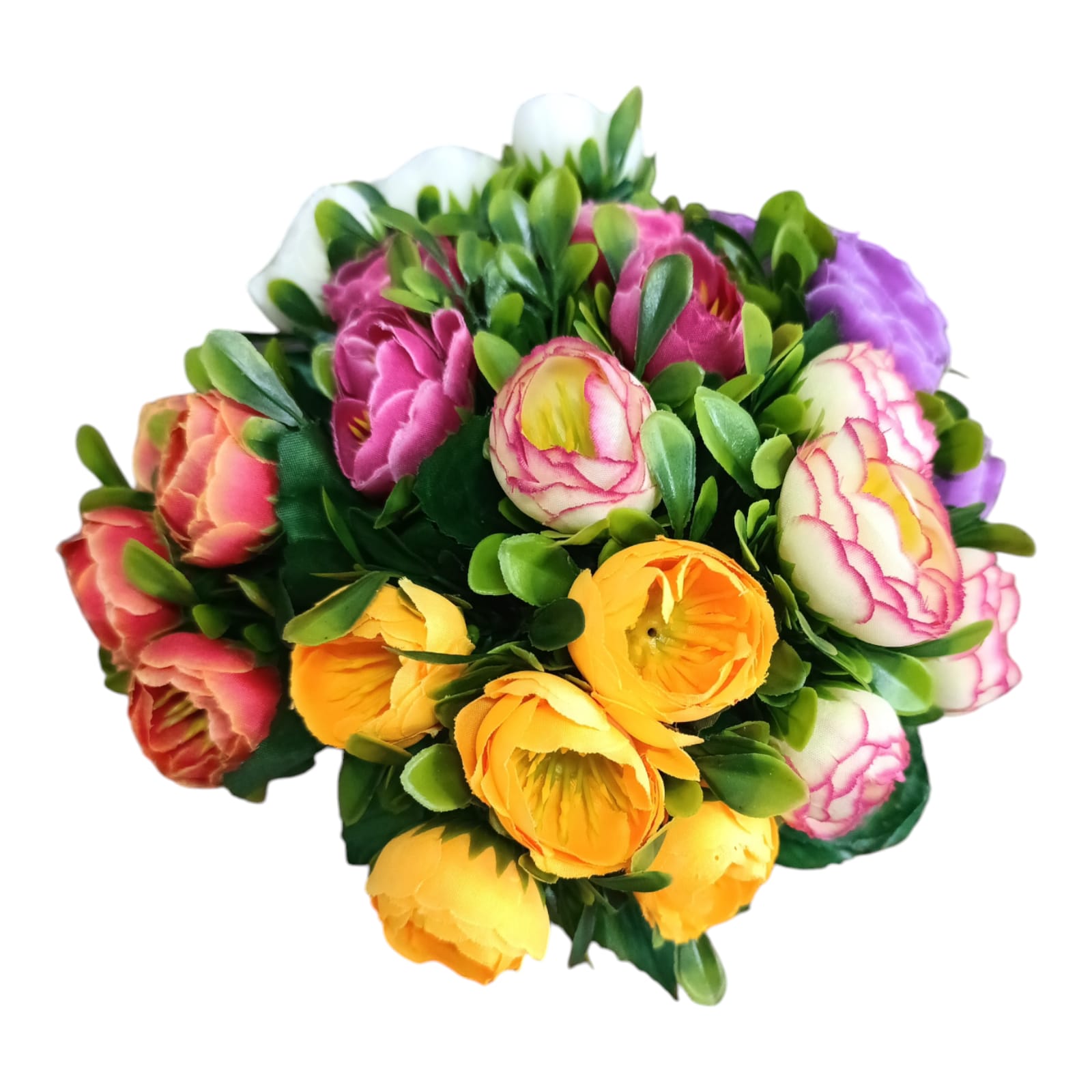 Adaugă o notă vibrantă decorului tău cu acest set de flori artificiale în culori vii și variate. Acest buchet este perfect pentru a înveseli orice spațiu, fie că este vorba de o masă, un birou sau o vitrină.