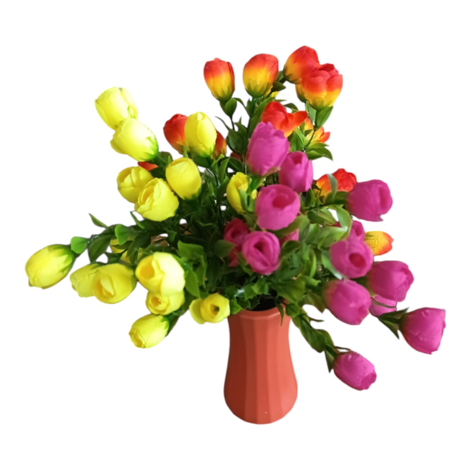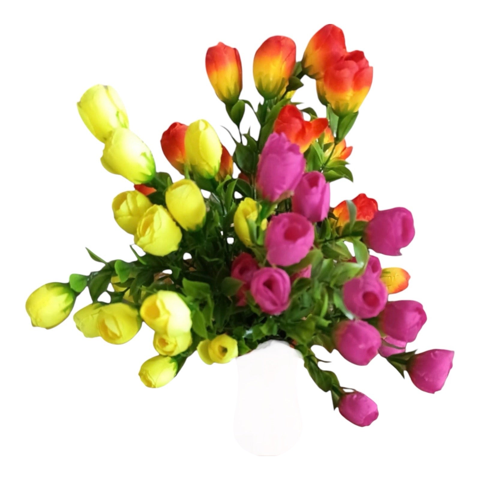 Adaugă o notă vibrantă decorului tău cu acest set de flori artificiale în culori vii și variate. Acest buchet este perfect pentru a înveseli orice spațiu, fie că este vorba de o masă, un birou sau o vitrină.