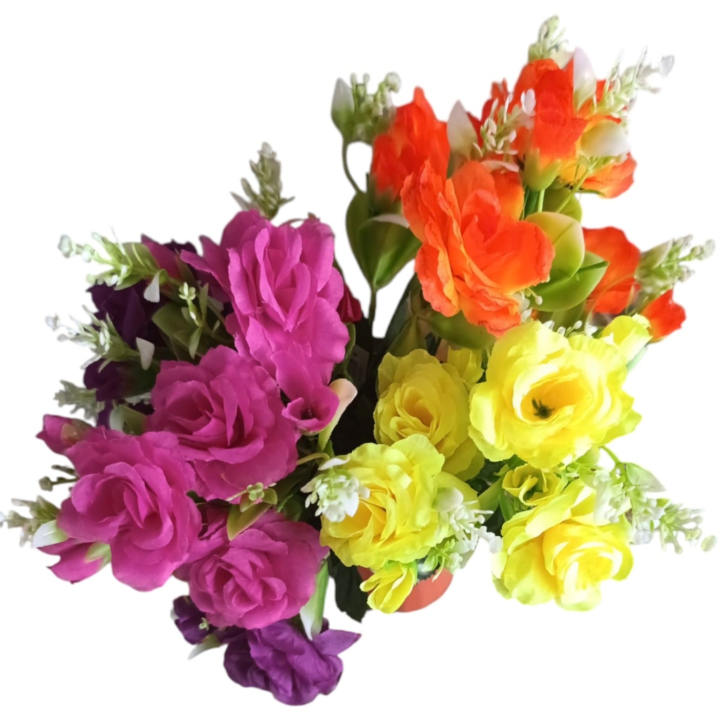 Adaugă o notă vibrantă decorului tău cu acest set de flori artificiale în culori vii și variate. Acest buchet este perfect pentru a înveseli orice spațiu, fie că este vorba de o masă, un birou sau o vitrină.