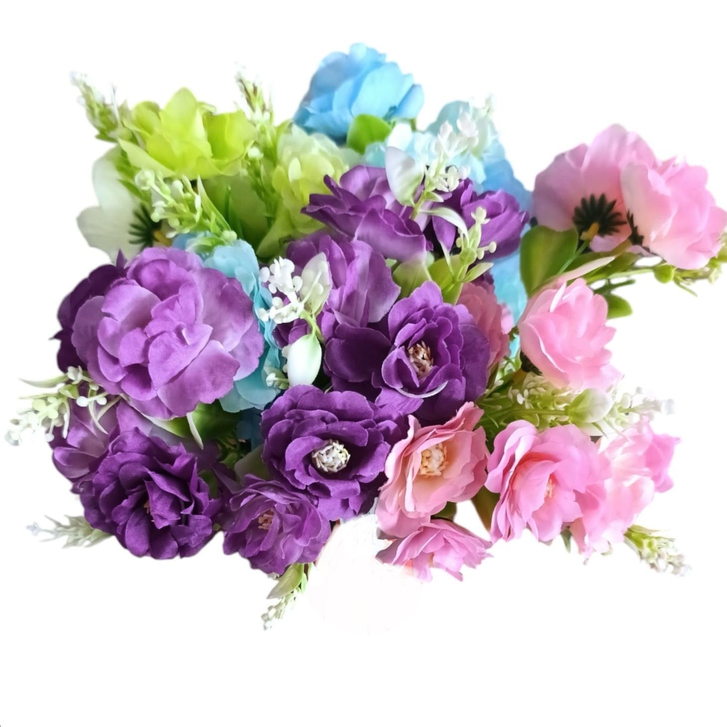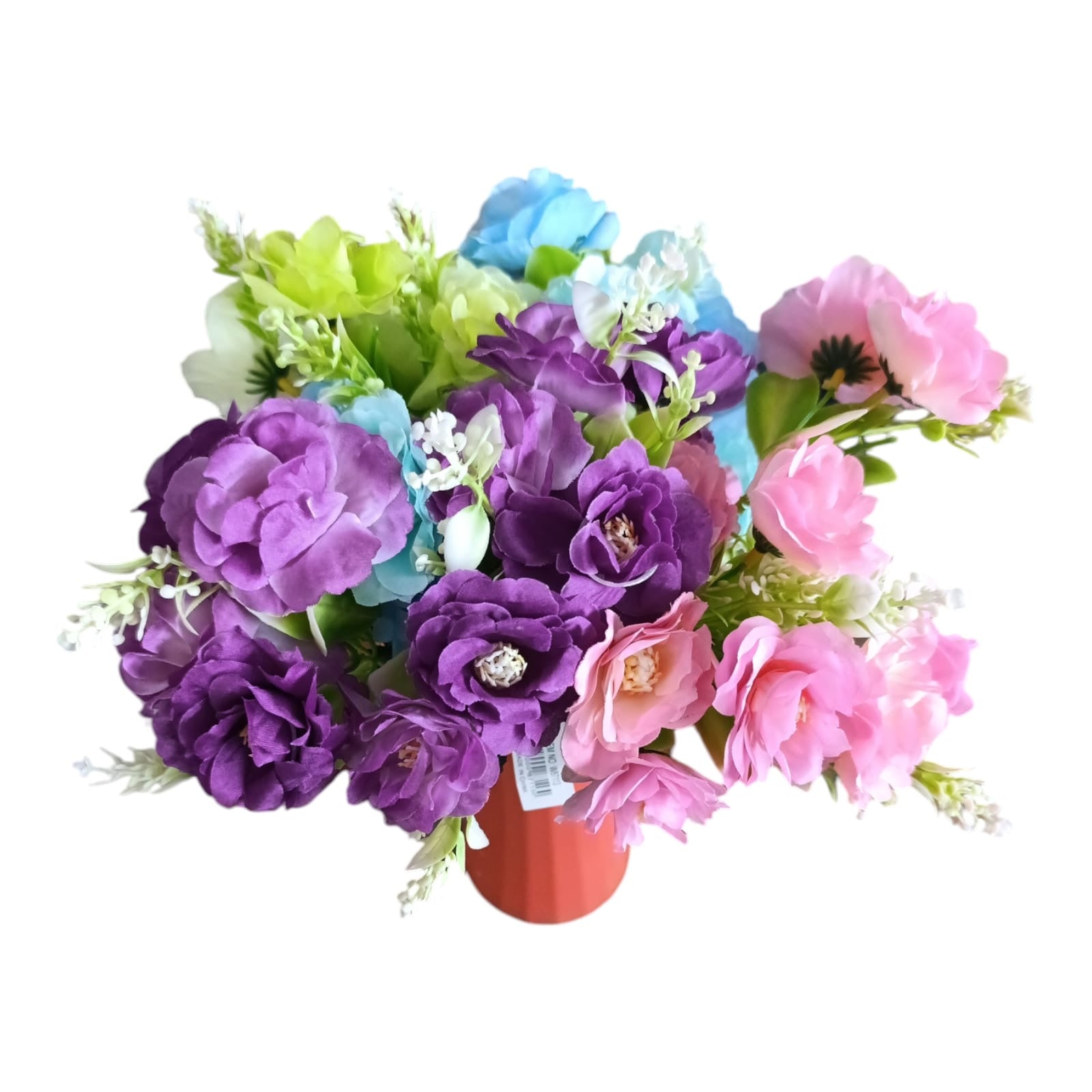 Adaugă o notă vibrantă decorului tău cu acest set de flori artificiale în culori vii și variate. Acest buchet este perfect pentru a înveseli orice spațiu, fie că este vorba de o masă, un birou sau o vitrină.