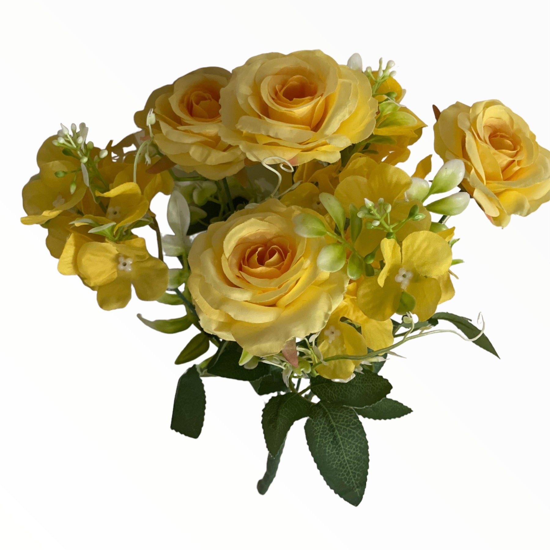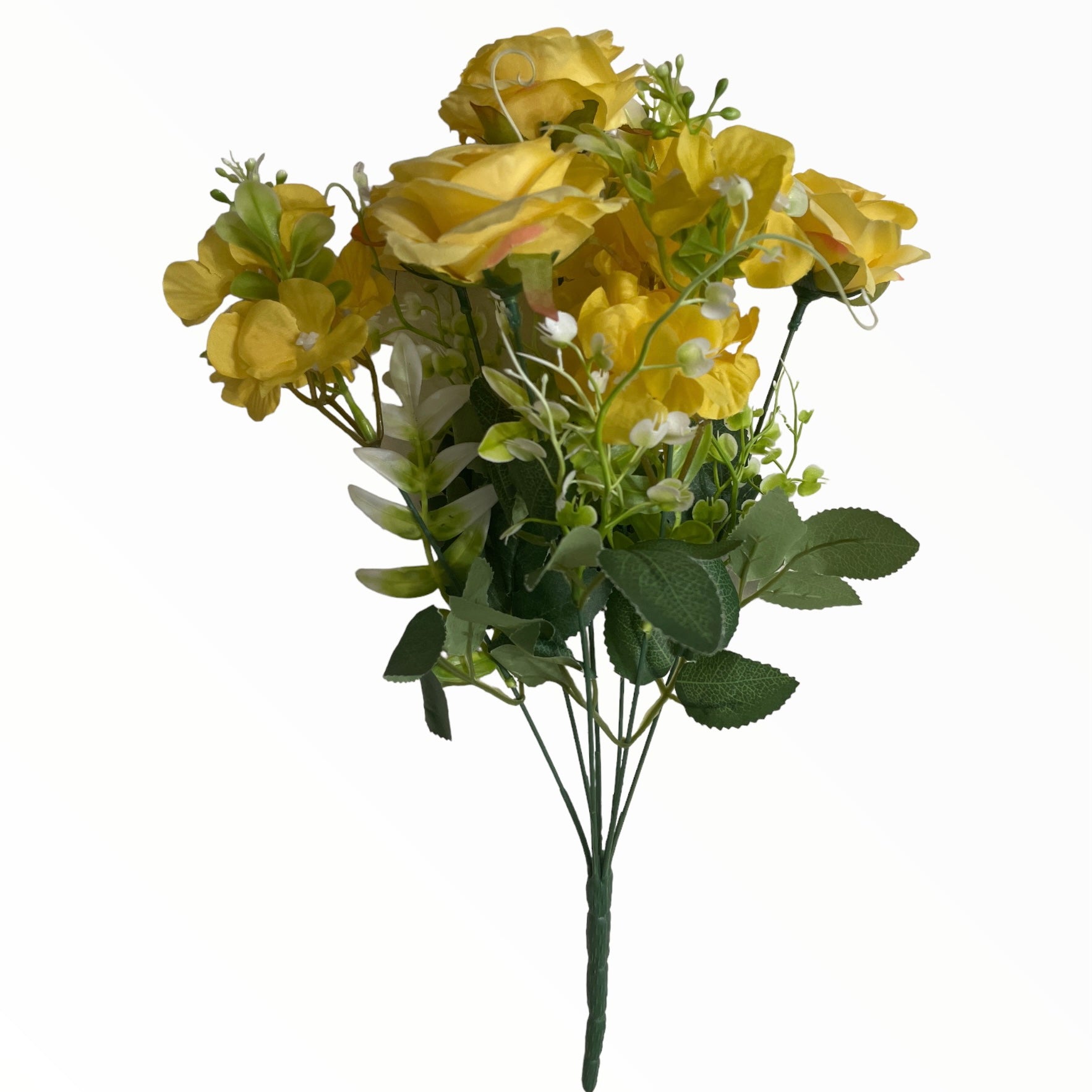 Este un produs elegant și rafinat care se îmbină perfect cu ambientul. Florile sunt artificiale din material textil si plastic și tijele sunt din plastic cu metal în interior.