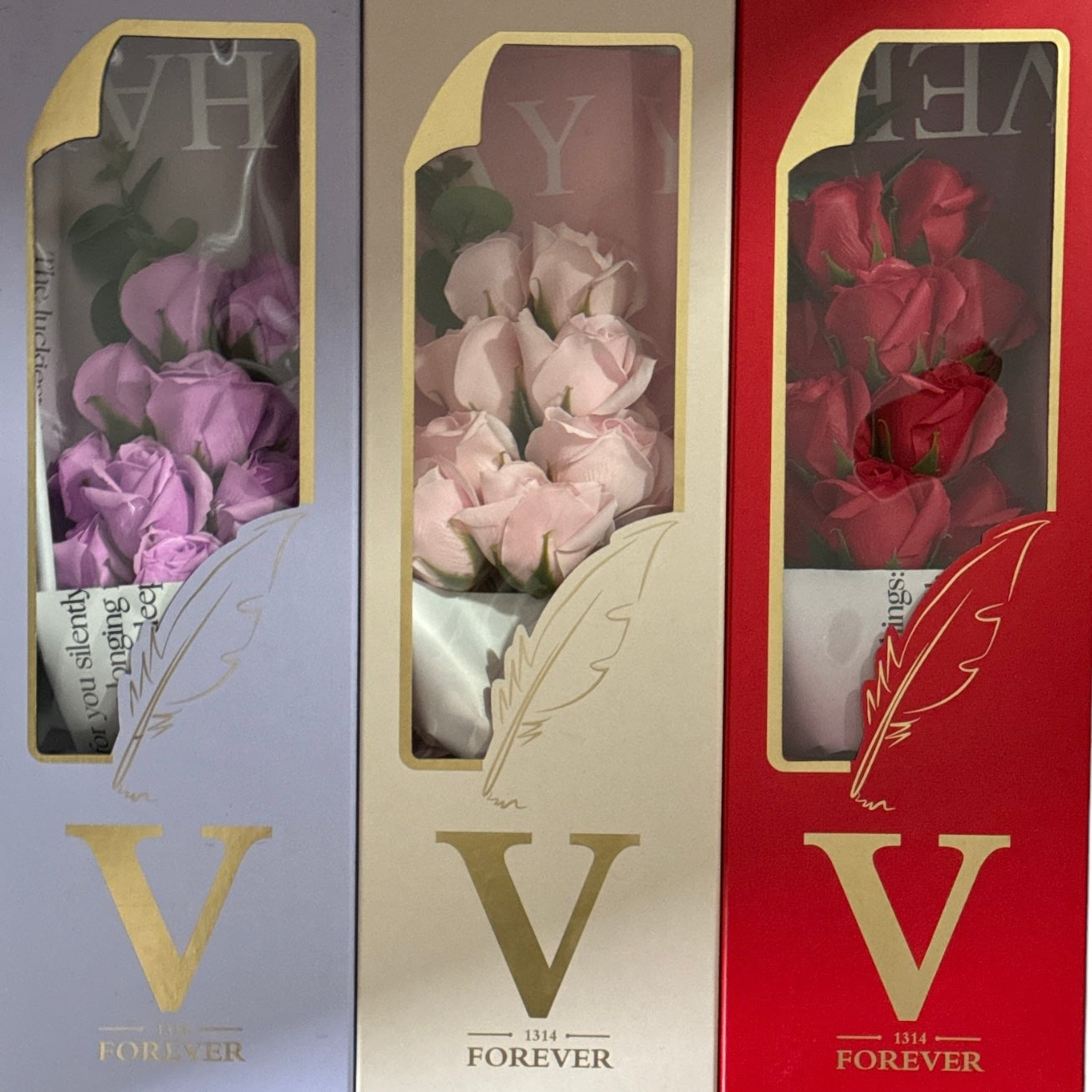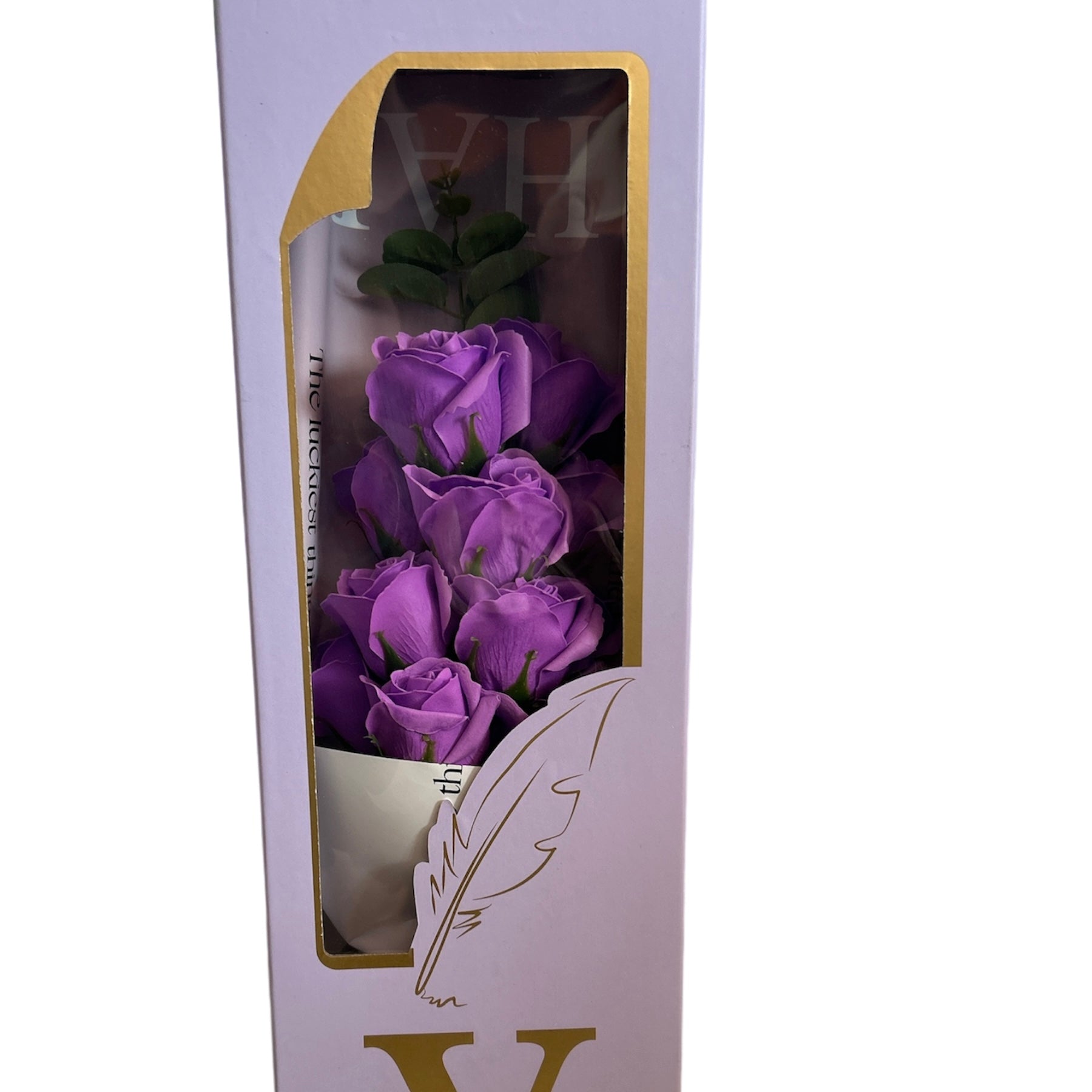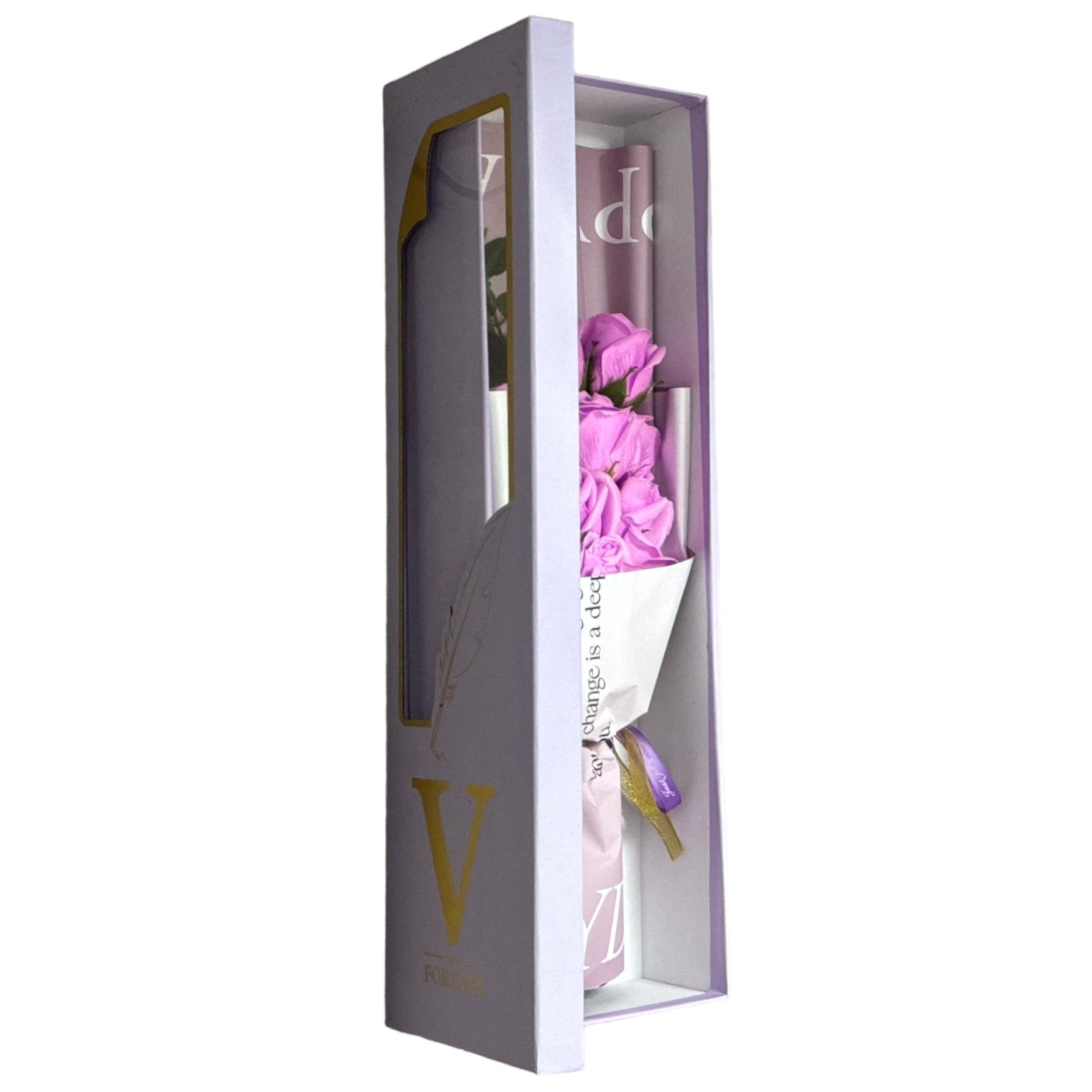 Vă oferim un buchet de trandafiri de săpun potrivit pentru orice colț din casă,care o să vă aducă o atmosferă de neuitat. Acest buchet de flori poate fi oferit cadou persoanelor dragi și vine ambalat într-o cutie elegantă din carton lucios și acetofan.