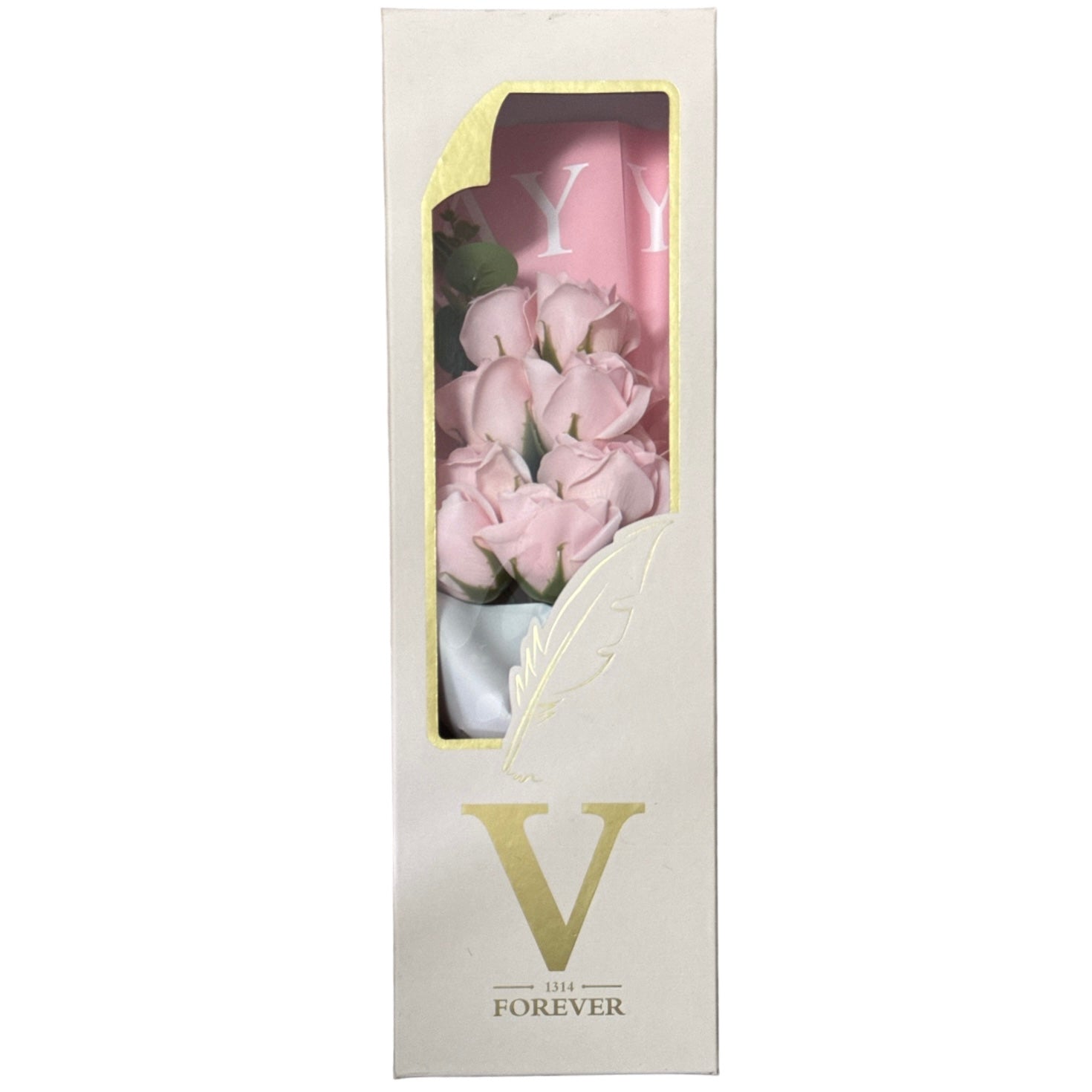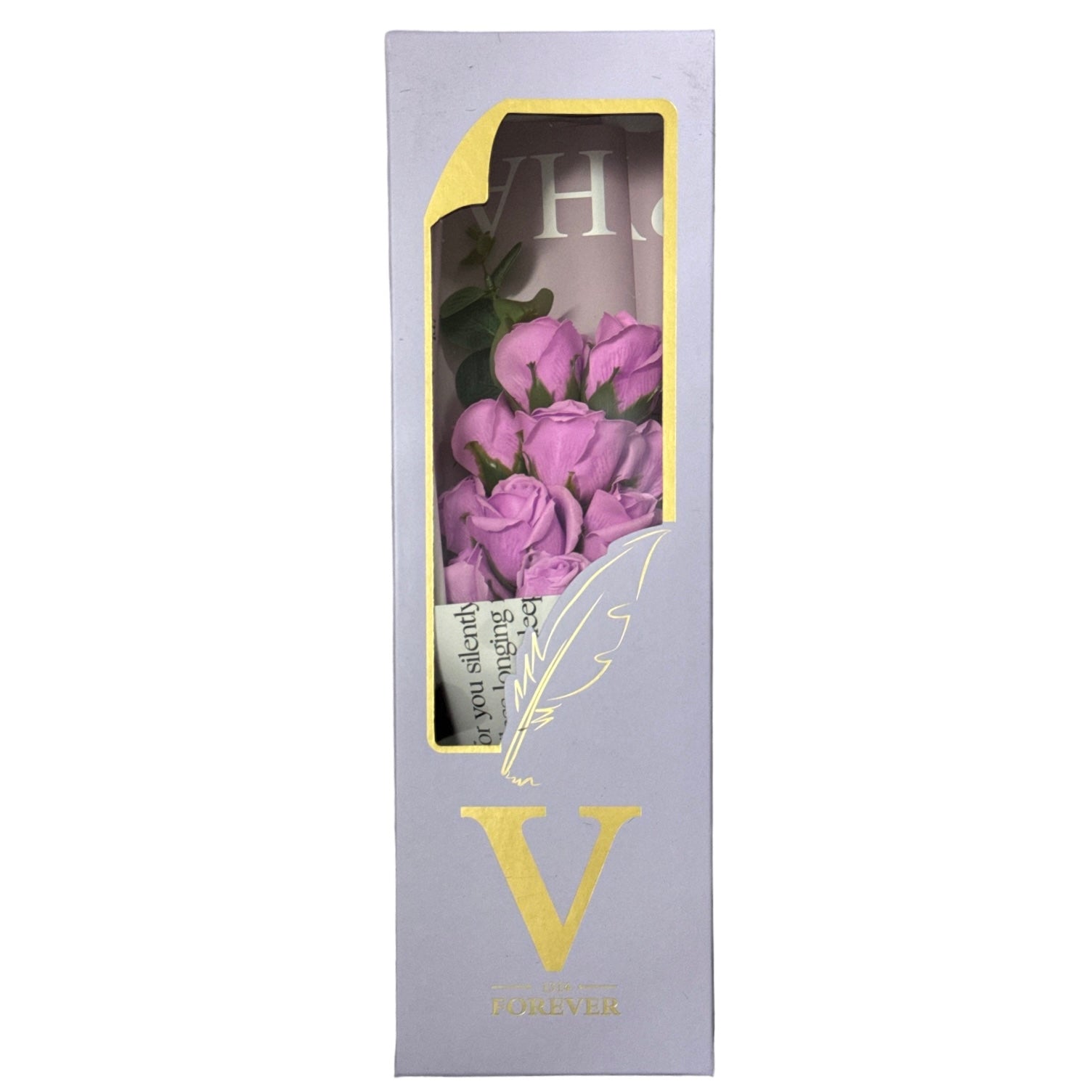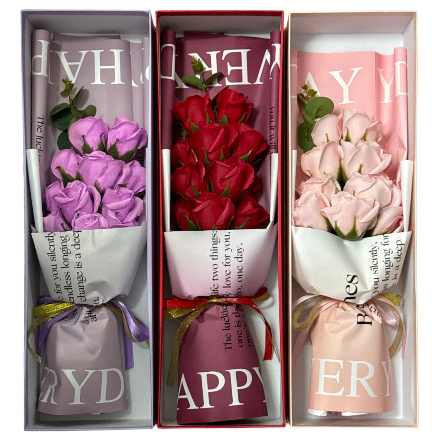 Vă oferim un buchet de trandafiri de săpun potrivit pentru orice colț din casă,care o să vă aducă o atmosferă de neuitat. Acest buchet de flori poate fi oferit cadou persoanelor dragi și vine ambalat într-o cutie elegantă din carton lucios și acetofan.