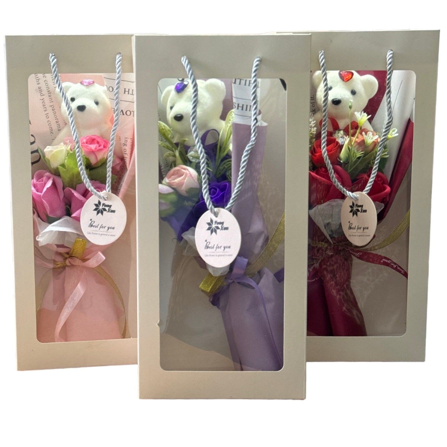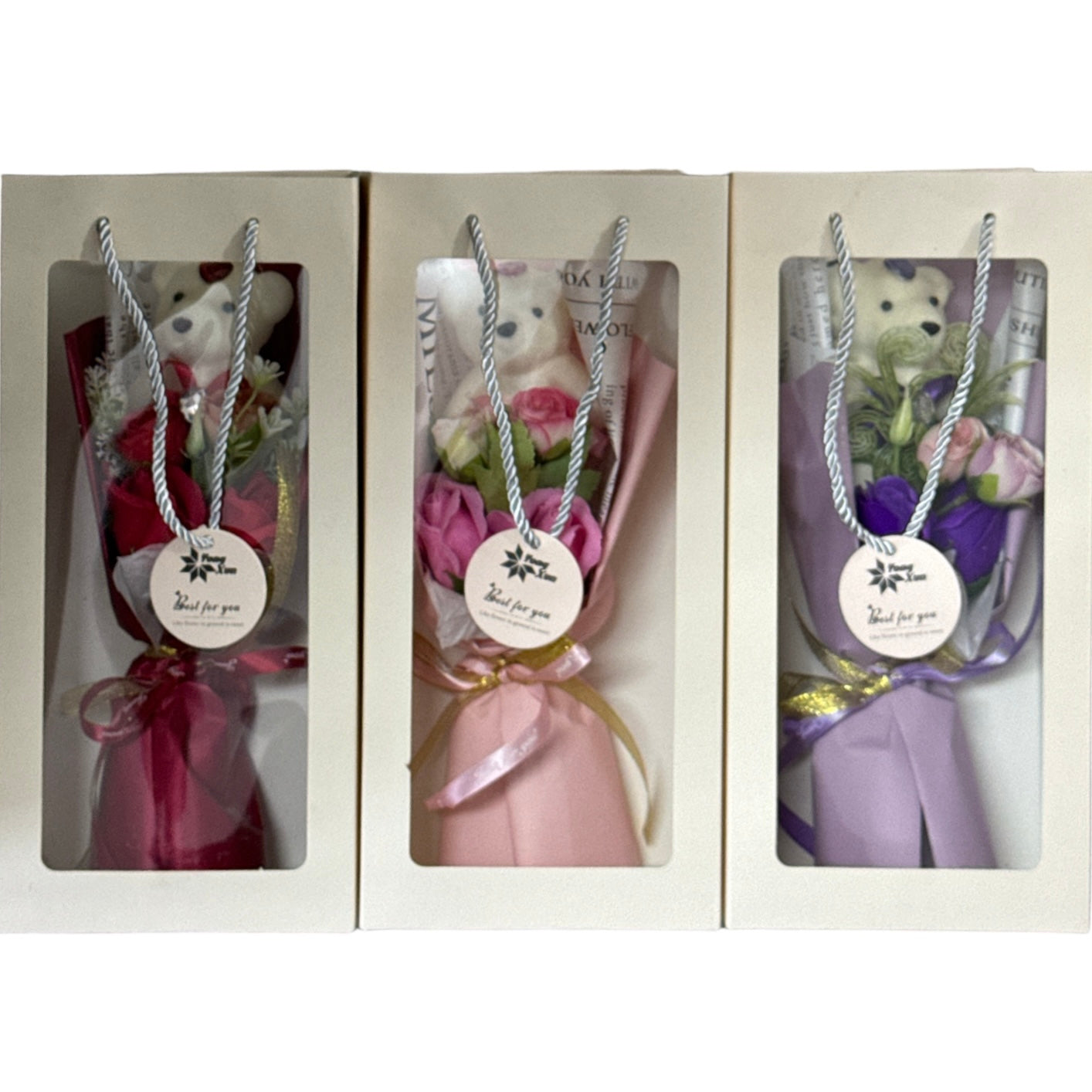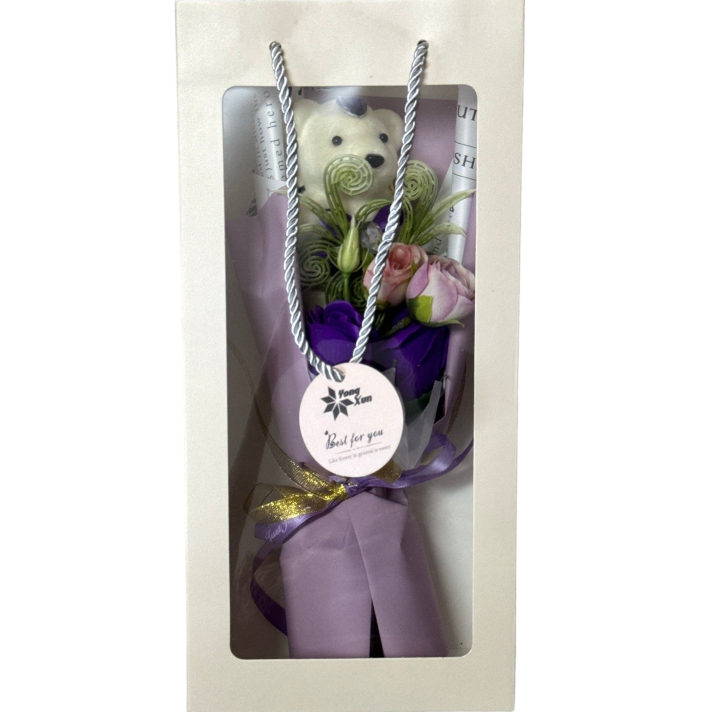 Vă oferim un buchet de trandafiri de săpun potrivit pentru orice colț din casă,care o să vă aducă o atmosferă de neuitat. Acest buchet de flori poate fi oferit cadou persoanelor dragi și vine ambalat într-o pungă elegantă din carton lucios și acetofan