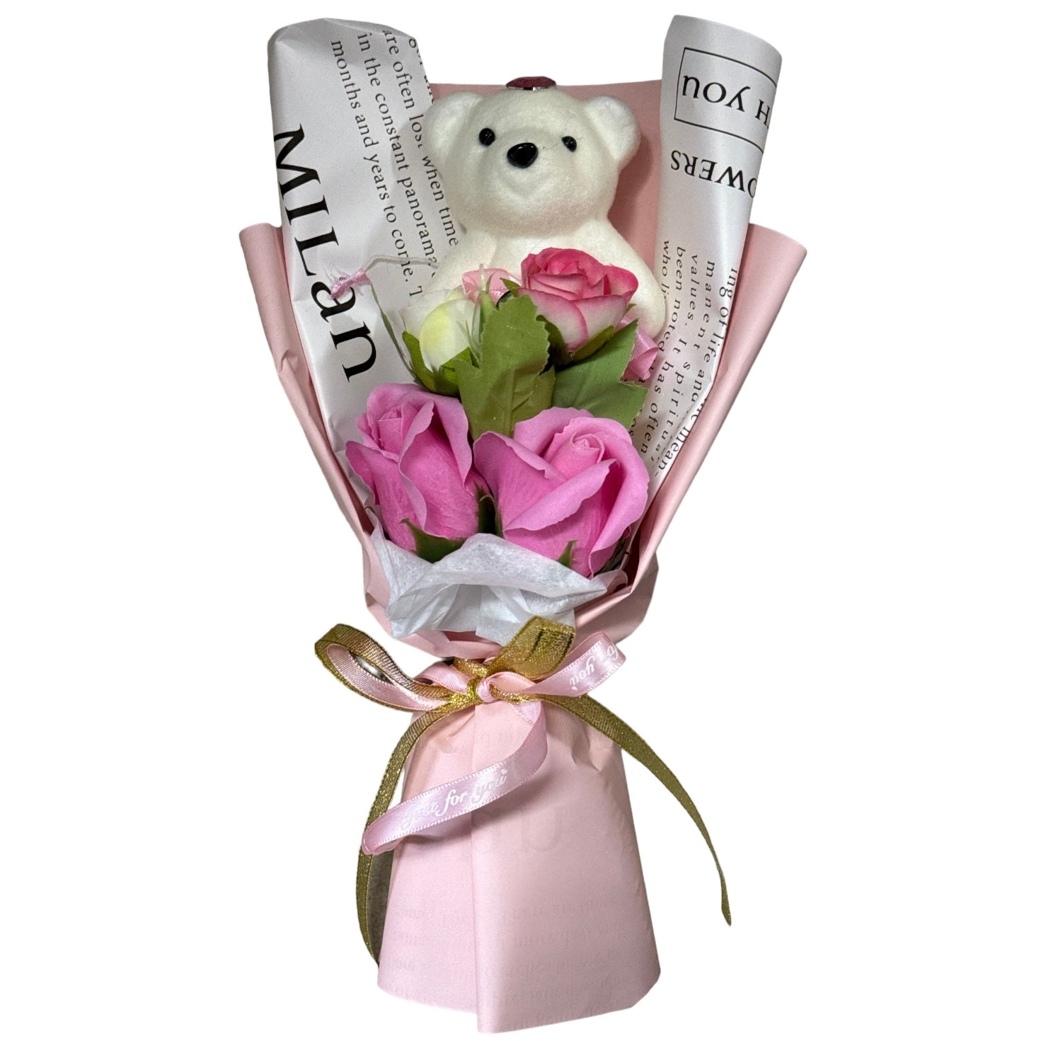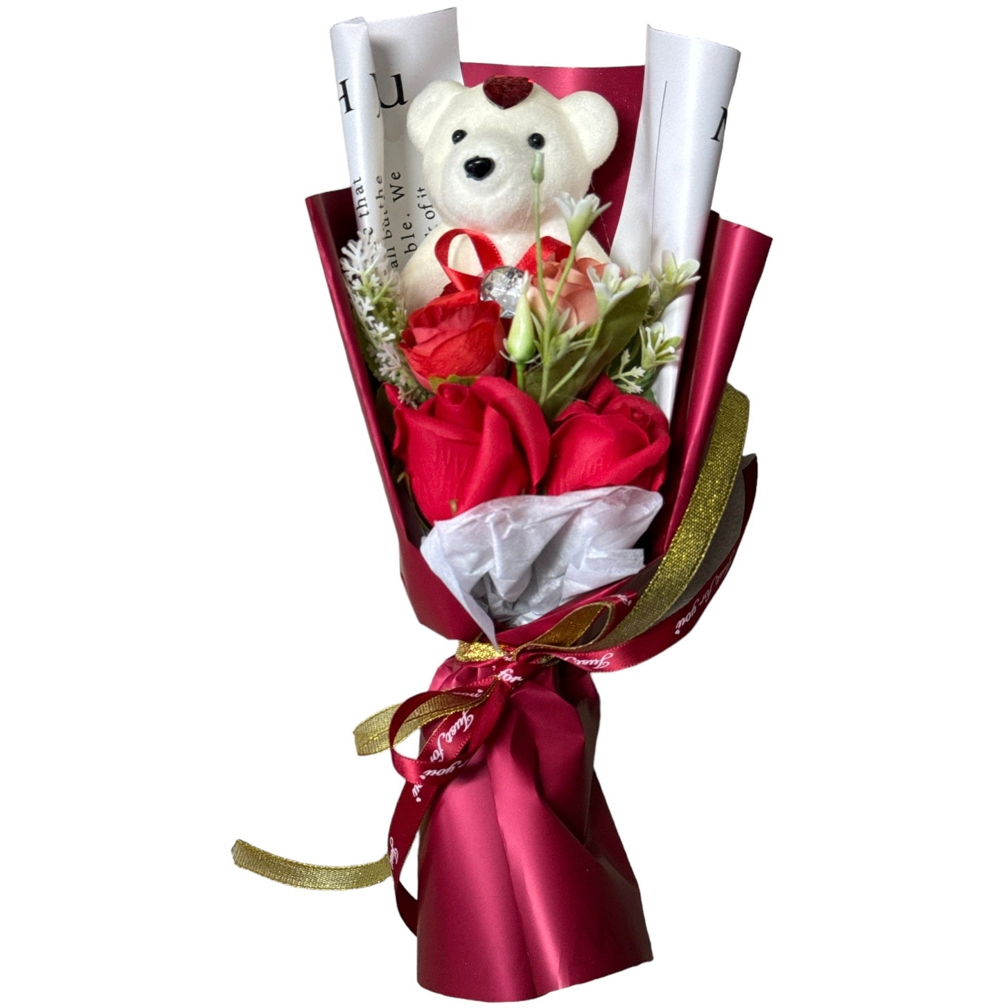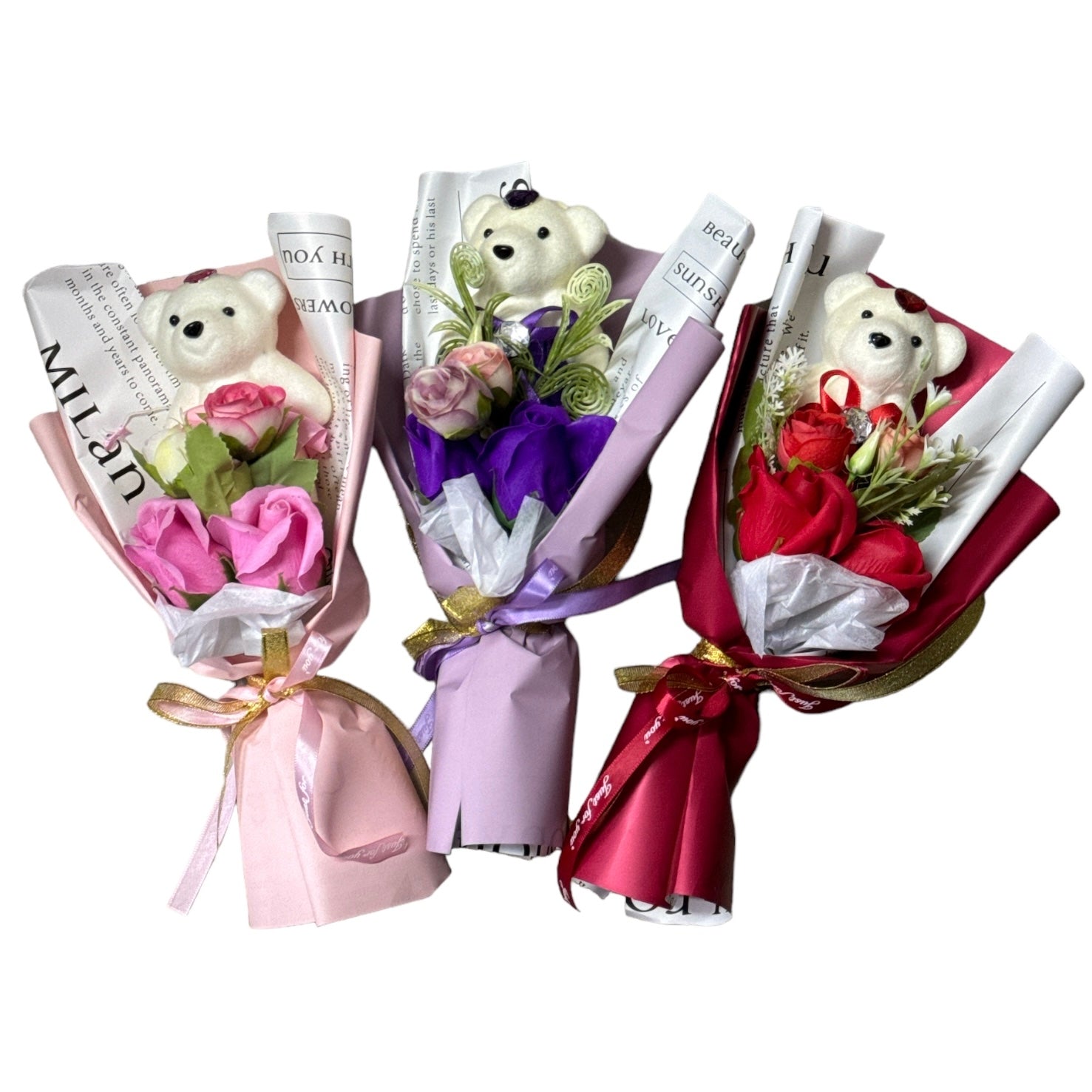Vă oferim un buchet de trandafiri de săpun potrivit pentru orice colț din casă,care o să vă aducă o atmosferă de neuitat. Acest buchet de flori poate fi oferit cadou persoanelor dragi și vine ambalat într-o pungă elegantă din carton lucios și acetofan