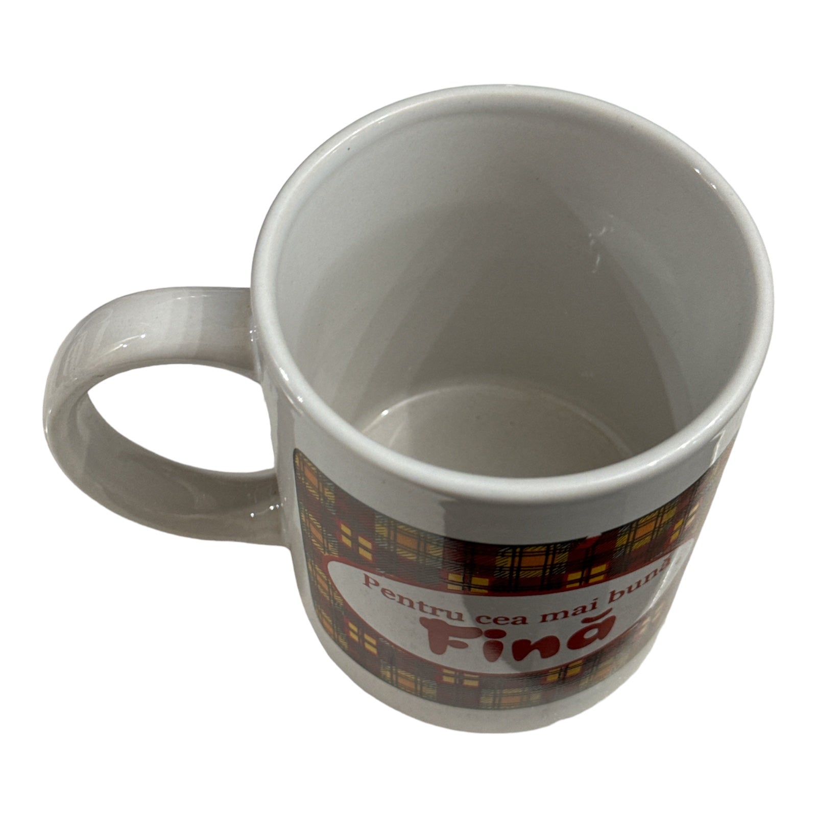 Această cană intensifică plăcerea de a-ți bea cafeaua în fiecare dimineață sau poate fi un cadou deosebit pentru o persoană dragă sau orice rudă apropiată fiind personalizată cu mesajul “ Pentru cea mai bună….. “