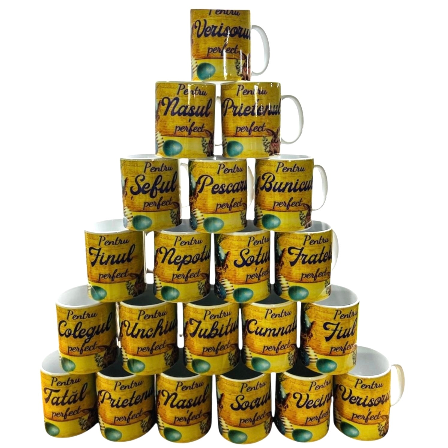 Această cană intensifică plăcerea de a-ți bea cafeaua în fiecare dimineață sau poate fi un cadou deosebit pentru o persoană dragă sau orice rudă apropiată fiind personalizată cu mesajul “ Pentru …..Perfect “