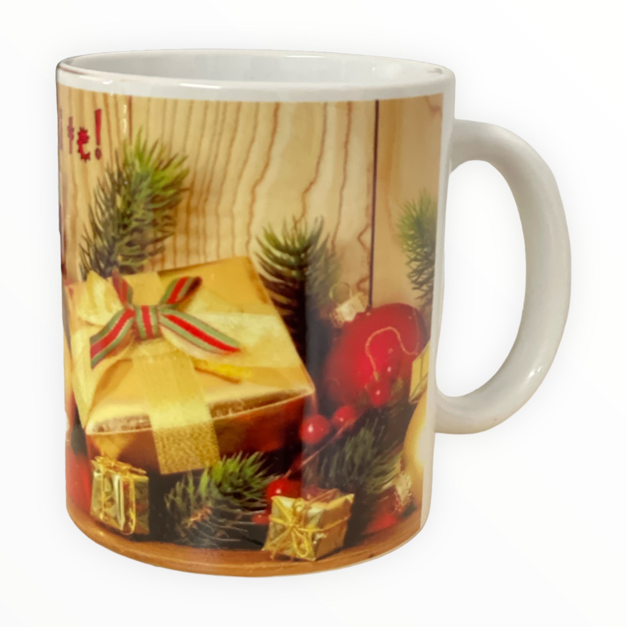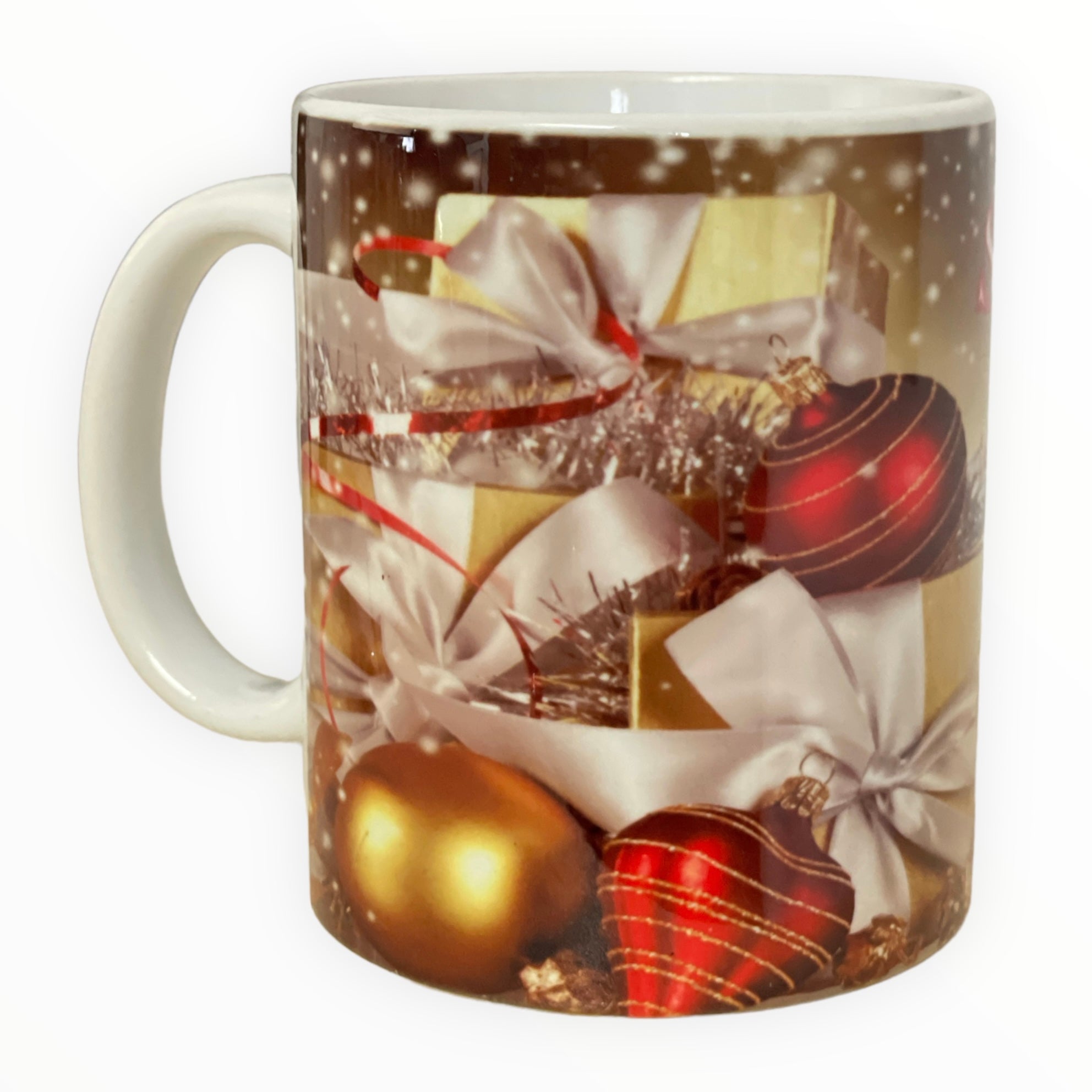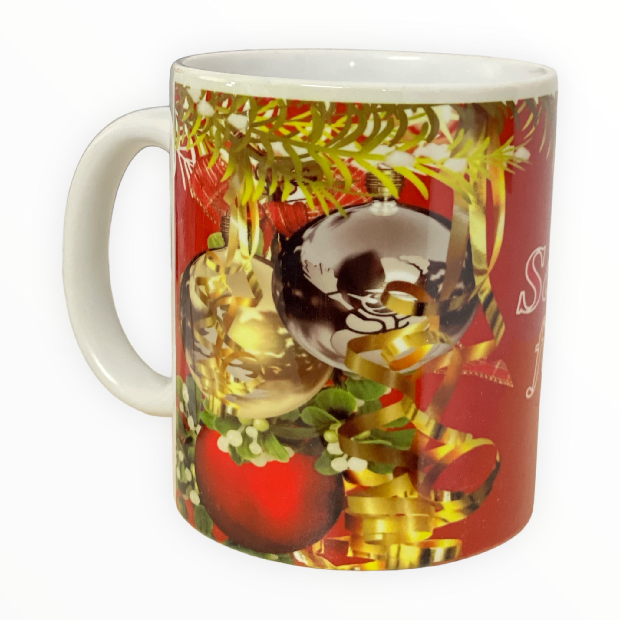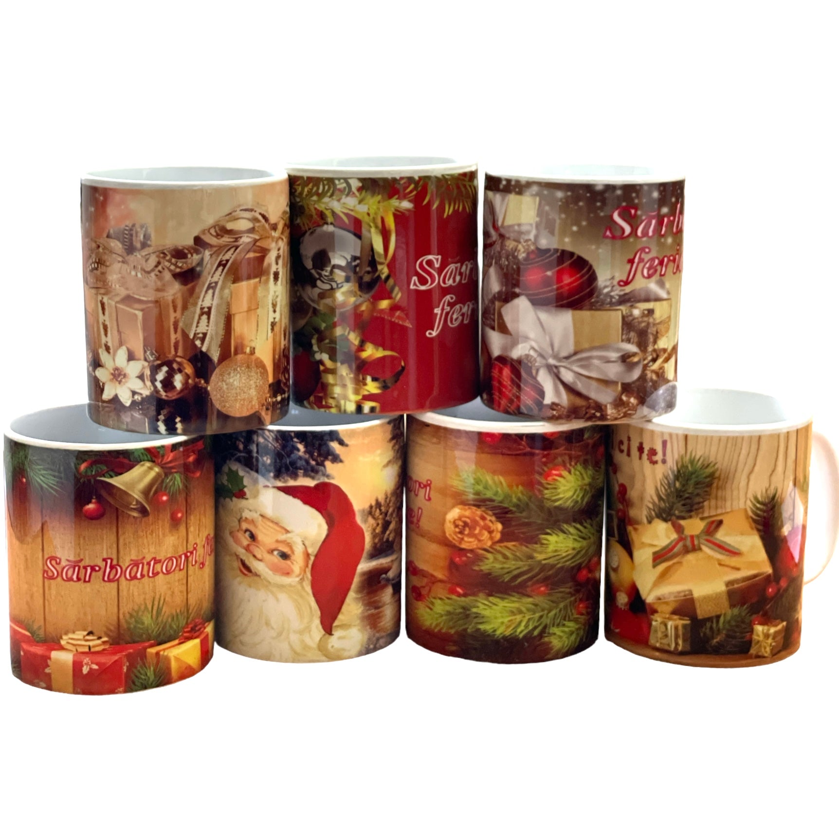 Aceasta cană intensifică plăcerea de a-ți bea cafeaua în fiecare dimineață sau poate fi un cadou deosebit pentru o persoană dragă sau orice rudă apropiată fiind personalizată cu mesajul “ Sărbători fericite !”