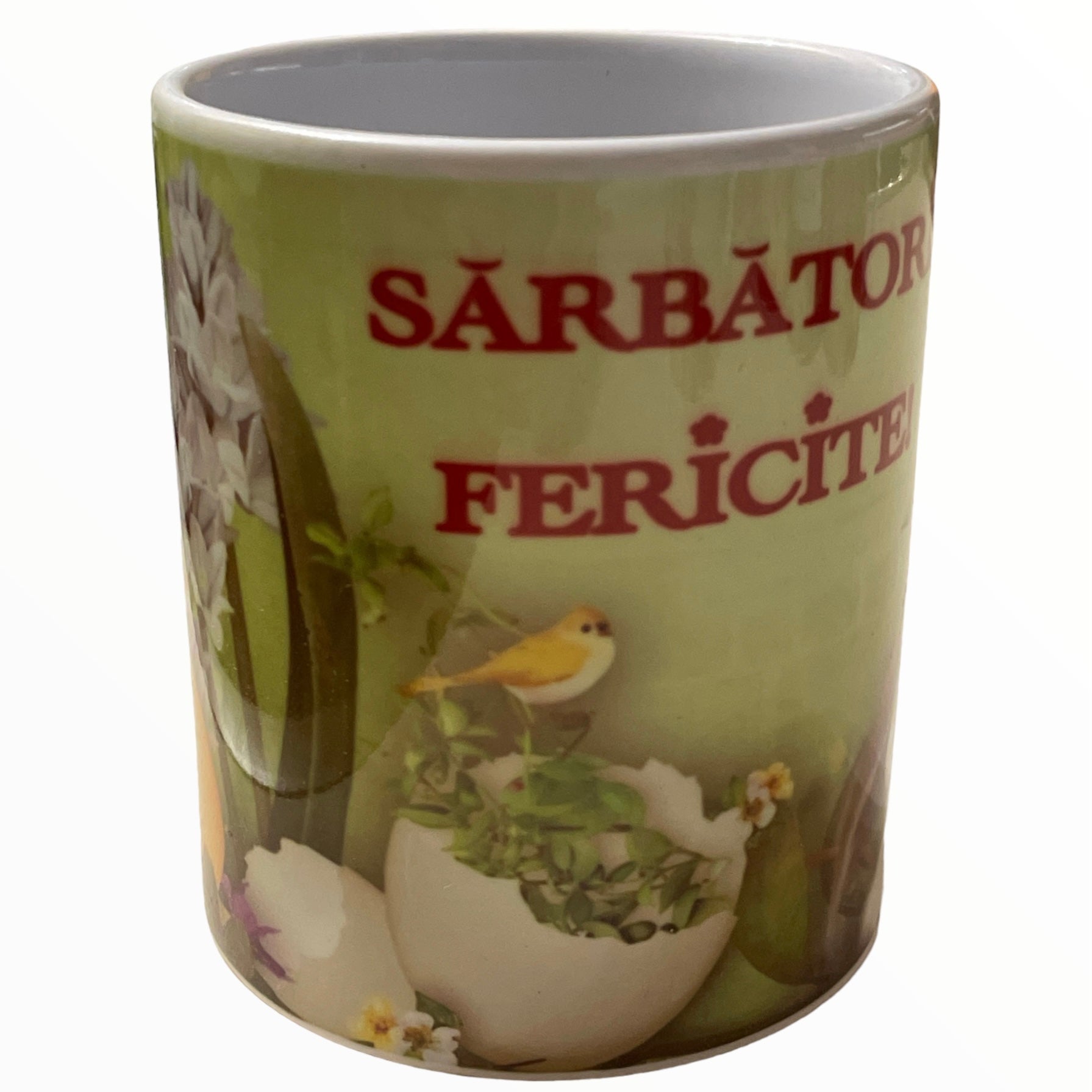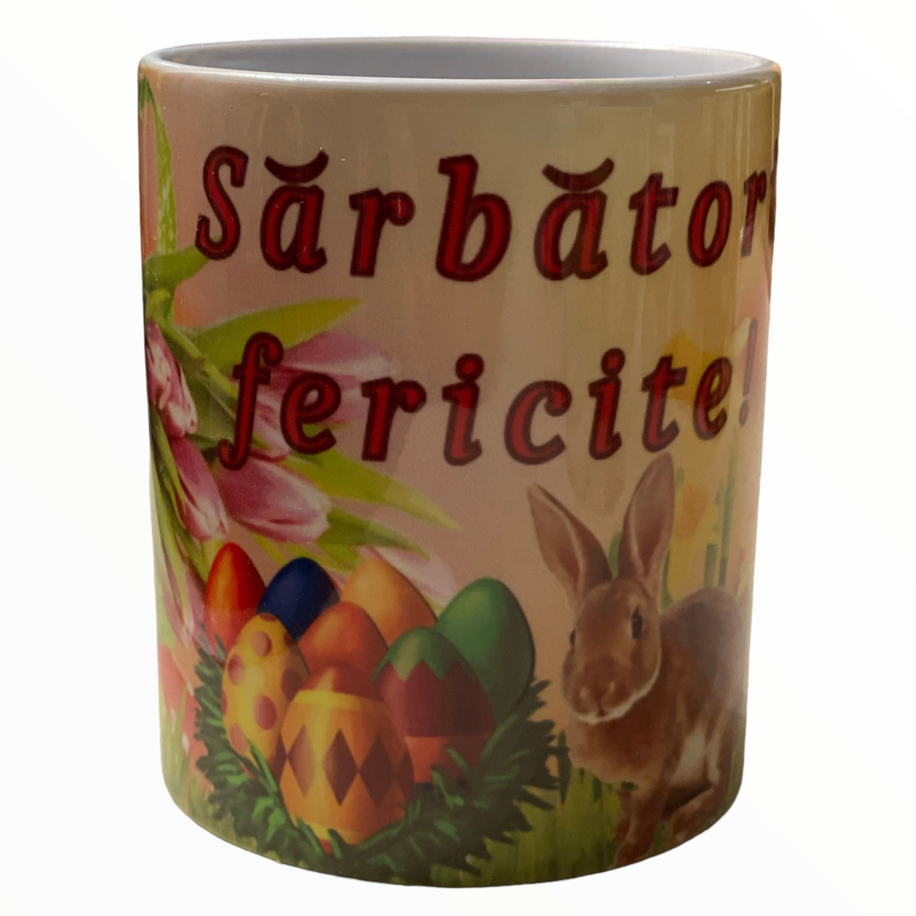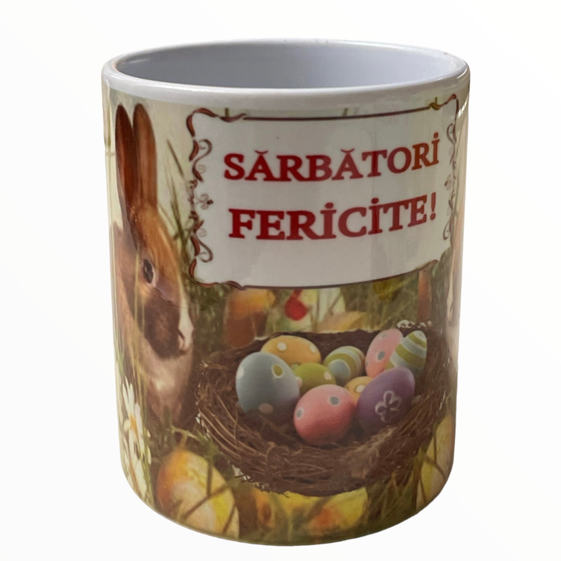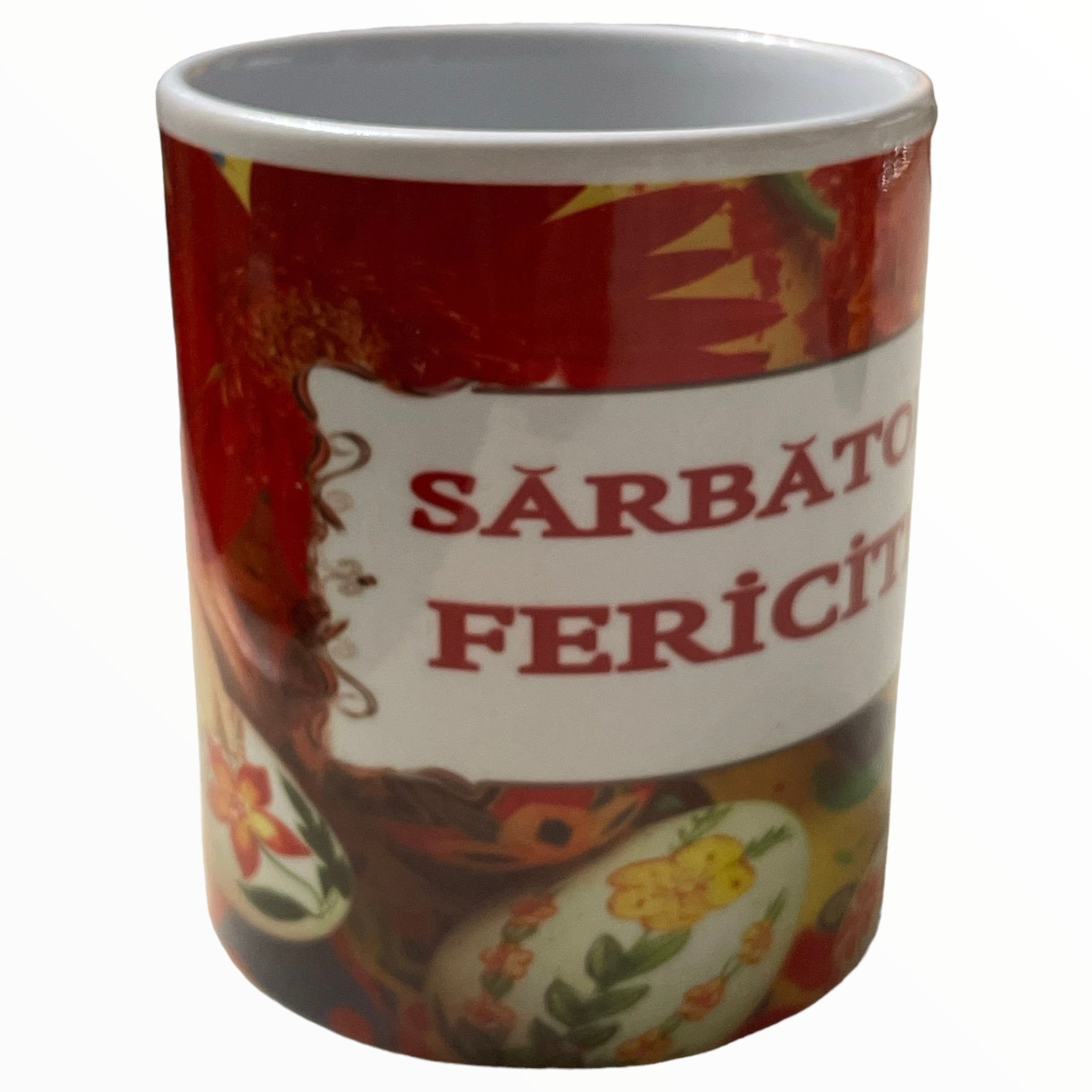 Aceasta cană intensifică plăcerea de a-ți bea cafeaua în fiecare dimineață sau poate fi un cadou deosebit pentru o persoană dragă sau orice rudă apropiată fiind personalizată cu mesajul “ Sărbători fericite !”
