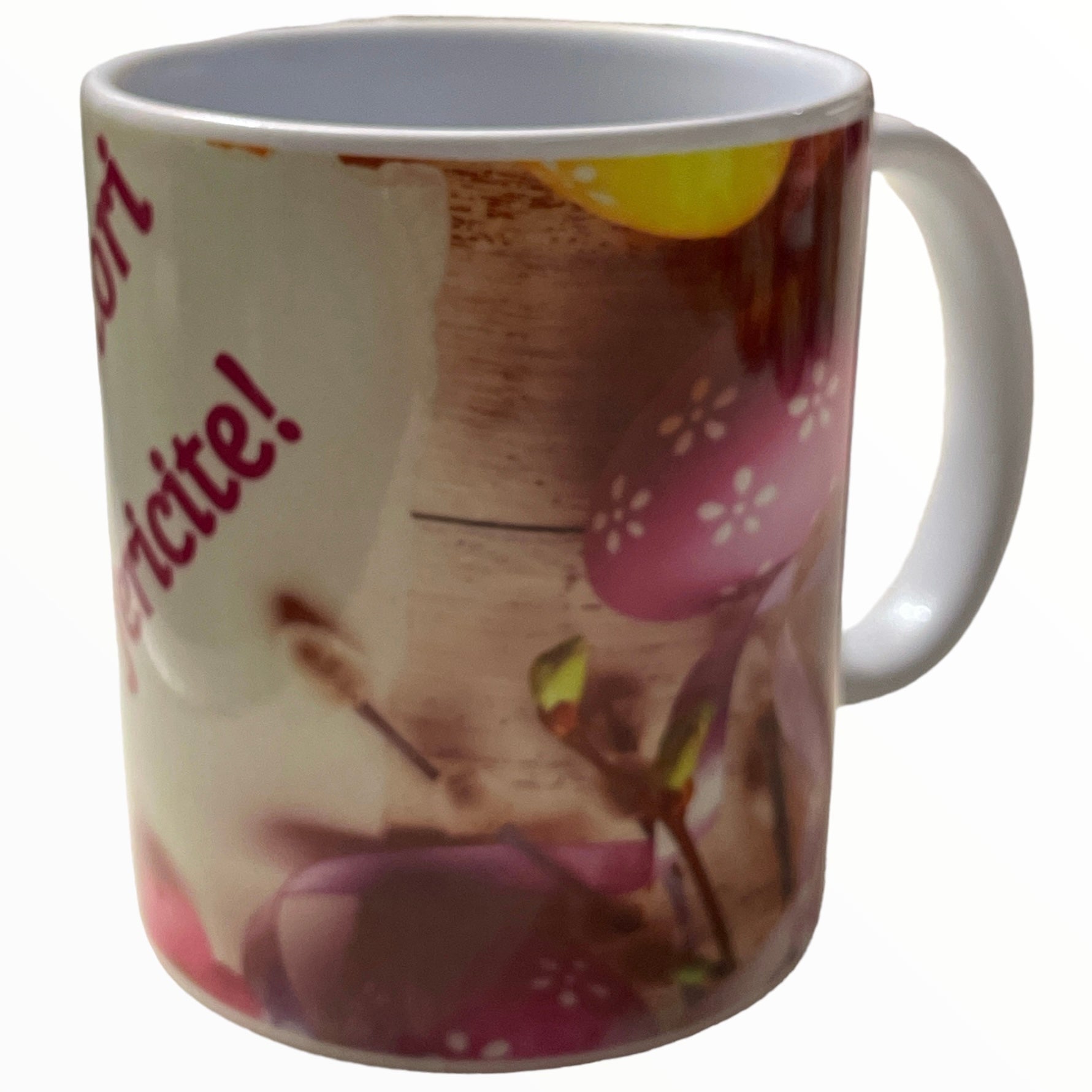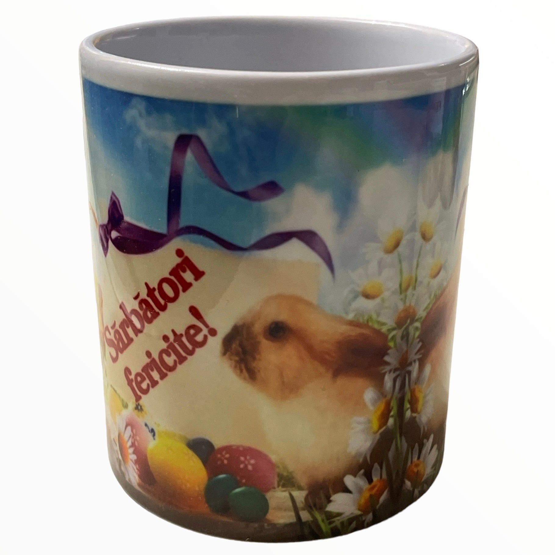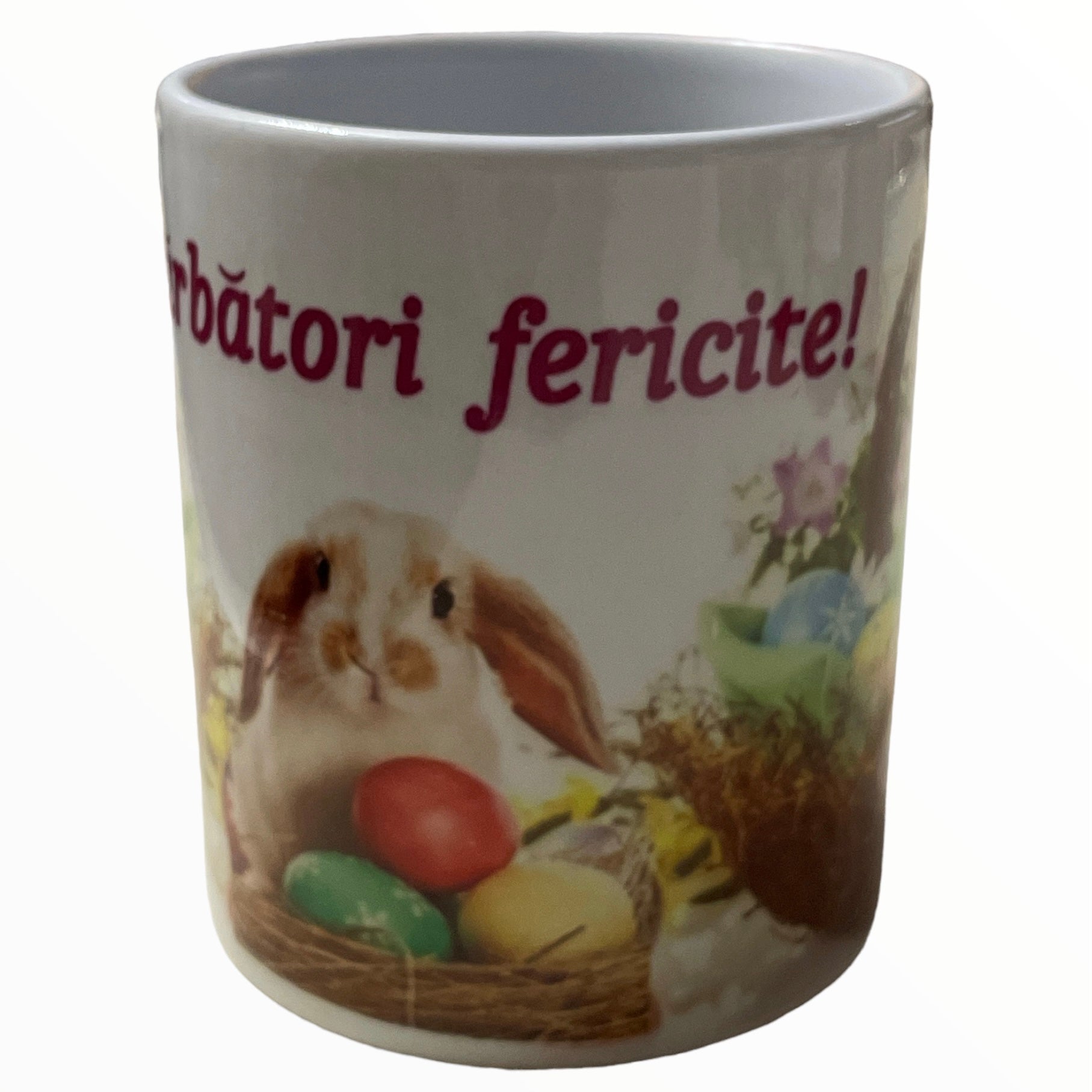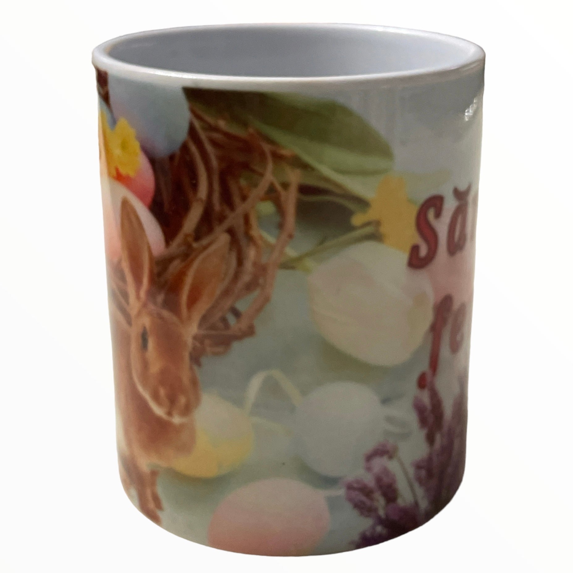 Aceasta cană intensifică plăcerea de a-ți bea cafeaua în fiecare dimineață sau poate fi un cadou deosebit pentru o persoană dragă sau orice rudă apropiată fiind personalizată cu mesajul “ Sărbători fericite !”