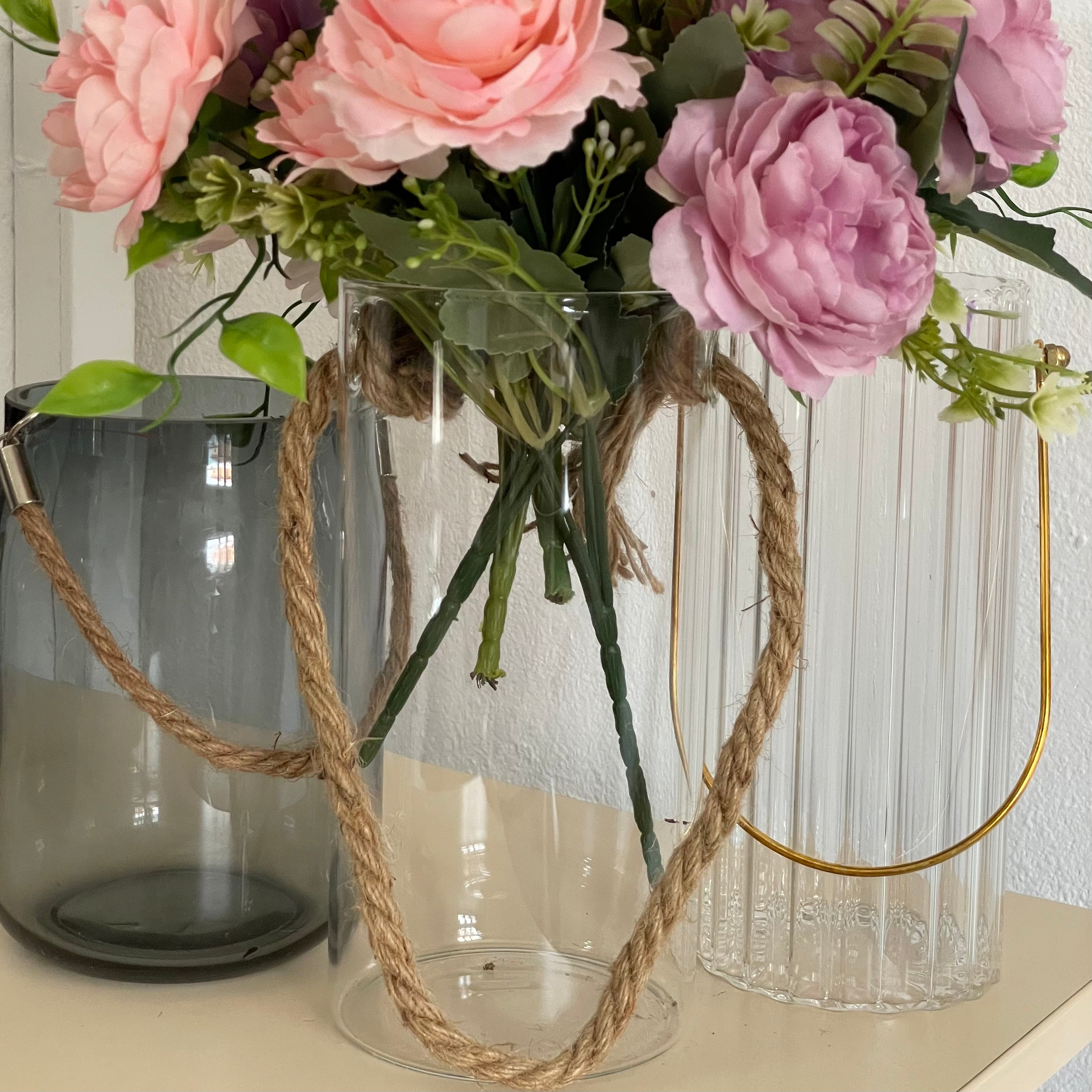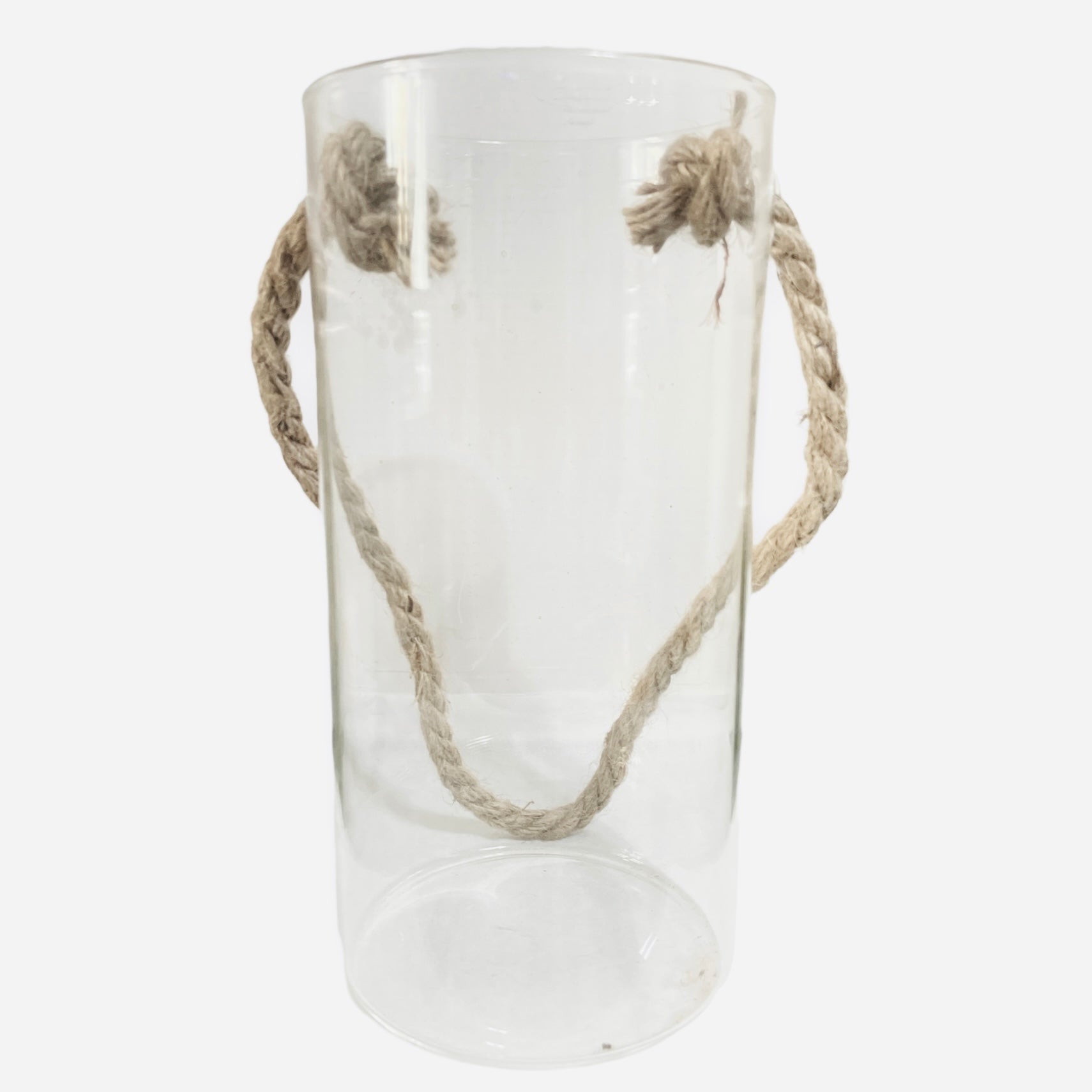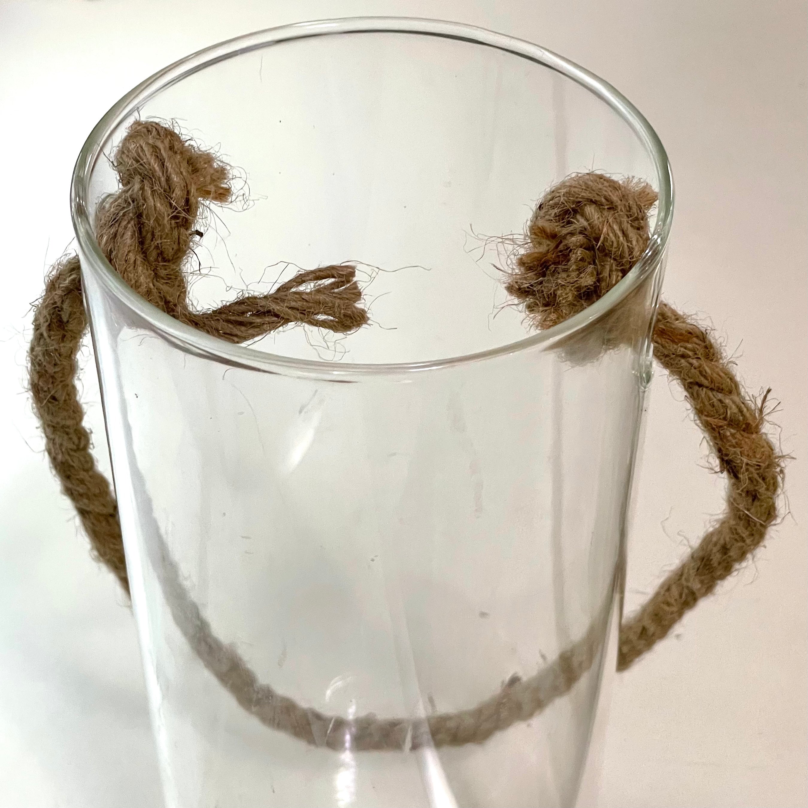 Vasul are agățătoare din sfoară și poate fi atârnat,fiind fabricat din sticlă poate prezenta mici imperfecțiuni de turnare.