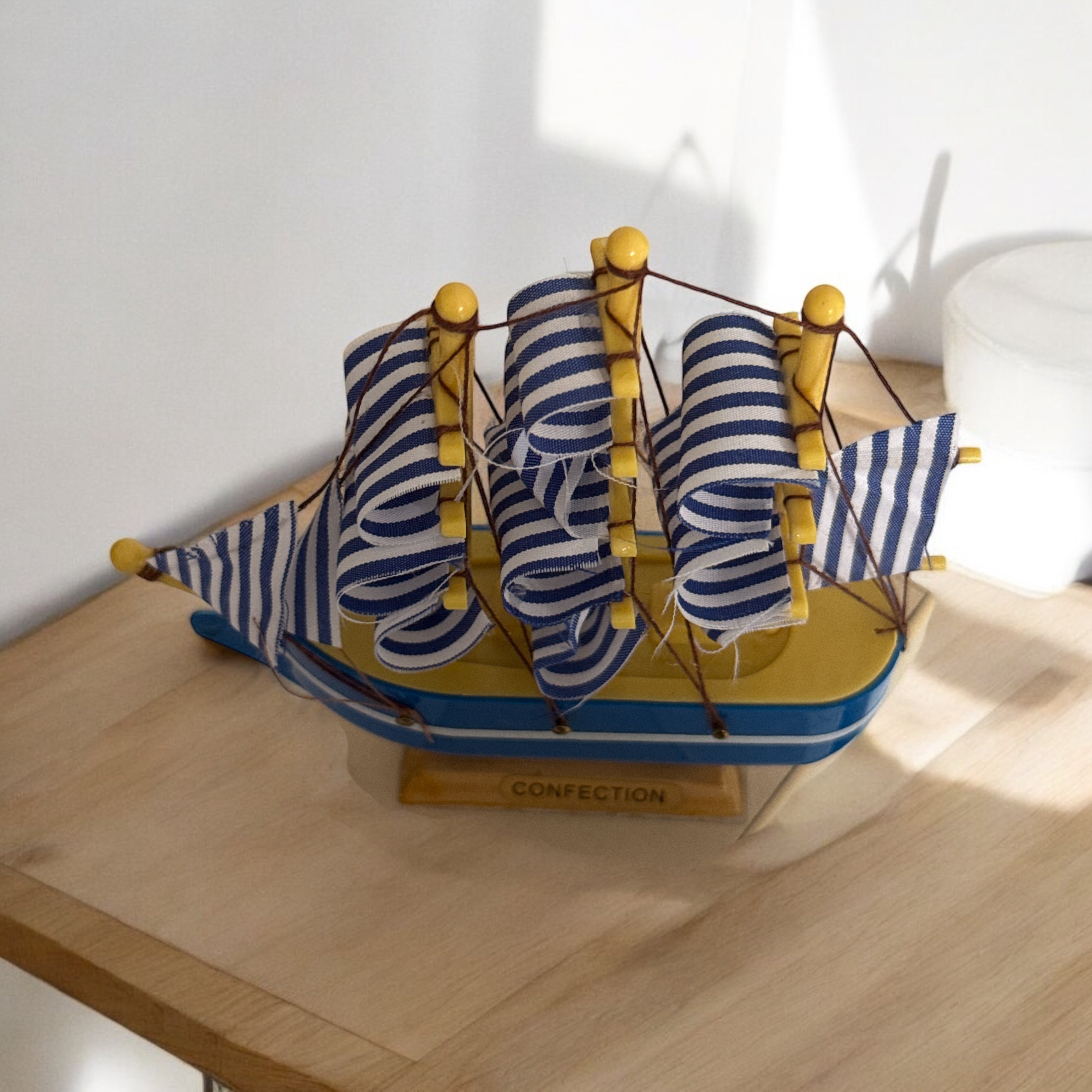Adăugați o notă de aventură și eleganță decorului dvs. cu acest model de navă cu pânze. Realizat cu grijă și detalii rafinate, acest model reprezintă o reproducere fidelă a unei nave clasice, aducând un aer nostalgic și sofisticat în orice încăpere.