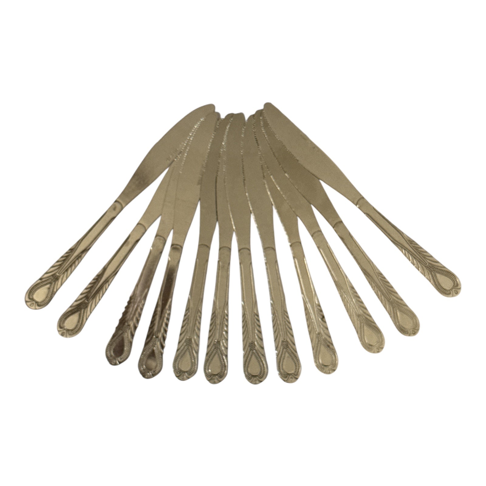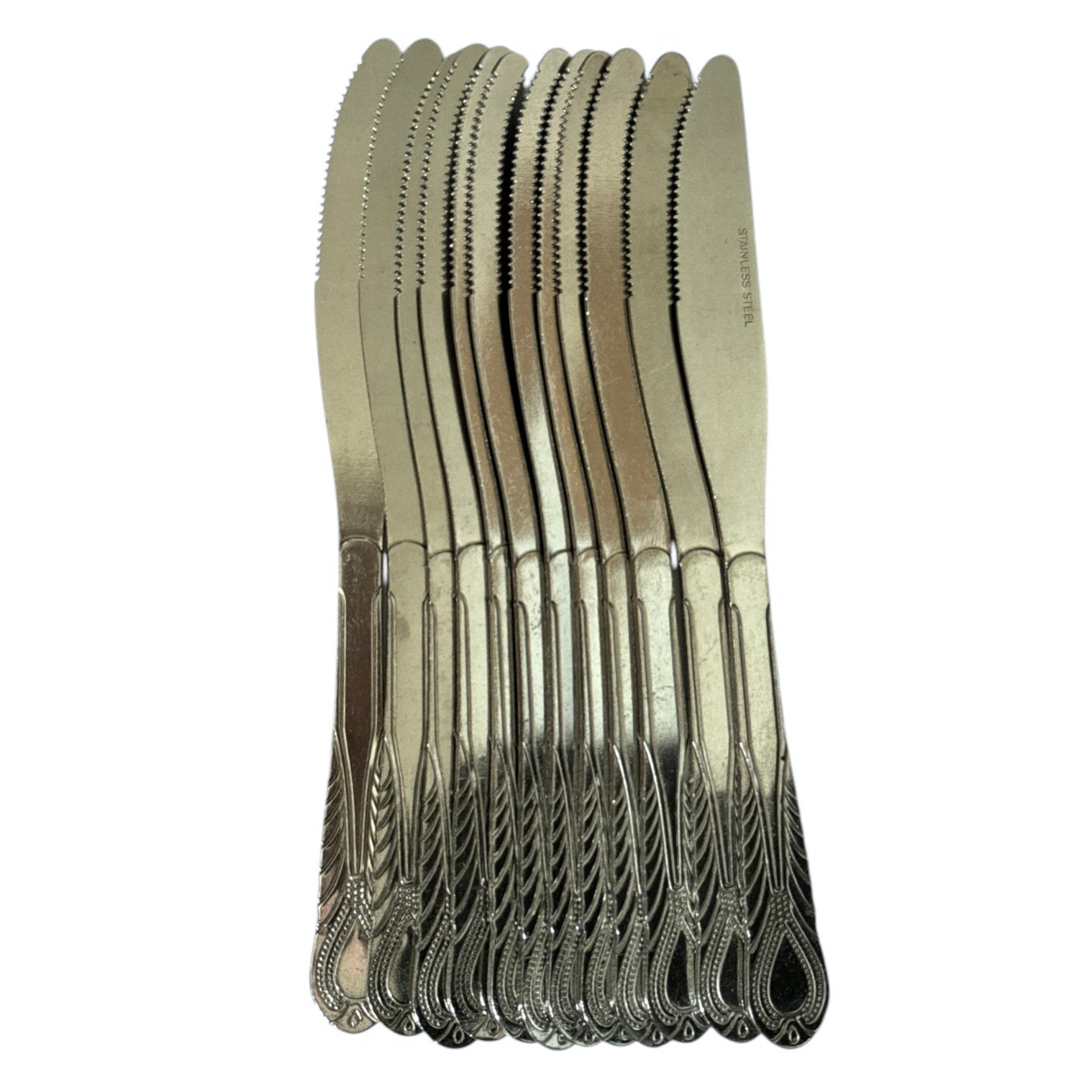 Completează-ți vesela de zi cu zi cu acest set de 12 cuțite din oțel inoxidabil, potrivite pentru orice masă. Fie că le folosești pentru prânz, cină sau evenimente speciale, cuțitele oferă un design elegant și durabilitate în timp.