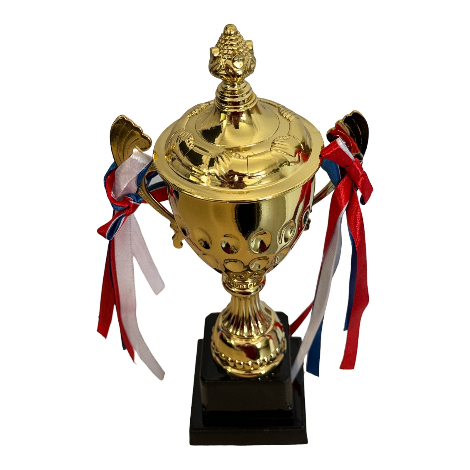 Product form Cupă metal 28cm 28,00 lei 1 in stoc Show extra info for delivery time Adauga in cos This item is a recurring or deferred purchase. By continuing, I agree to the cancellation policy and authorize you to charge my payment method at the prices, frequency and dates listed on this page until my order is fulfilled or I cancel, if permitted. Această cupă este perfectă pentru a marca rezultatele obținute în diverse competiții sau alte evenimente sportive. Performanțele bune merită recompensate cu un trofeu . Cupa este fabricată din metal auriu cu baza maro. Dimensiuni 28 x 14 x 8cm