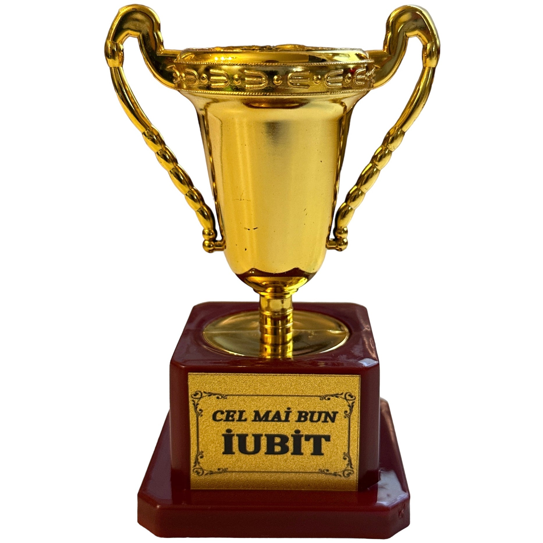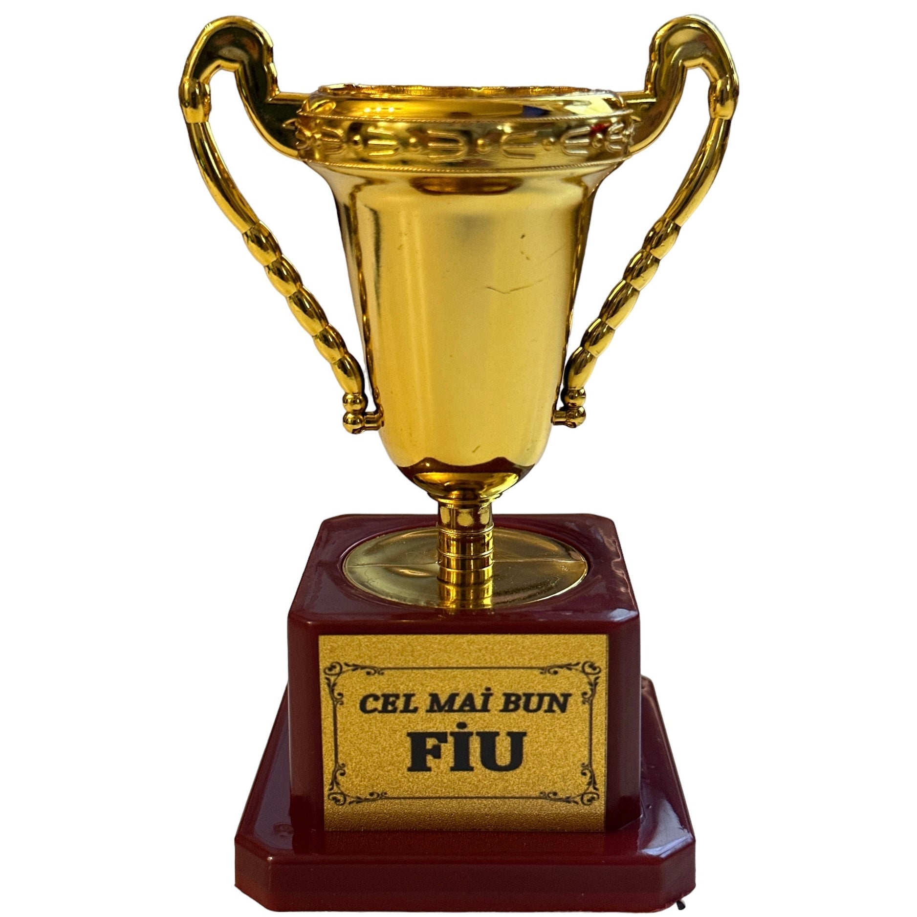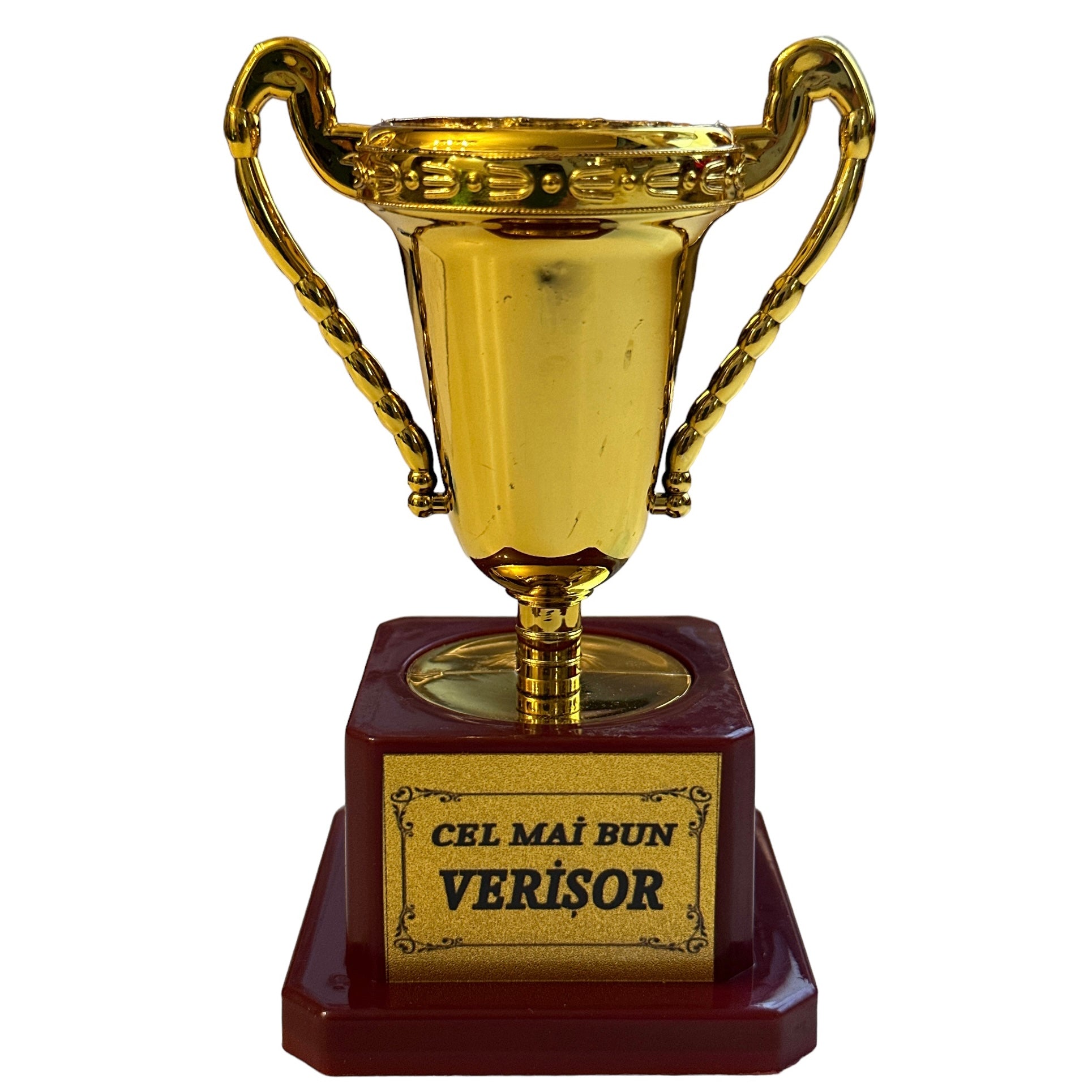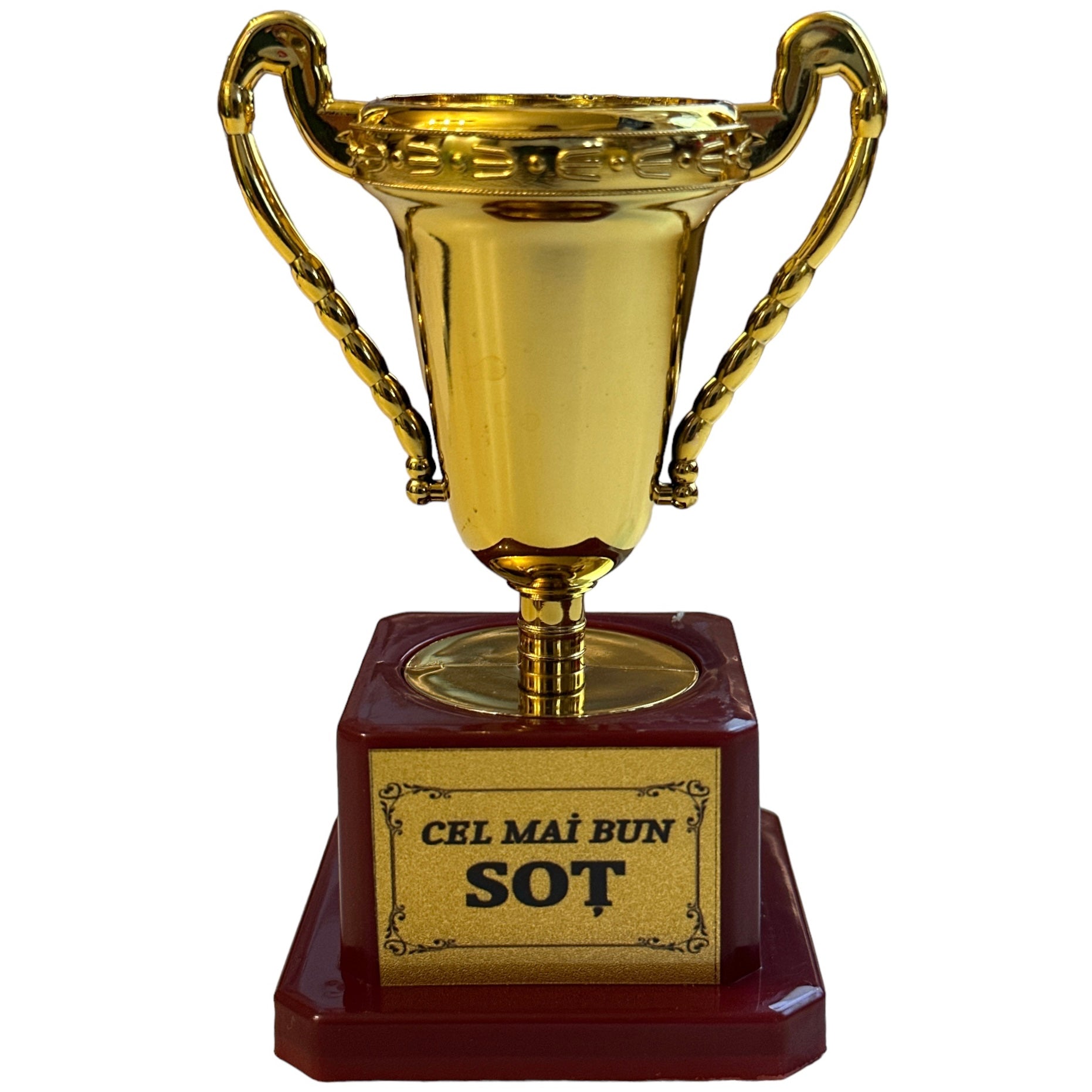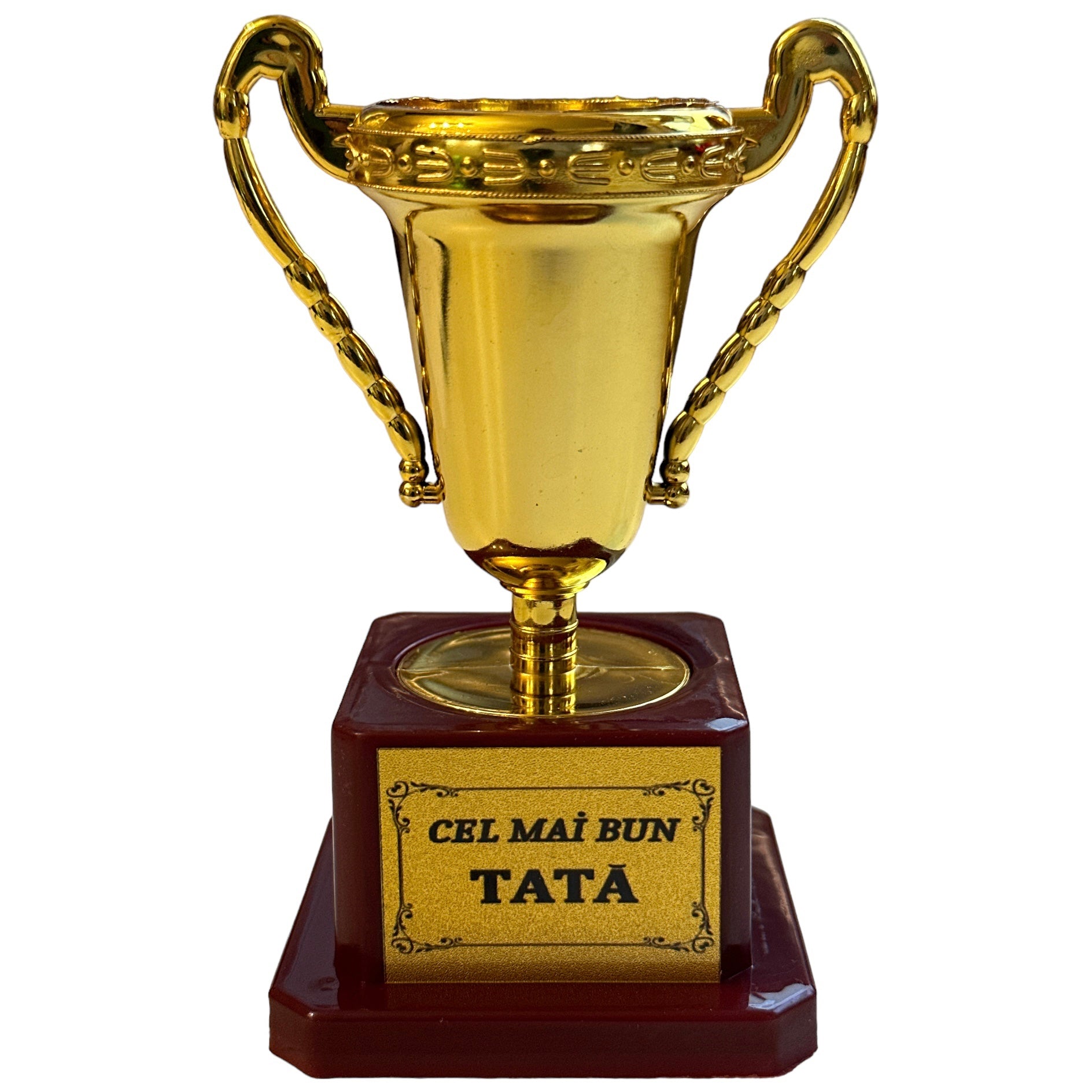 Cupa este fabricată din plastic și este personalizată cu mesajul “ Cel mai bun…..”.