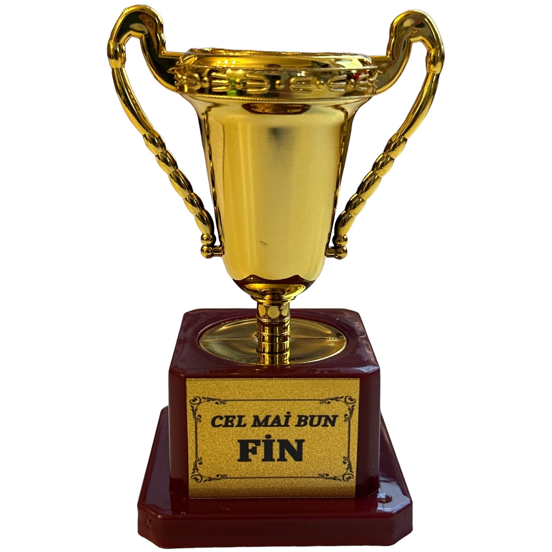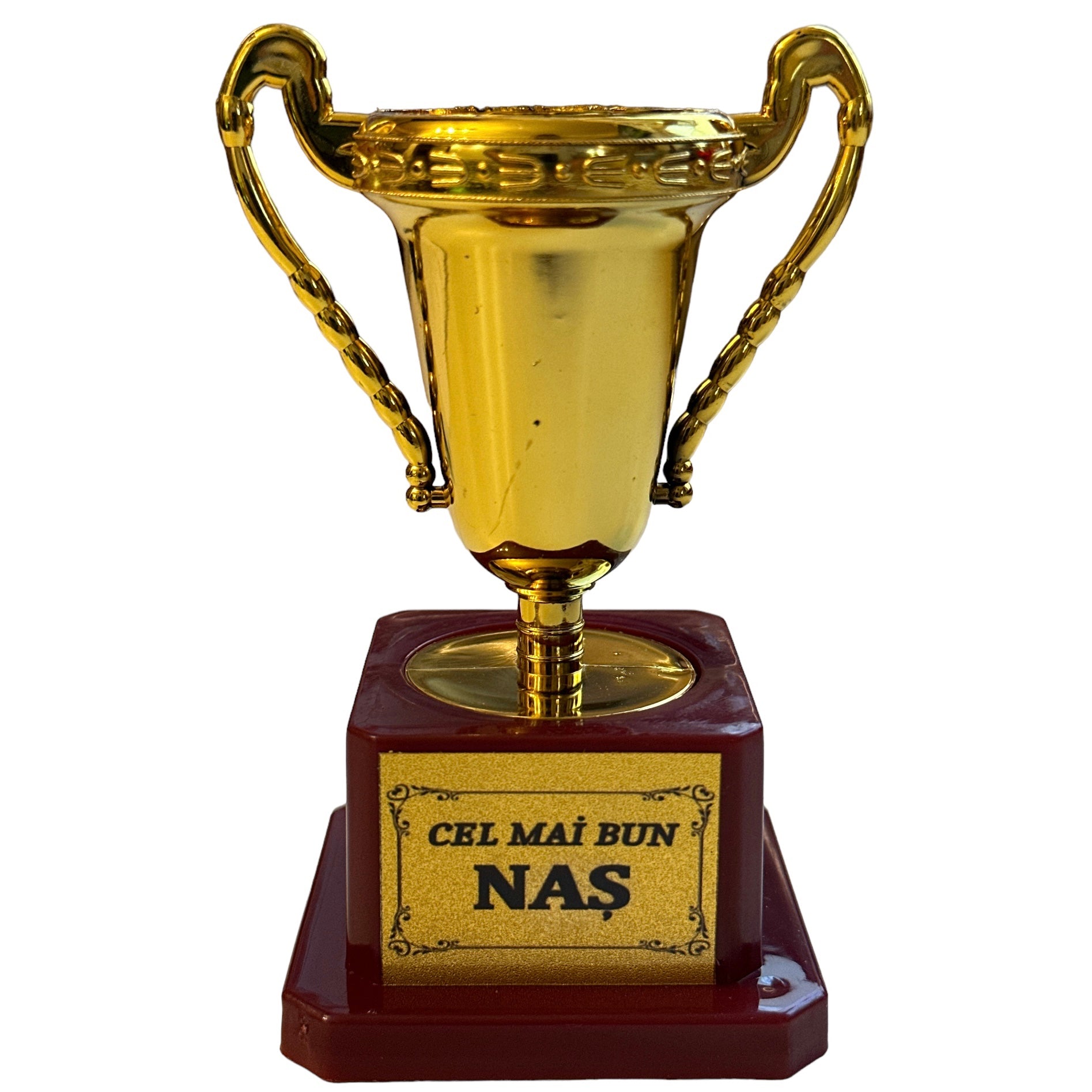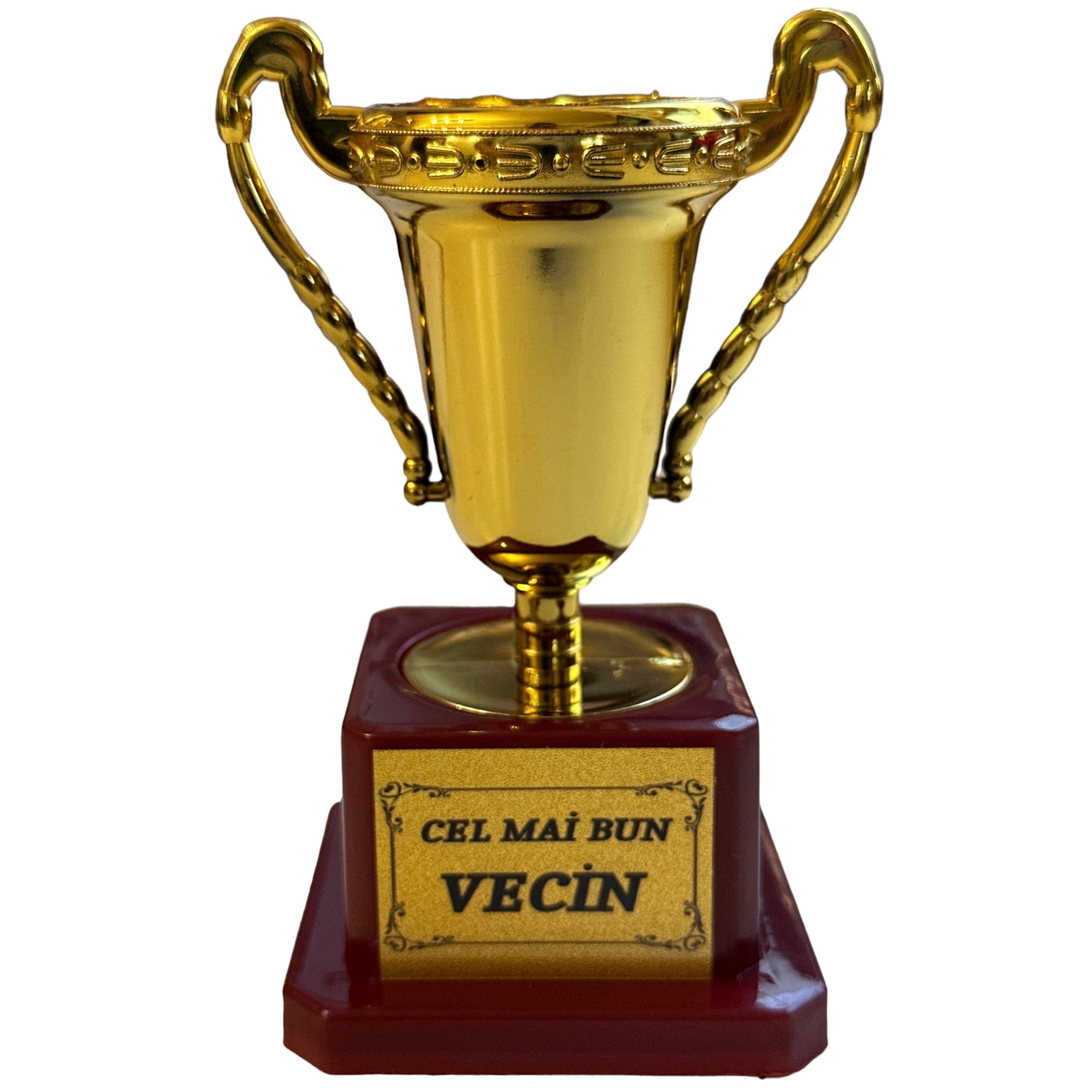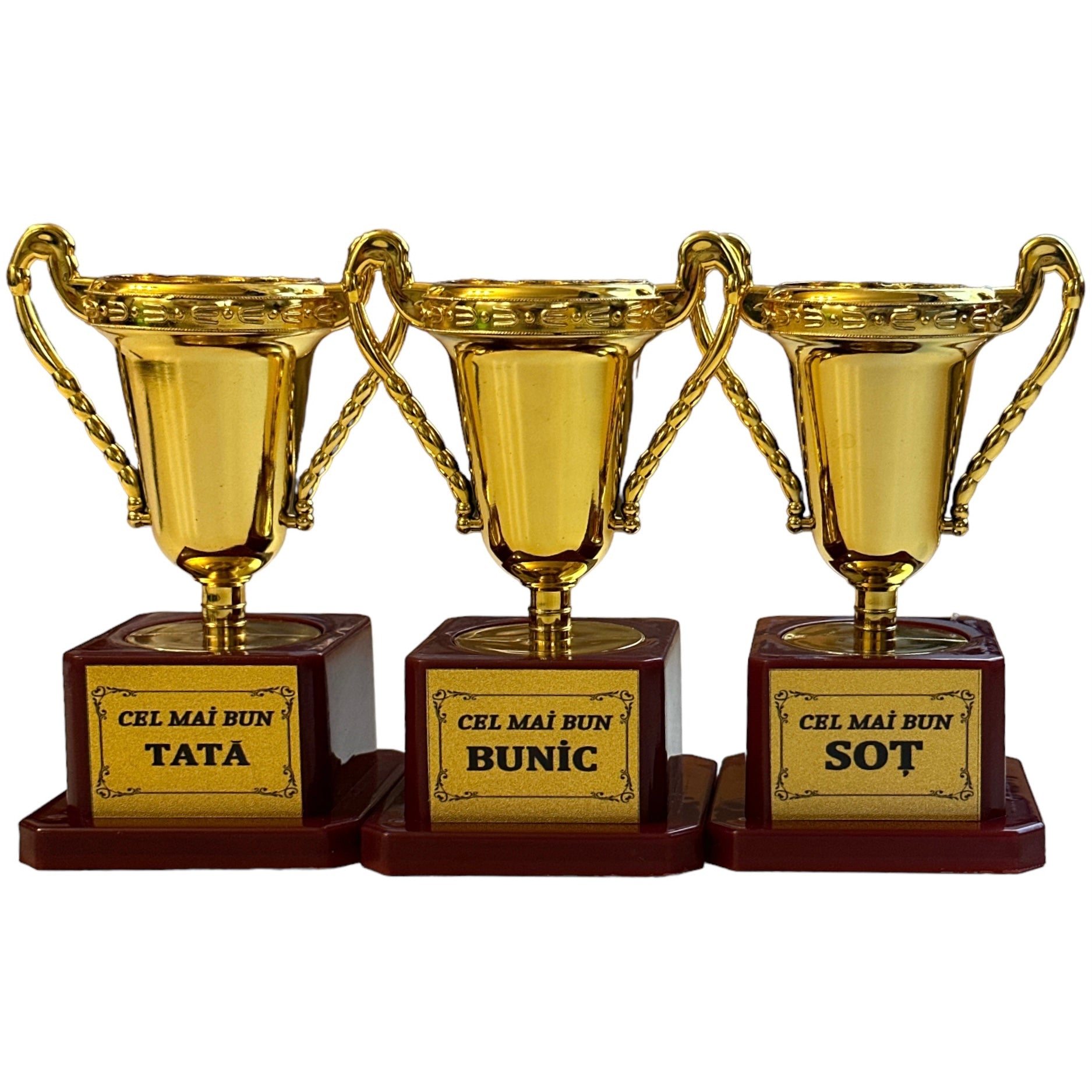 Cupa este fabricată din plastic și este personalizată cu mesajul “ Cel mai bun…..”.