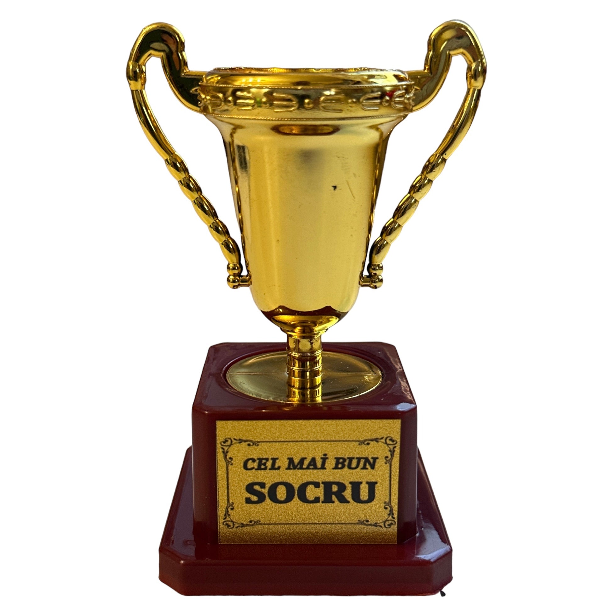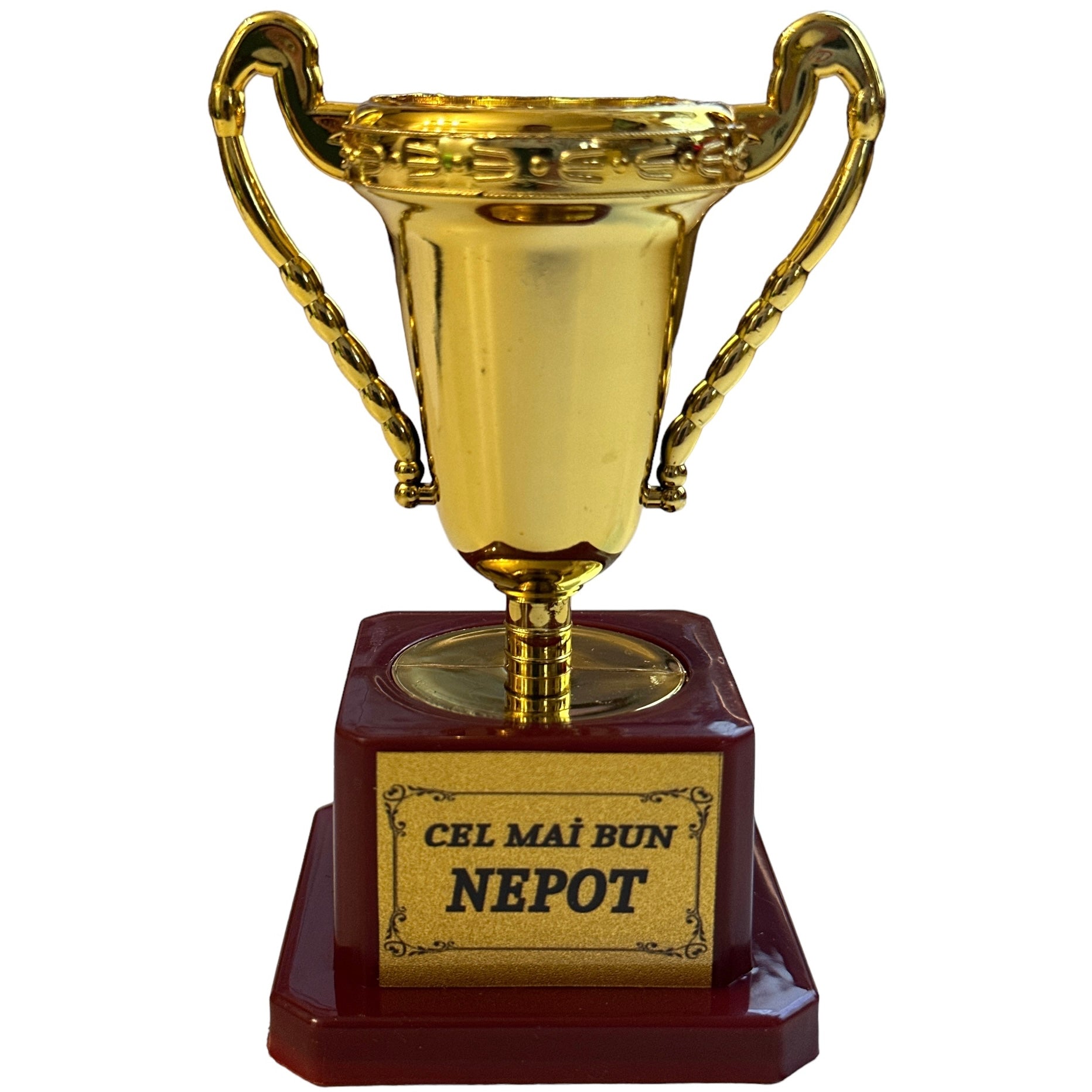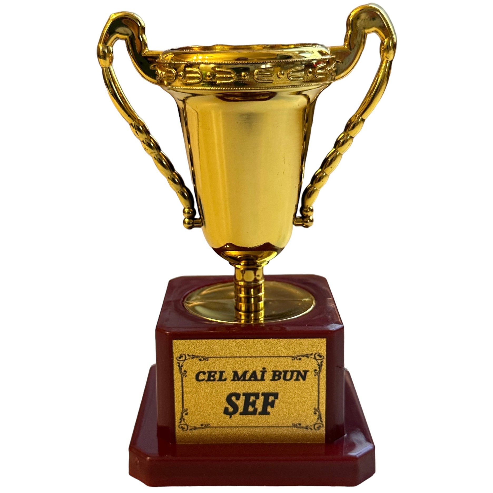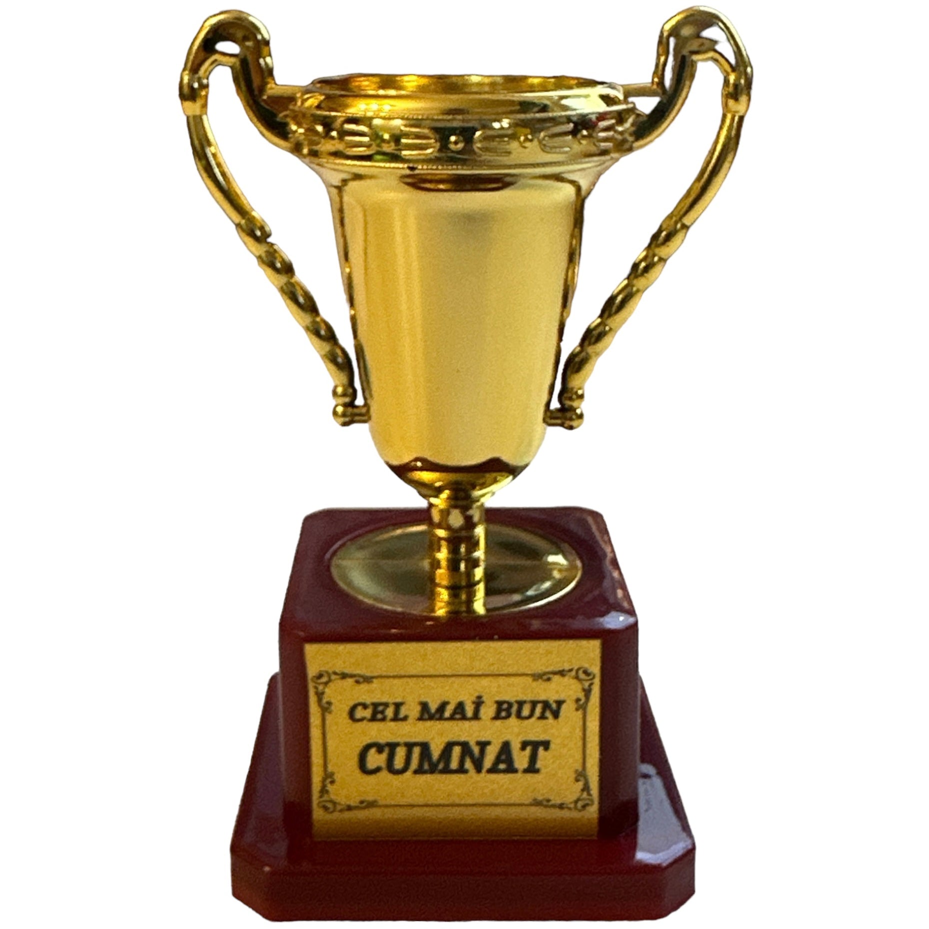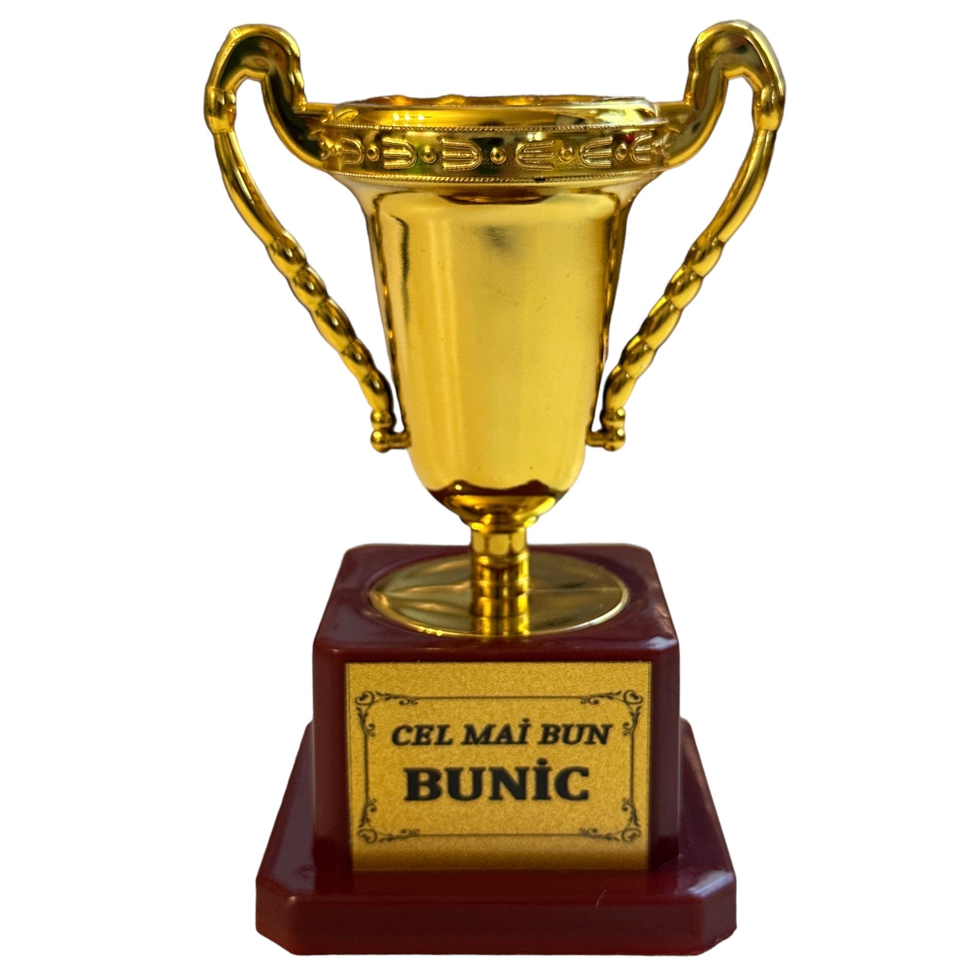 Cupa este fabricată din plastic și este personalizată cu mesajul “ Cel mai bun…..”.