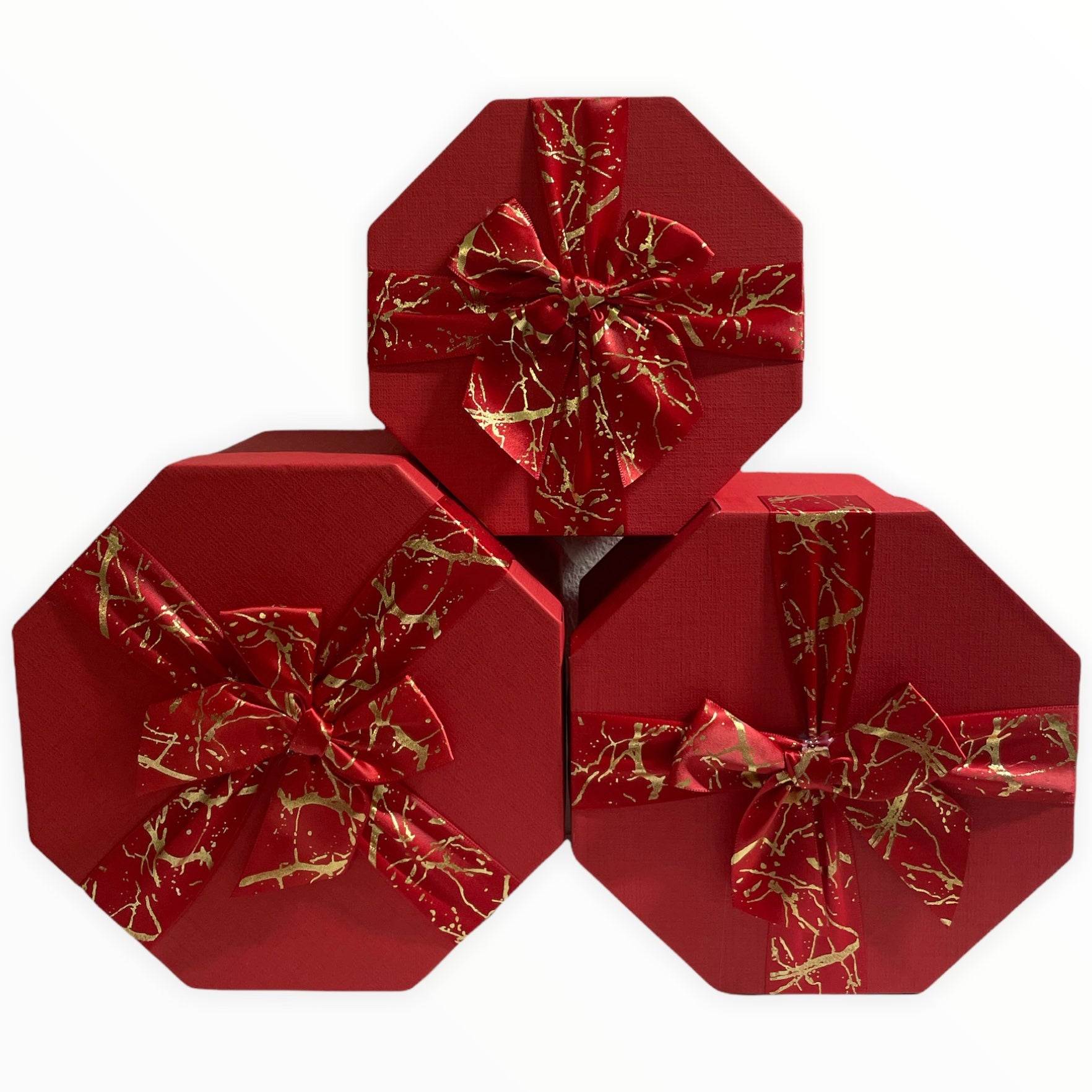 Setul contine 3 cutii din carton in forma de Octogon , ideale pentru aranjamente florale . Cutiile mai pot fi folosite si pentru decoratiuni, cadouri si depozitarea unor bijuterii.