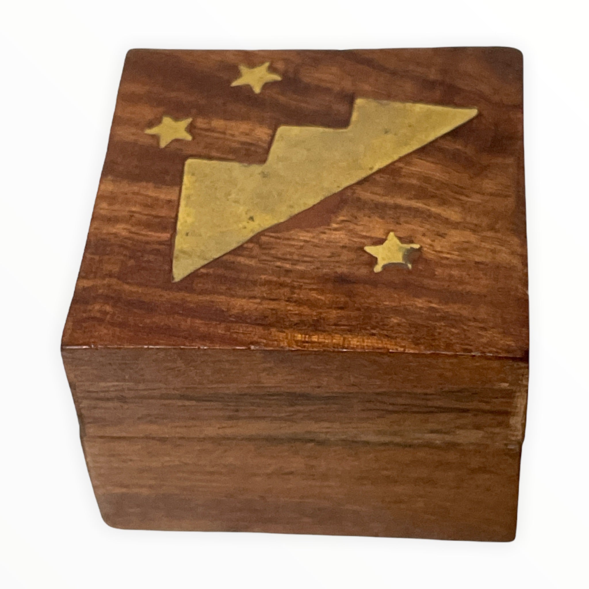 Aceasta cutie din lemn cu entarsii de alama va aduce o nota mereu la moda si un plus de farmec zonei in care este asezata, dar este si un cadou potrivit pentru orice ocazie.