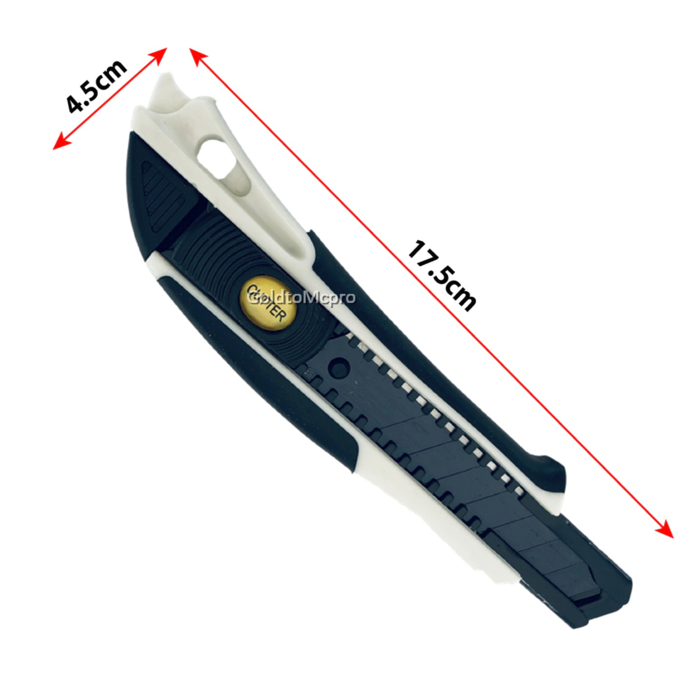 Cu un design robust și o lamă retractabilă, acest cutter este alegerea ideală pentru proiectele tale de bricolaj, tăierea ambalajelor sau alte sarcini care necesită precizie.