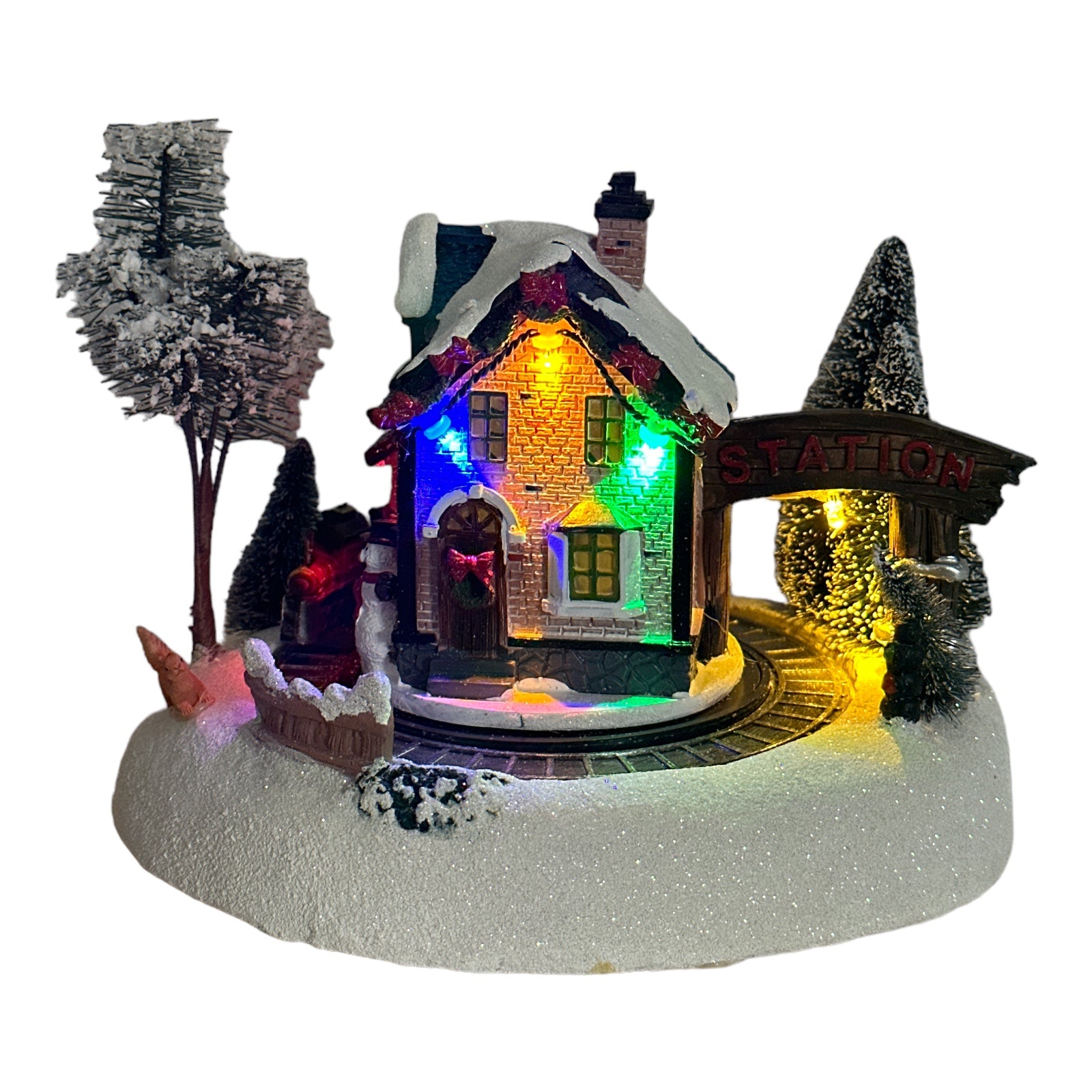 Figurina este realizată din polirășină vopsită și poate prezenta mici imperfecțiuni de turnare sau culoare și funcționează cu 3 baterii AAA care nu sunt incluse.