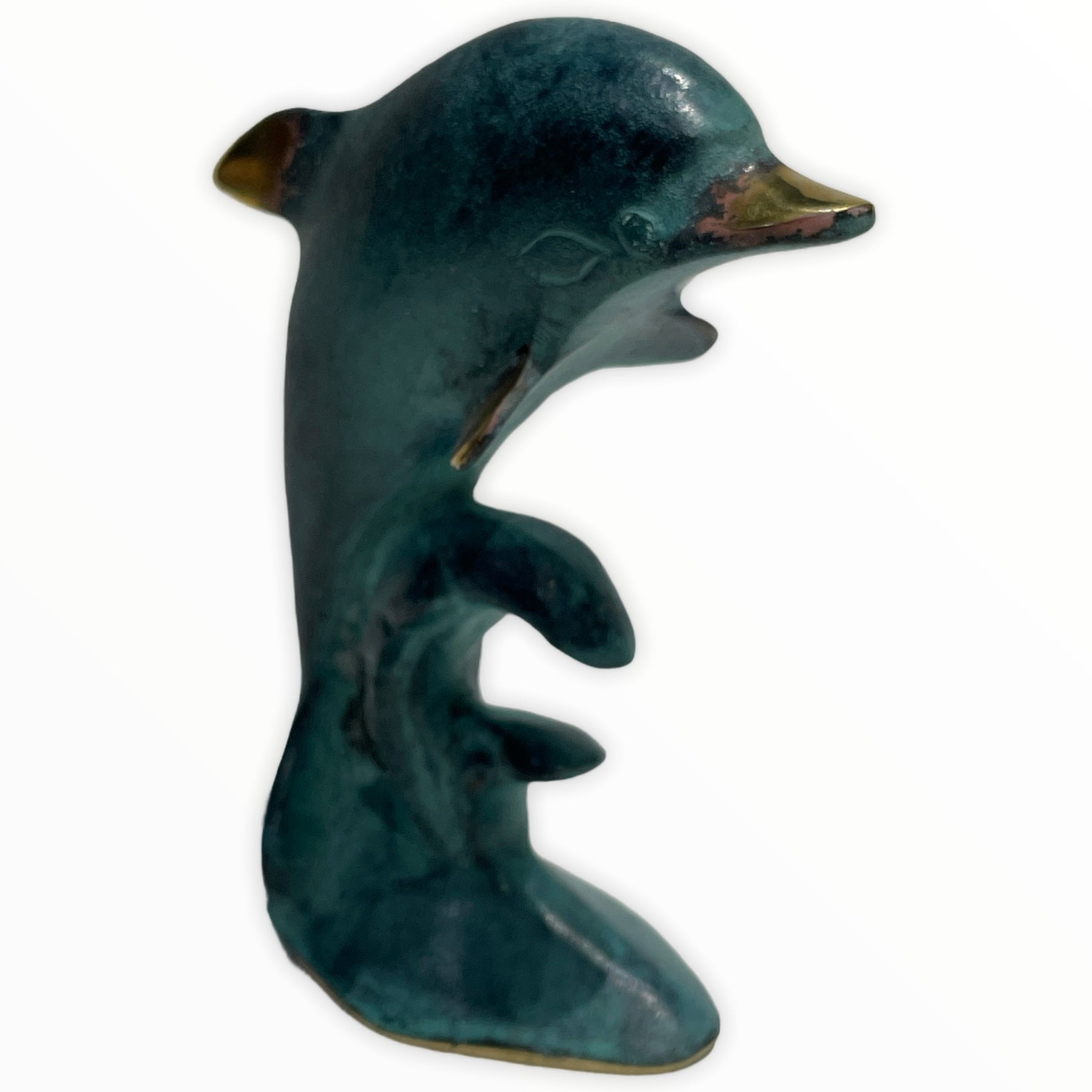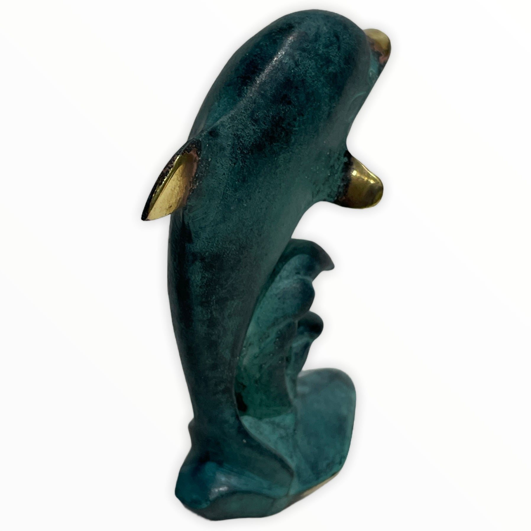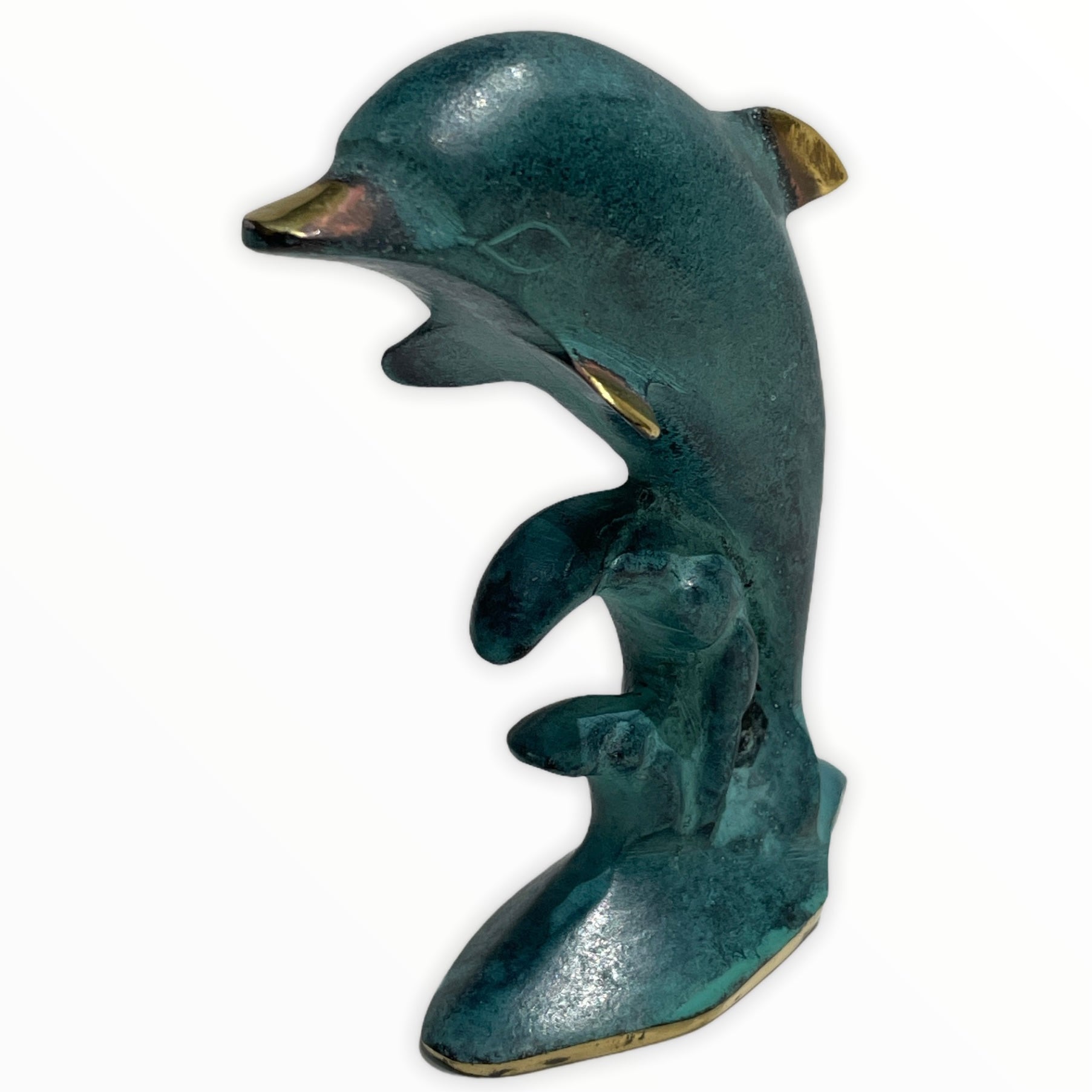 Statuia delfin este potrivită in orice casă .Confecționată din alamă , are un design rafinat datorită culorii antichizate. Este o piesă elegantă , care te va ajuta să creezi un decor Vintage aducând un strop de mare.