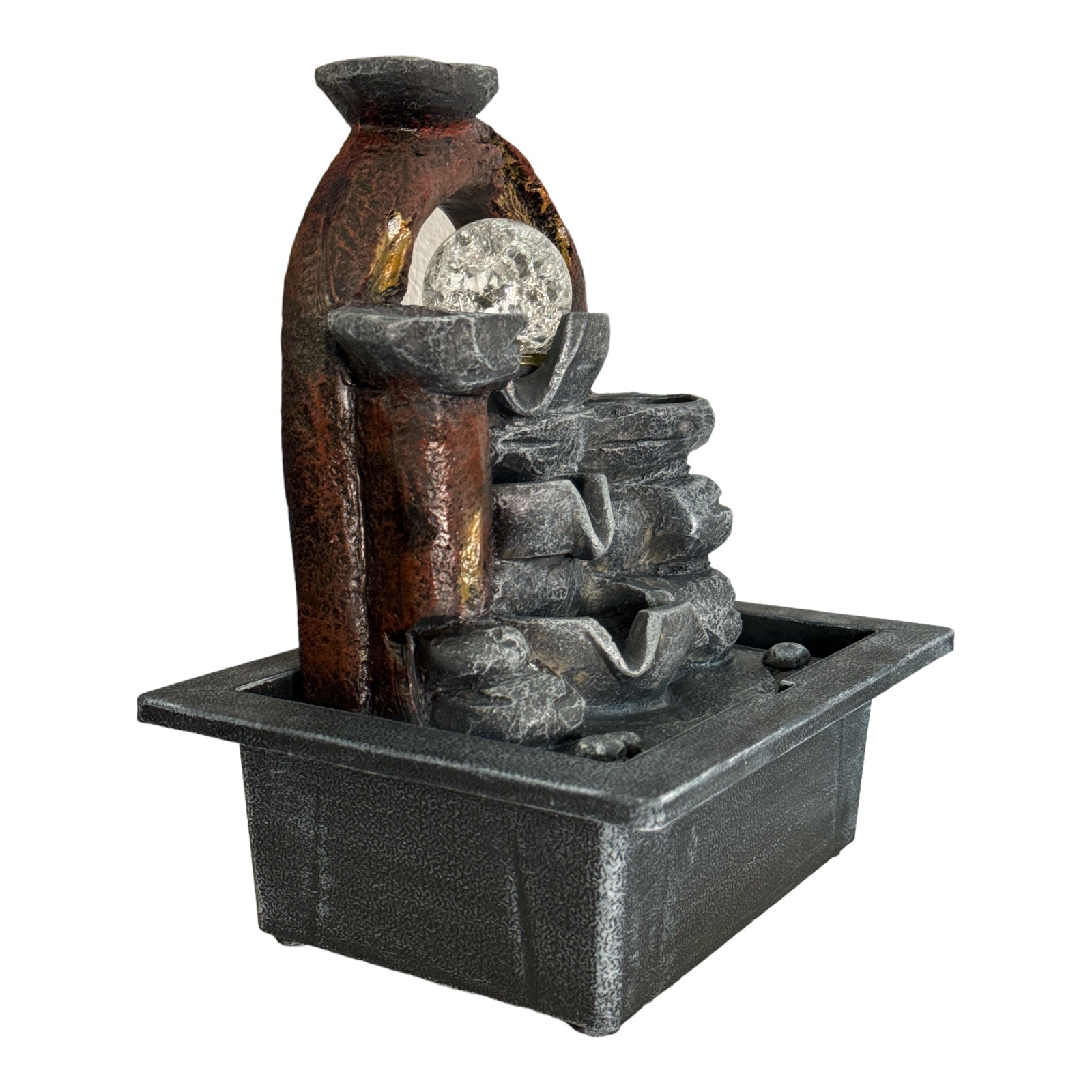 Fântâna decorativă cu apă curgătoare este perfectă pentru a aduce armonie și liniște în orice zonă a casei sau biroului tău. Apa curgătoare elimină energiile negative, ne readuce succesul în diverse domenii și nu în ultimul rând, este sursa perfectă de umiditate necesară oricărei camere.