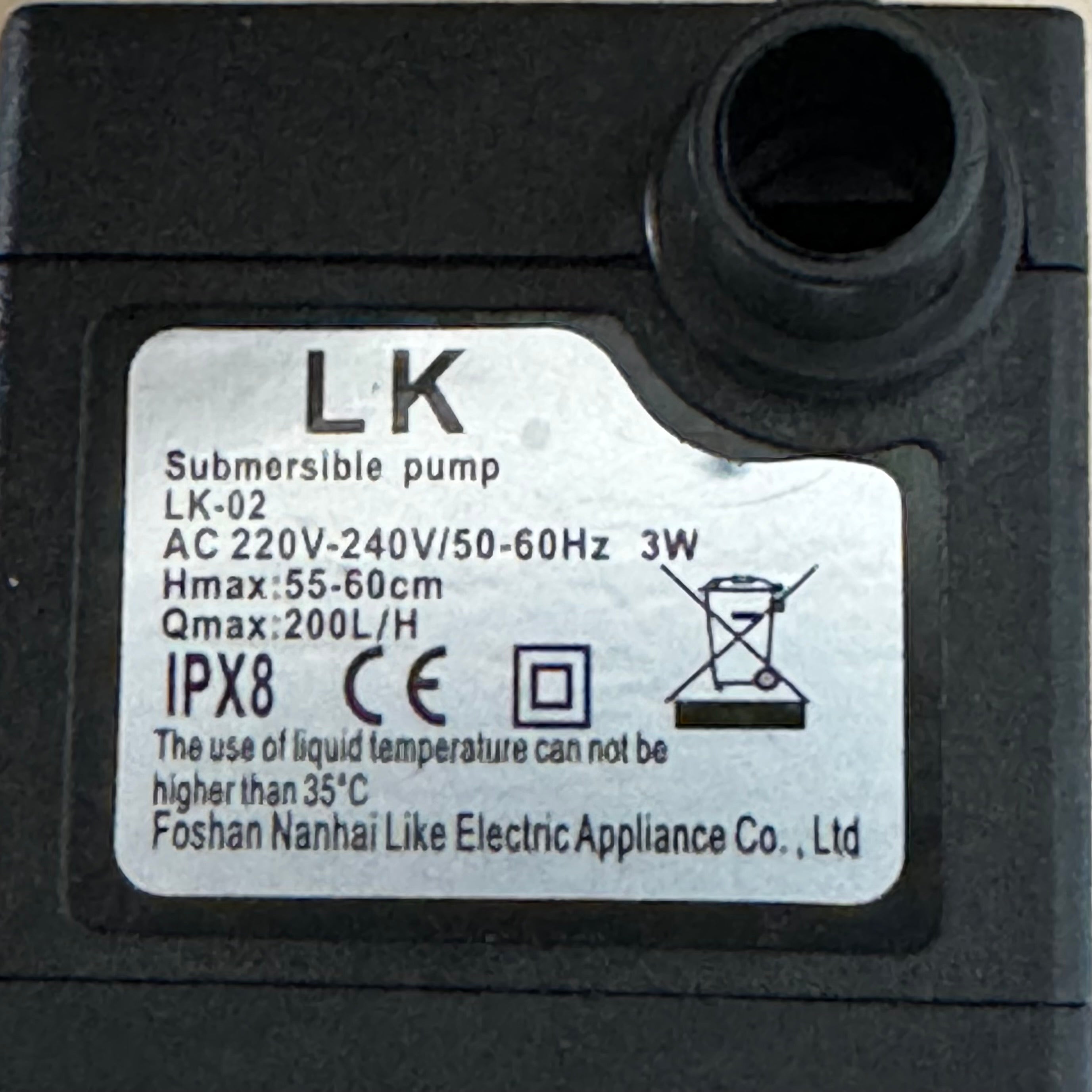 Împreună cu fântâna se livrează și pompa de recirculare a apei care este prevăzută cu un spot luminos și bila din sticlă.