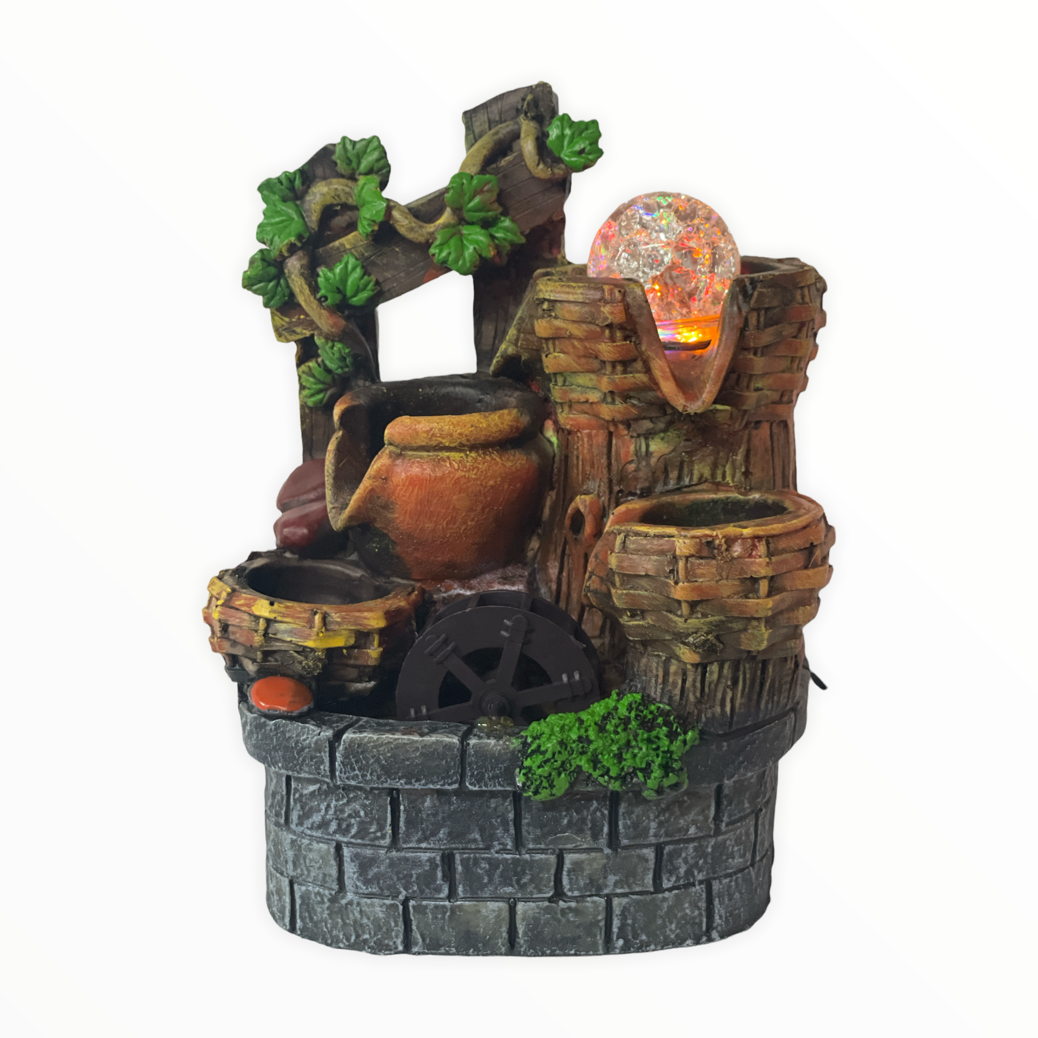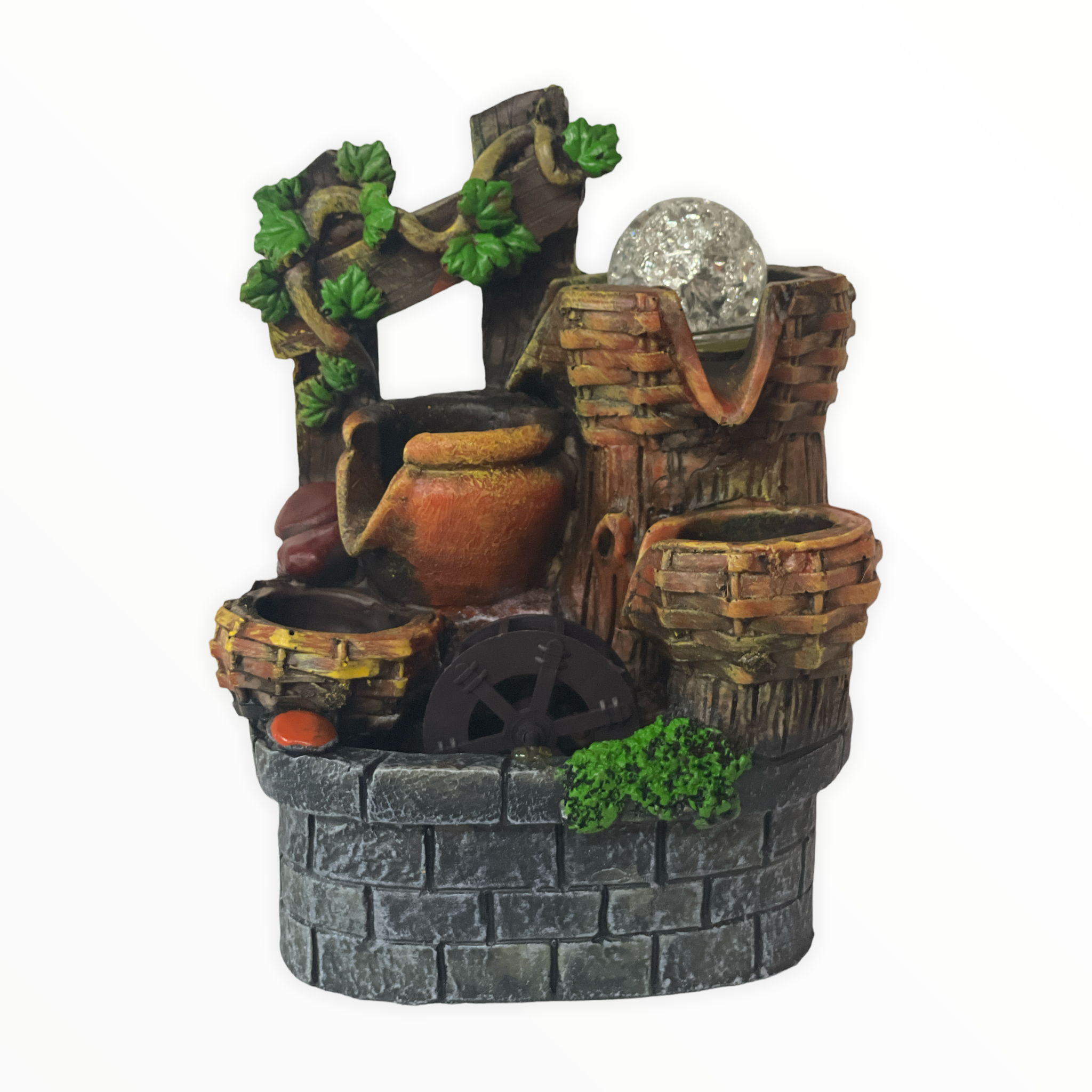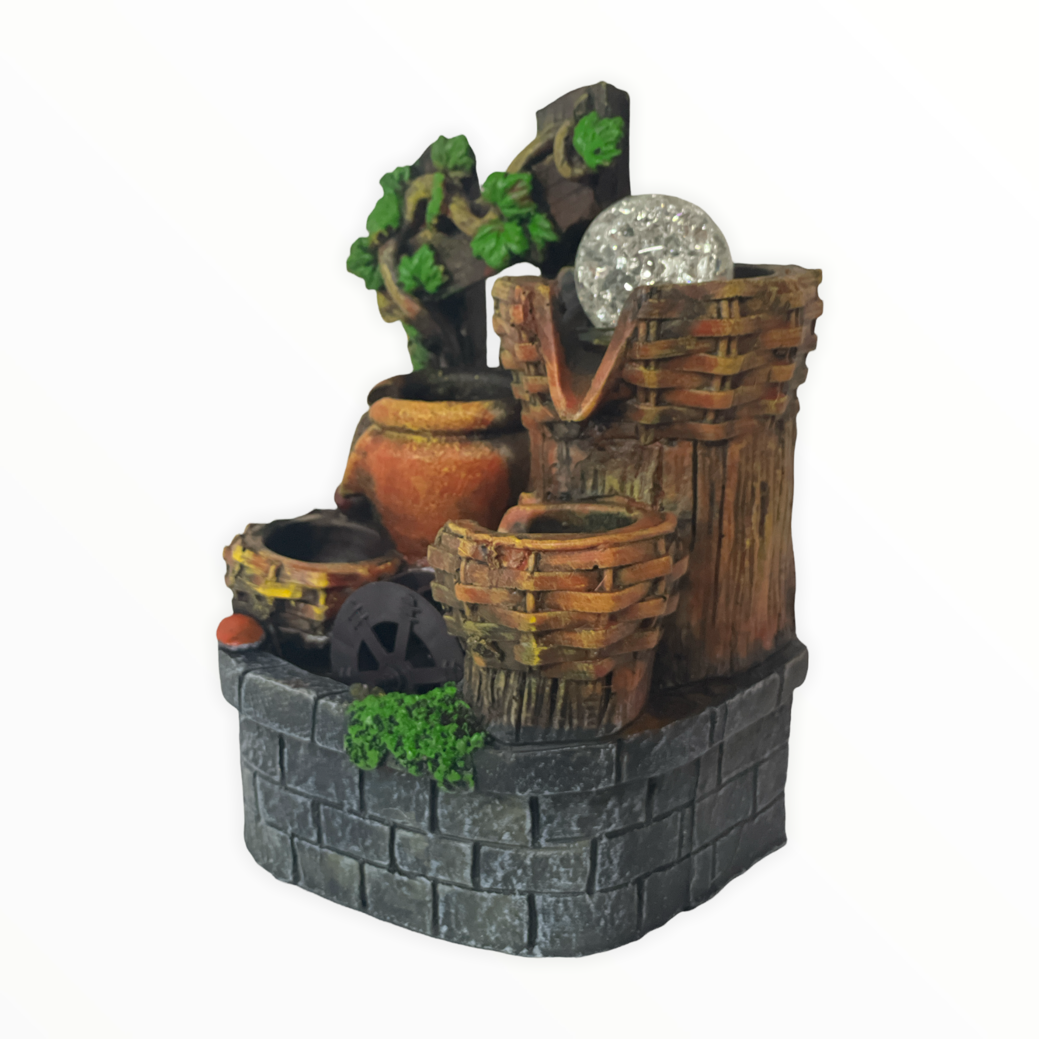 Fântâna decorativă cu apă curgătoare este perfectă pentru a aduce armonie și liniște în orice zonă a casei sau biroului tău. Apa curgătoare elimină energiile negative, ne readuce succesul în diverse domenii și nu în ultimul rând, este sursa perfectă de umiditate necesară oricărei camere.