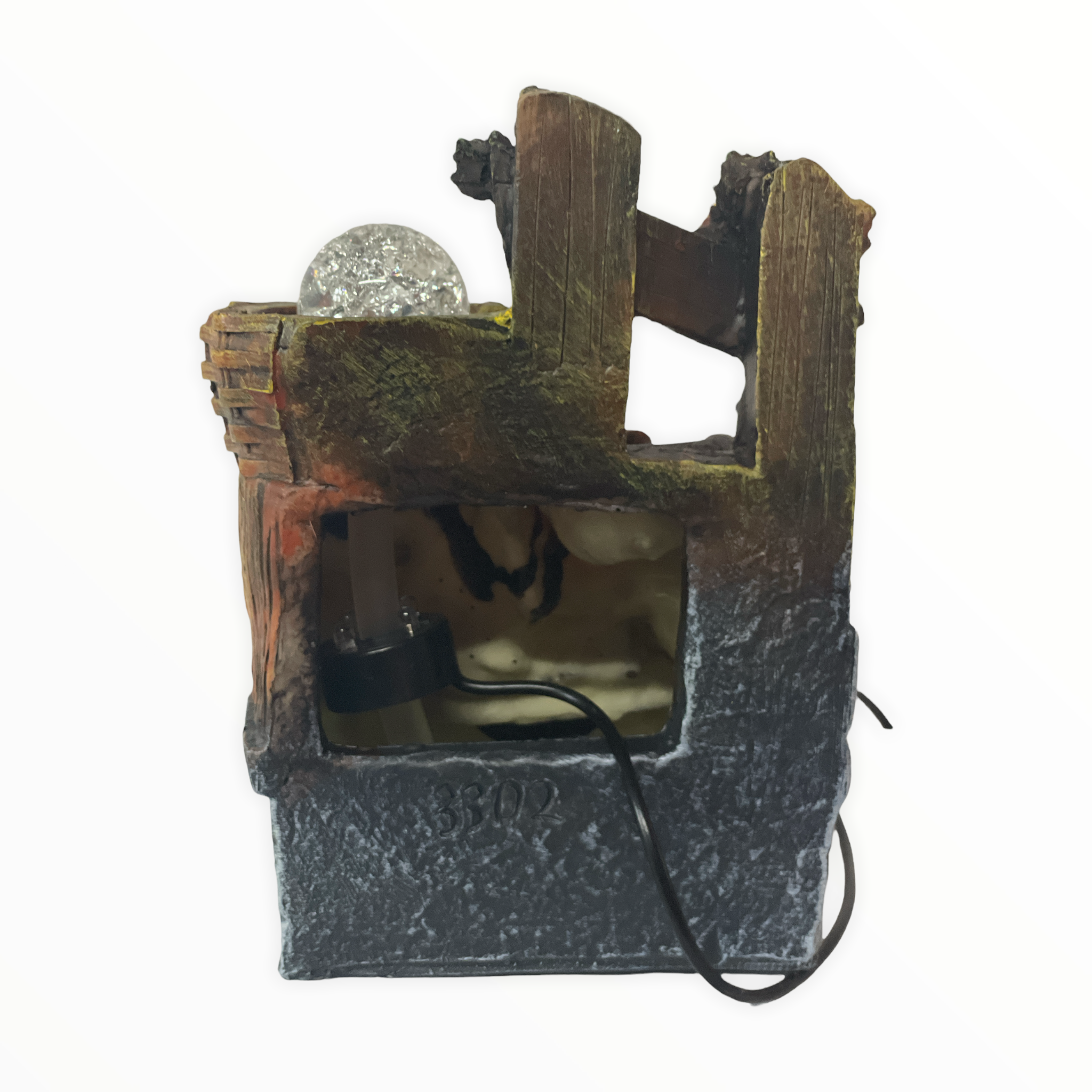Fântâna este fabricată din polirășină vopsită multicolor și poate prezenta mici imperfecțiuni de turnare.